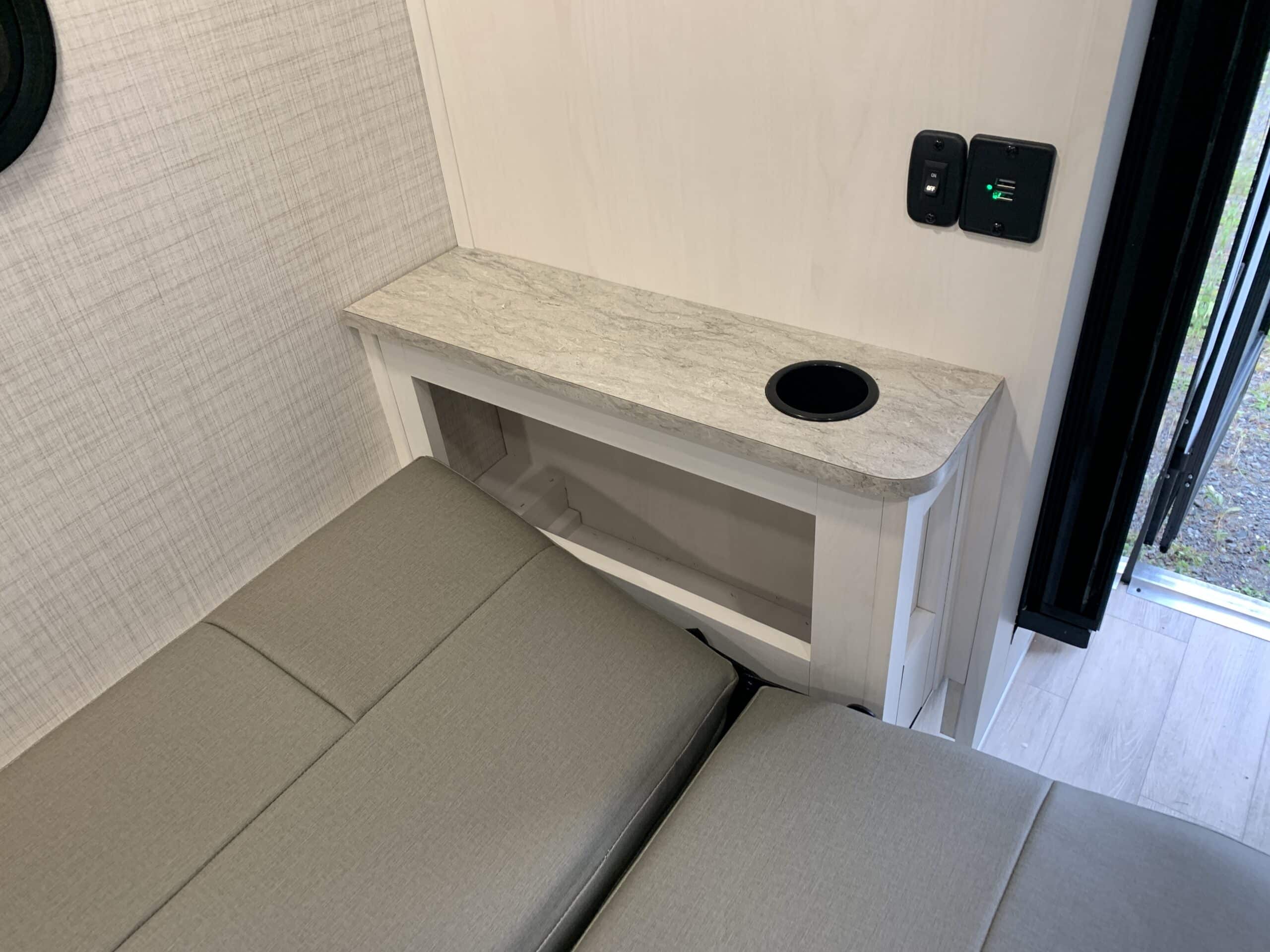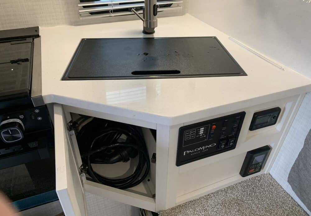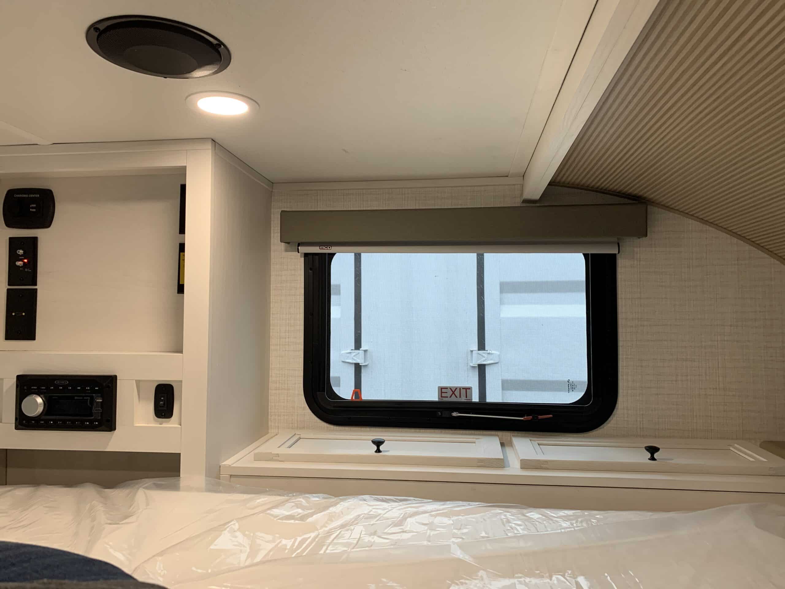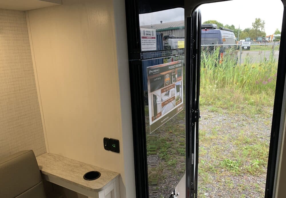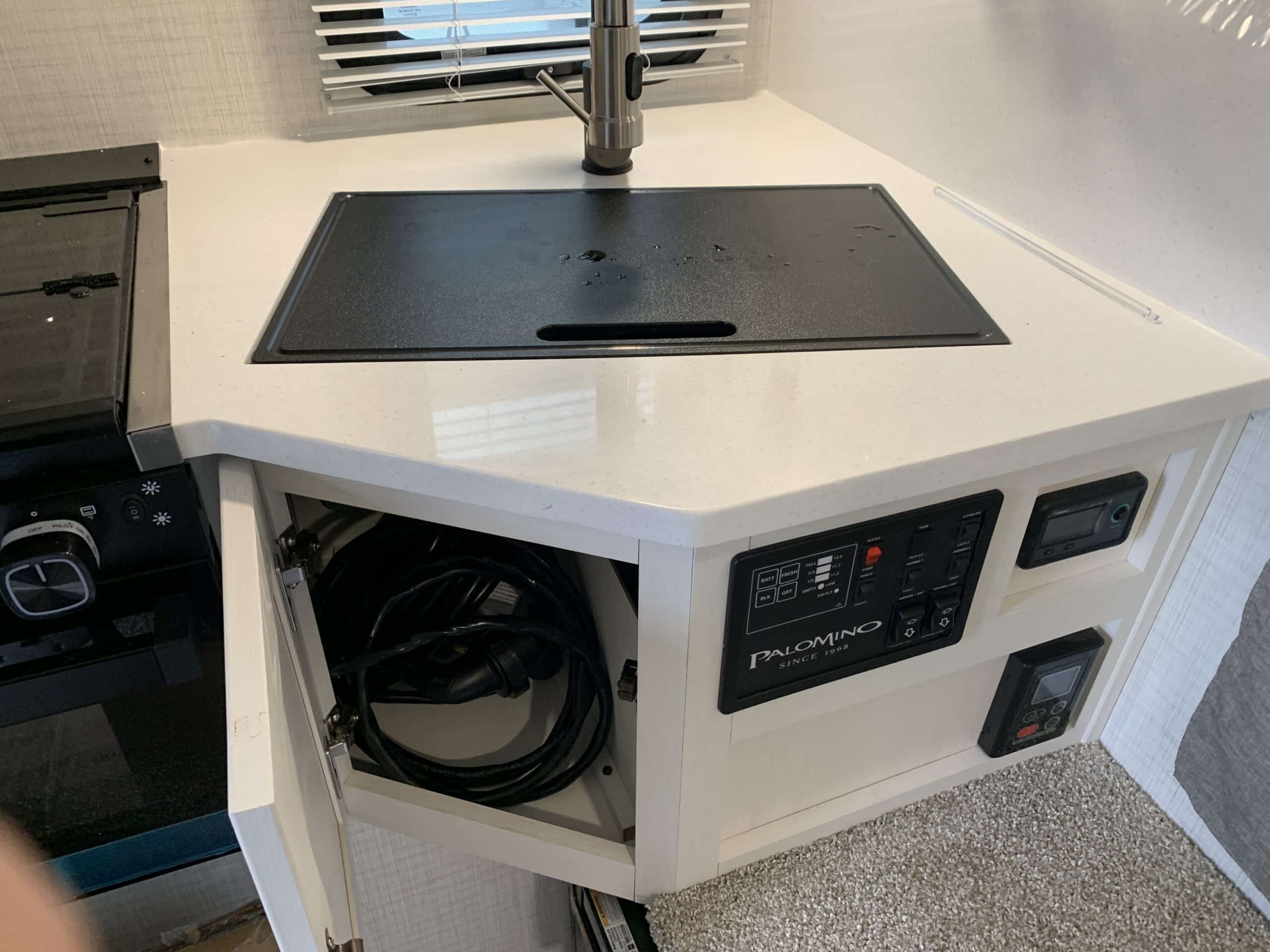 De plus la Palomino HTHS -8801 a un air climatisé de 11000 btu, une cuisinière a 2 brûleurs, un réfrigérateur 12 volts et un micro-ondes. Elle est muni d’une armoire pour le rangement. De plus, un sofa se transforme en lit. Enfin, le système audio vous permettra d’écouter votre musique préférée.