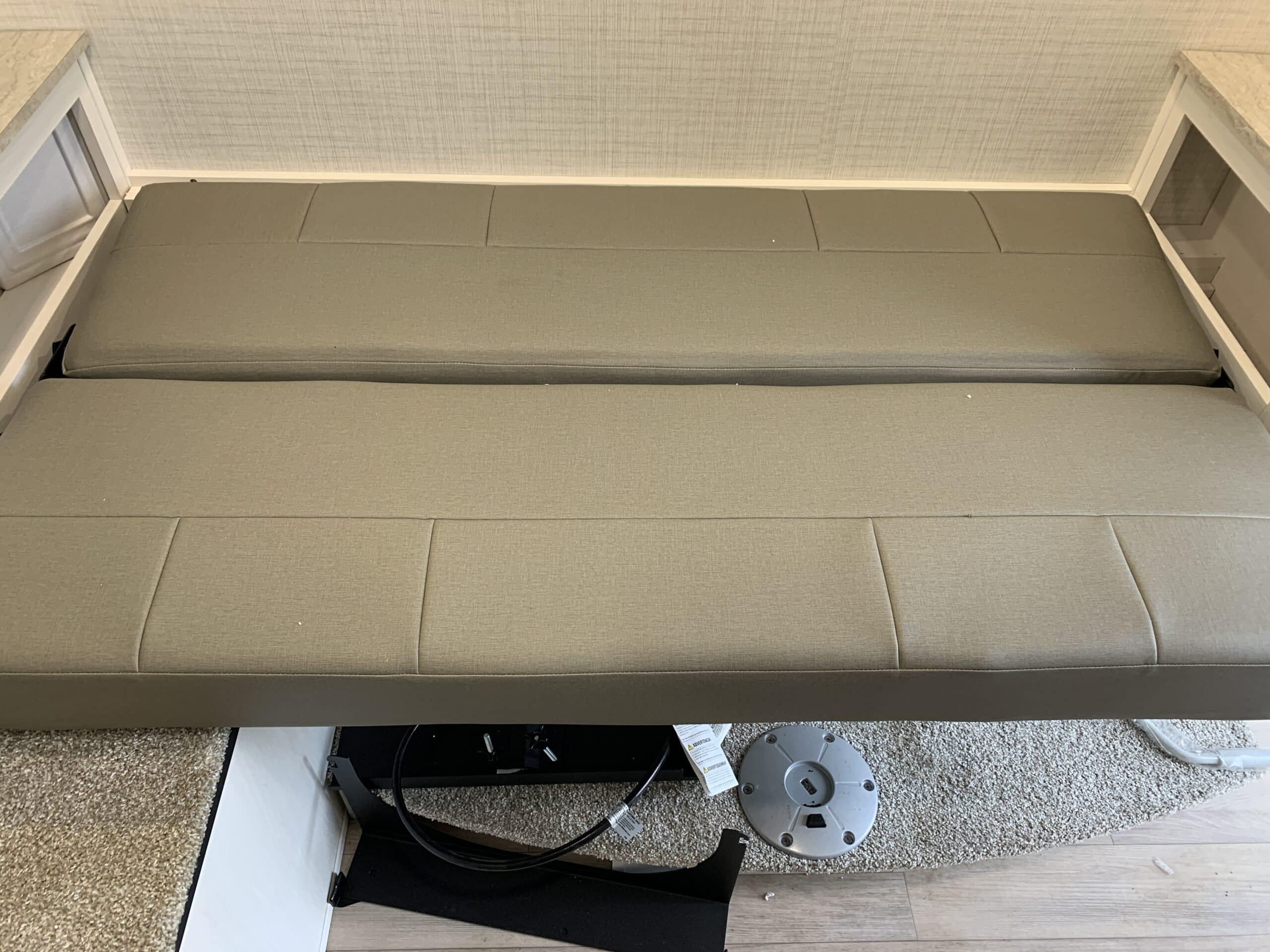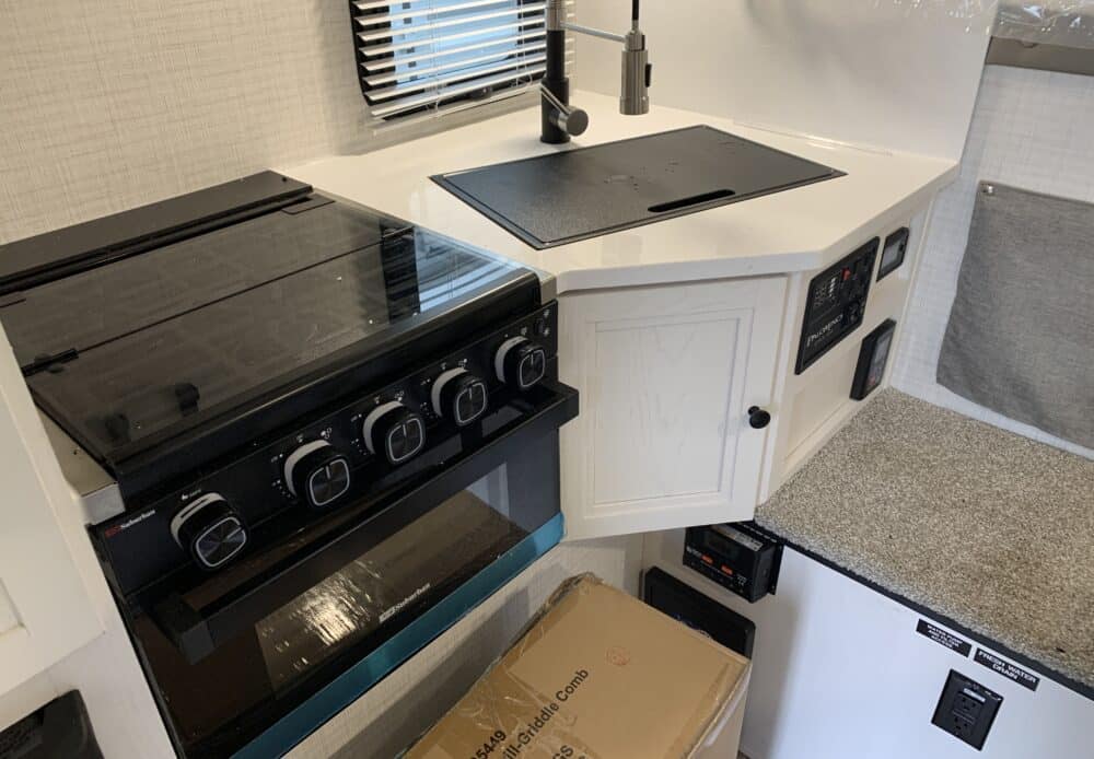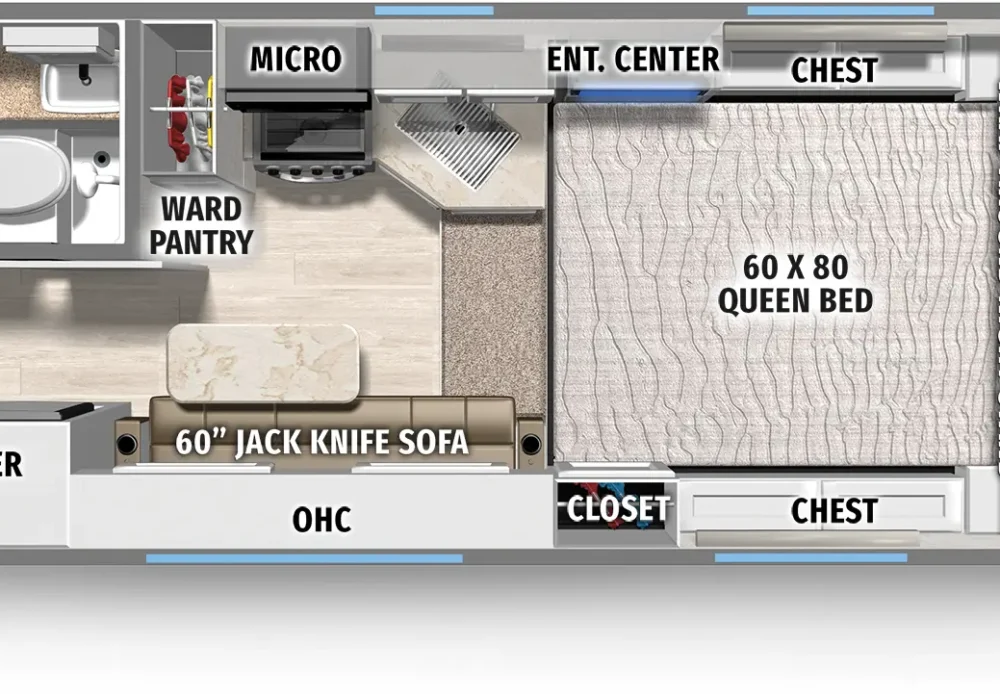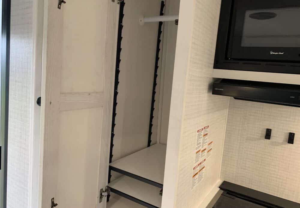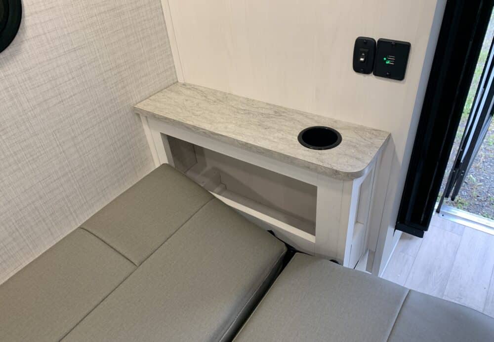 De plus la Palomino HTHS -8801 a un air climatisé de 11000 btu, une cuisinière a 2 brûleurs, un réfrigérateur 12 volts et un micro-ondes. Elle est muni d’une armoire pour le rangement. De plus, un sofa se transforme en lit. Enfin, le système audio vous permettra d’écouter votre musique préférée.
