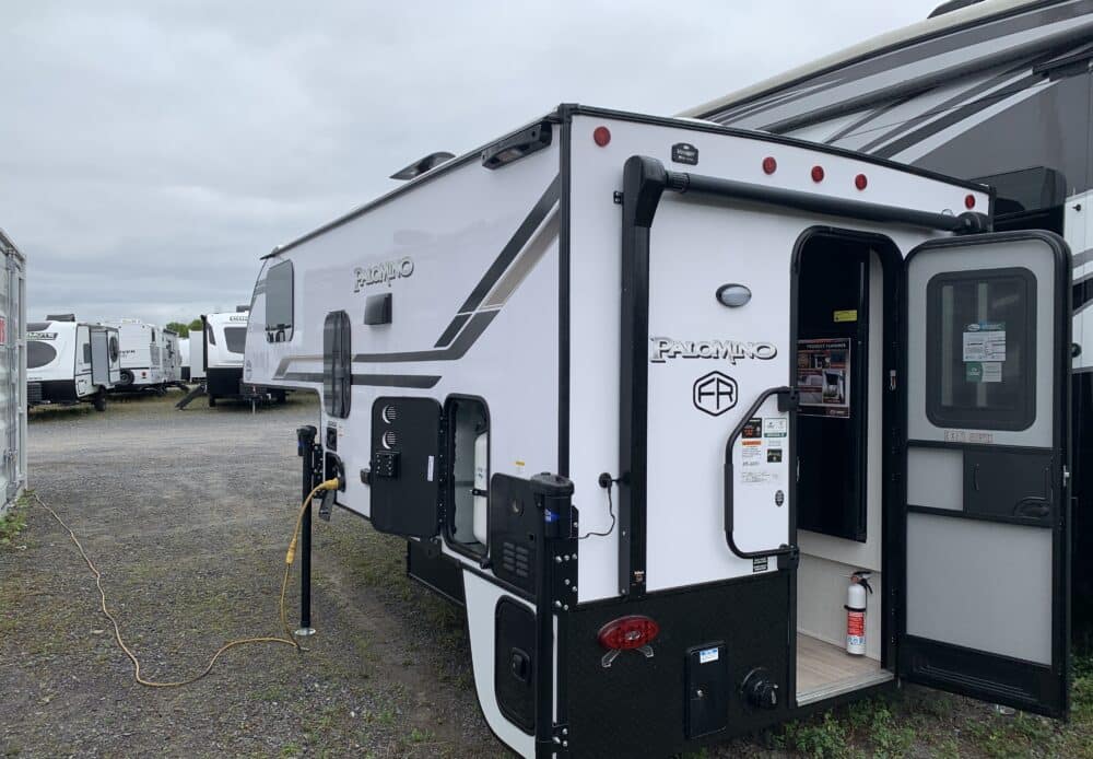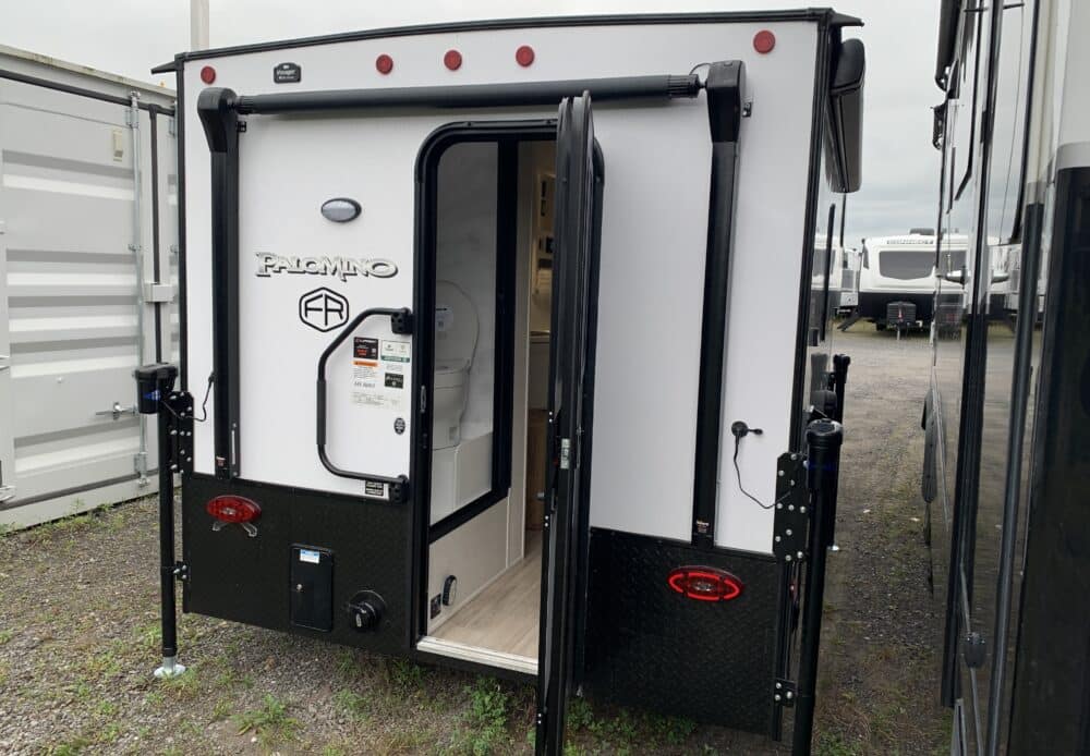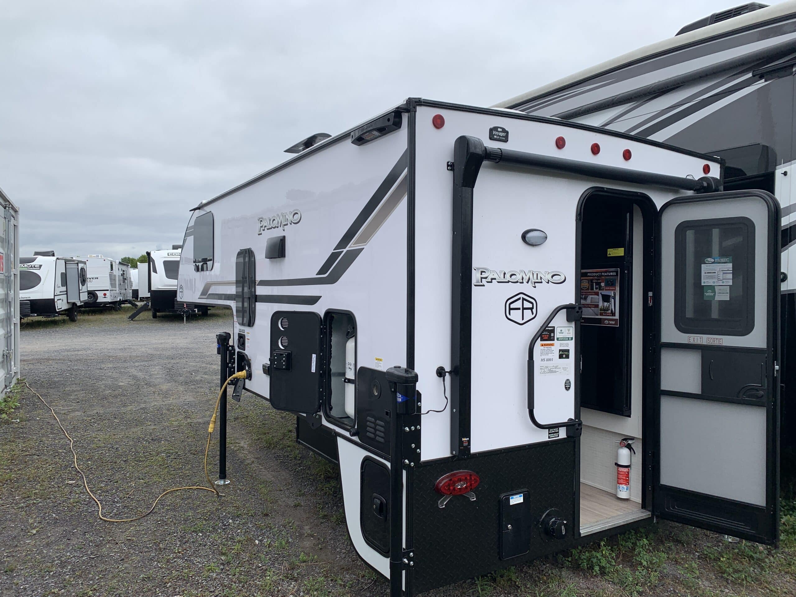 2026 Palomino HTHS -8801 boite campeur pour couple de 18 pieds à 2489 lbs, extérieur en fibre. Elle est muni de 2 panneaux solaires.
