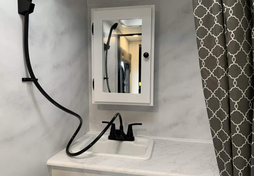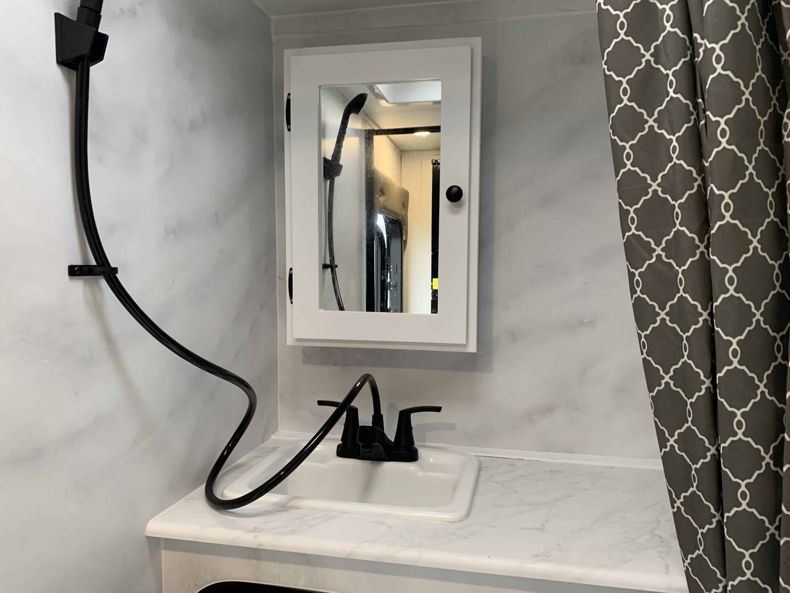 D’abord, cette boite campeur a 2 auvents et une douche pour profiter de l’extérieur sans soucis.