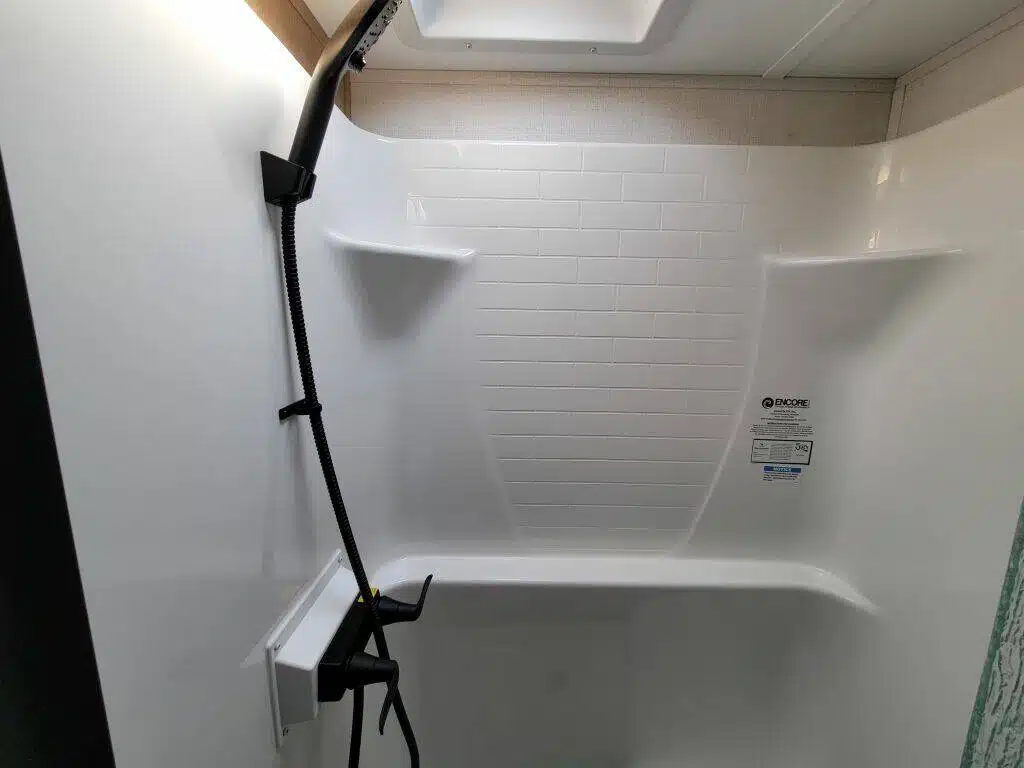 D’abord cette roulotte a un garage fermé de 13 pieds. Grâce à son auvent de 20 pieds et sa douche, vous profiterez de l’extérieur sans soucis. Ensuite, elle est muni d’une prise 50 ampères et d’une échelle pour le toit.