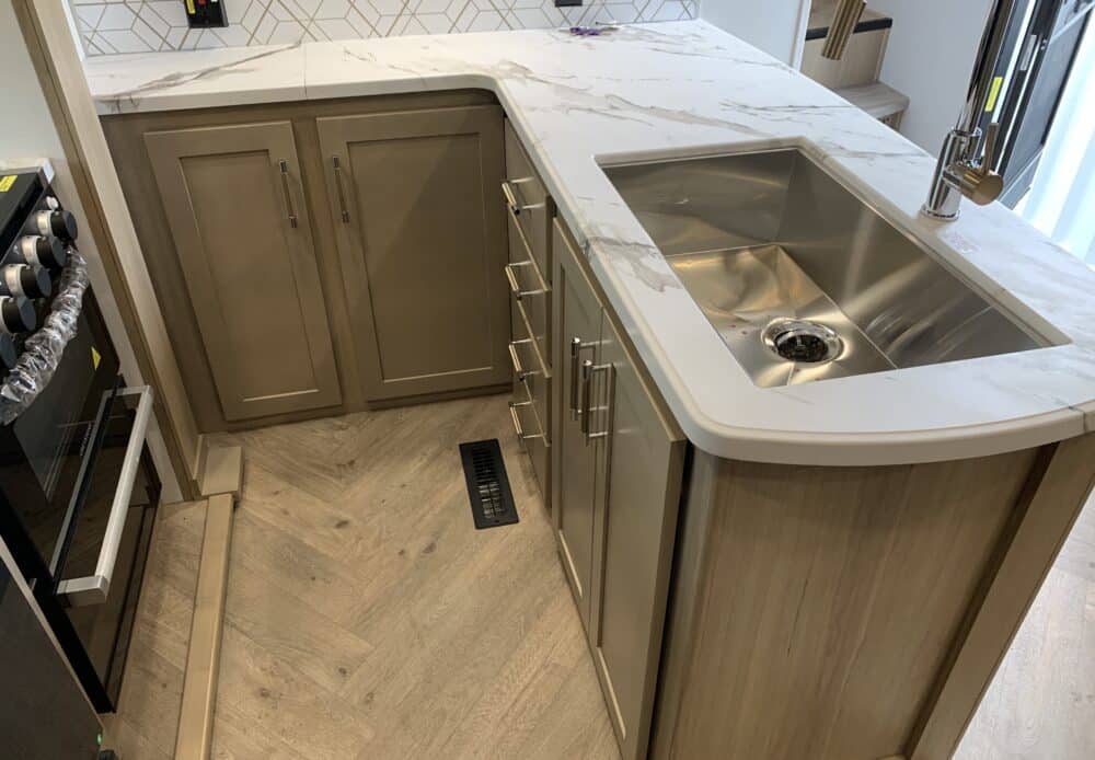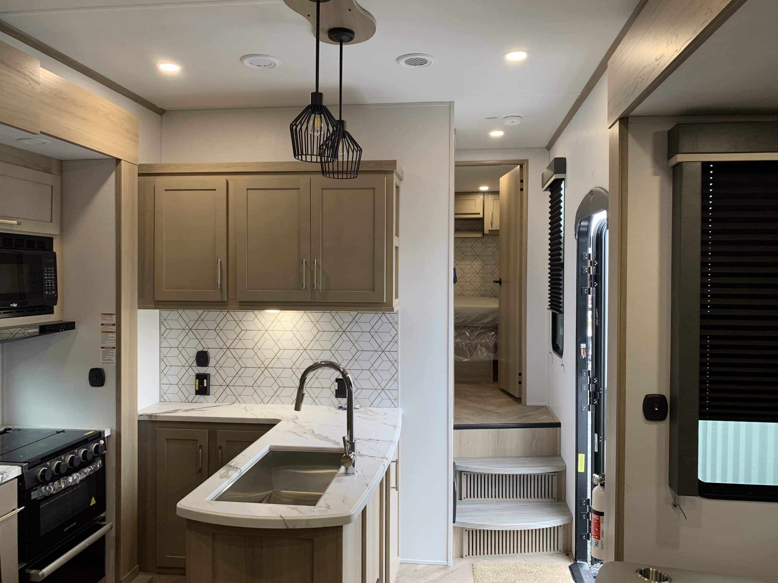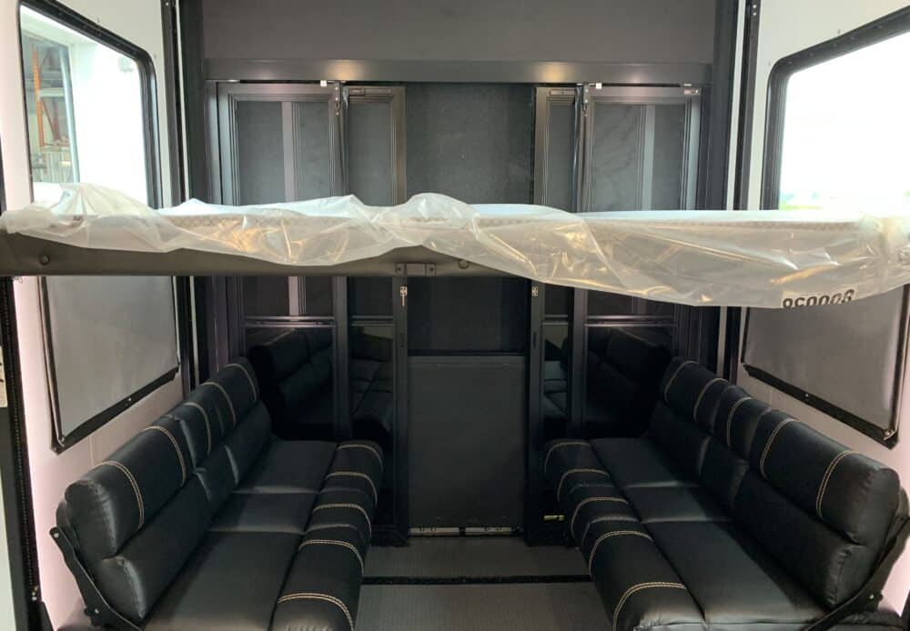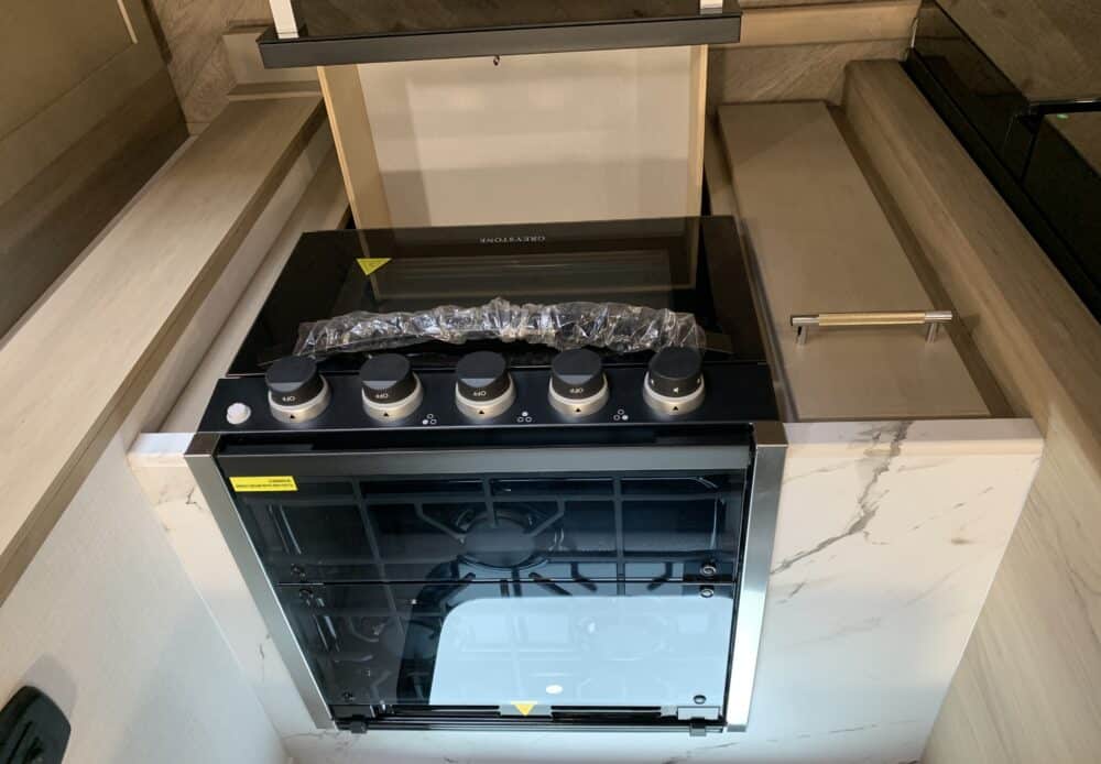De plus, la Carbon 358 a 2 airs climatisé qui tempéreront l’ambiance désirée. Par ailleurs, la cuisine a un poêle avec dessus en verre, un frigo 12 volts et un micro-ondes. Grâce à un sofa 3 places inclinables vous pourrez relaxer après une journée de plein-air. Enfin, son système audio vous permettra d’écouter votre musique préférée.