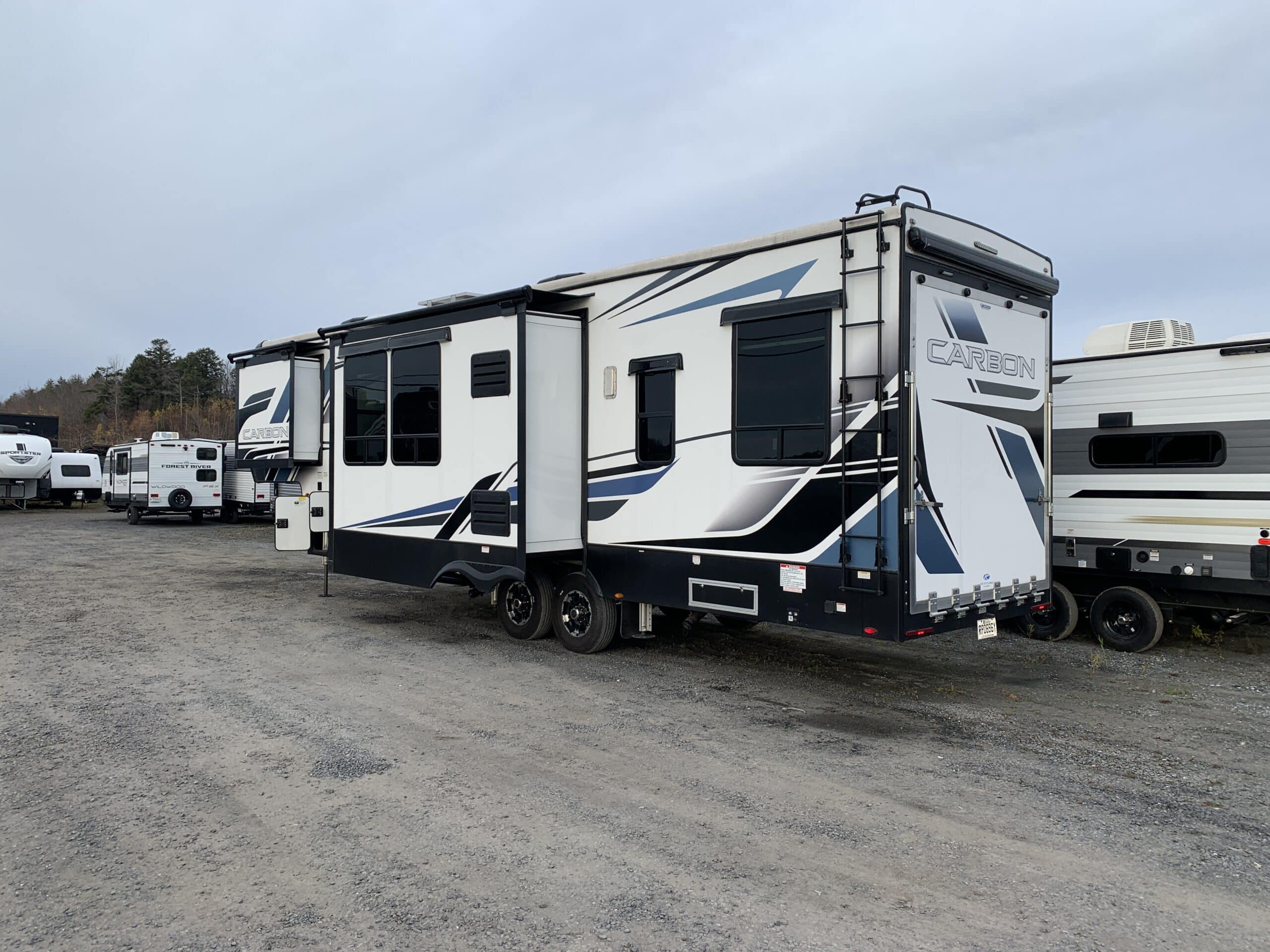 2023 Carbon 338, roulotte à sellette cargo de 35.11 pieds à 12160 lbs avec 2 essieux, extérieur en fibre et 2 extensions.