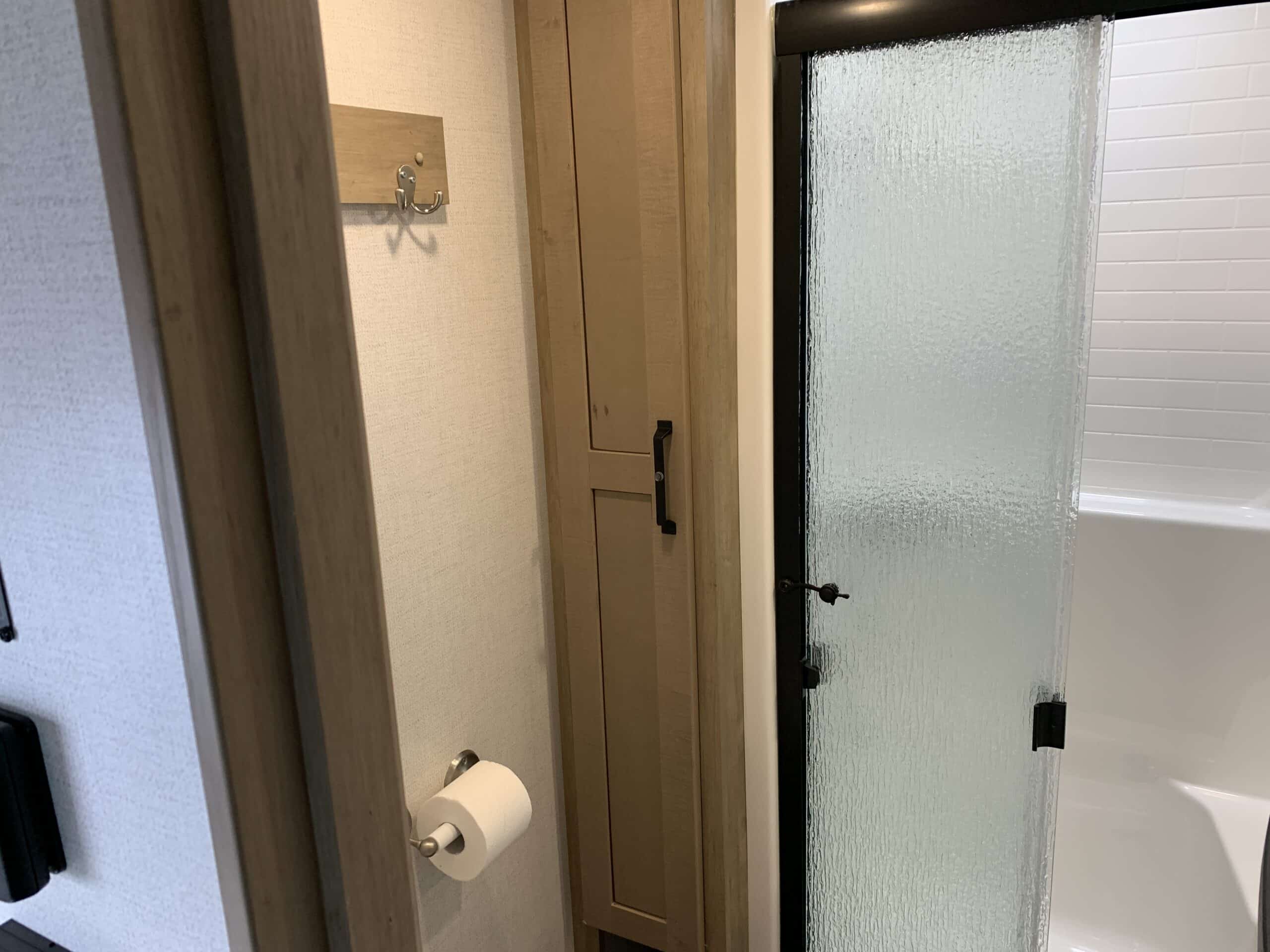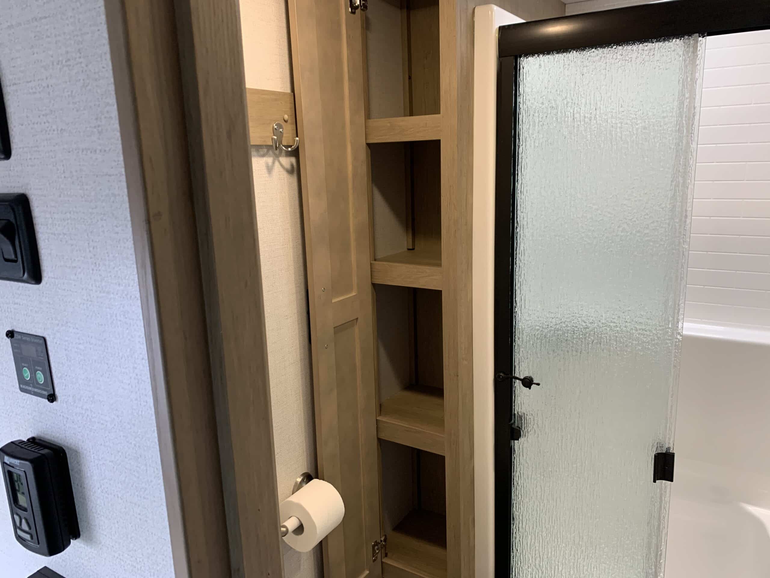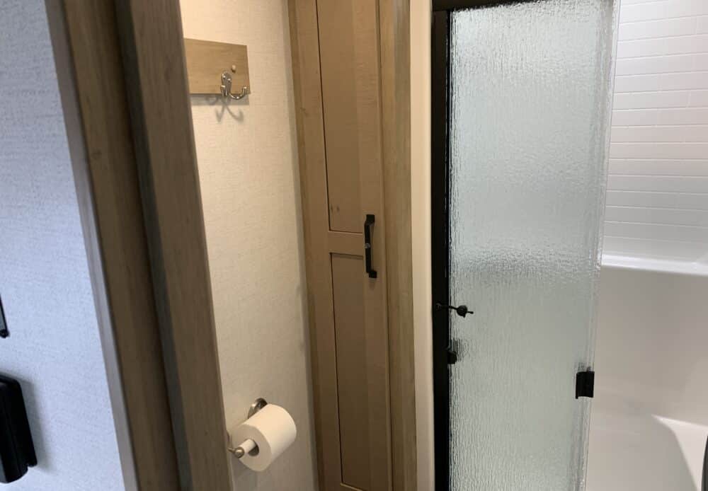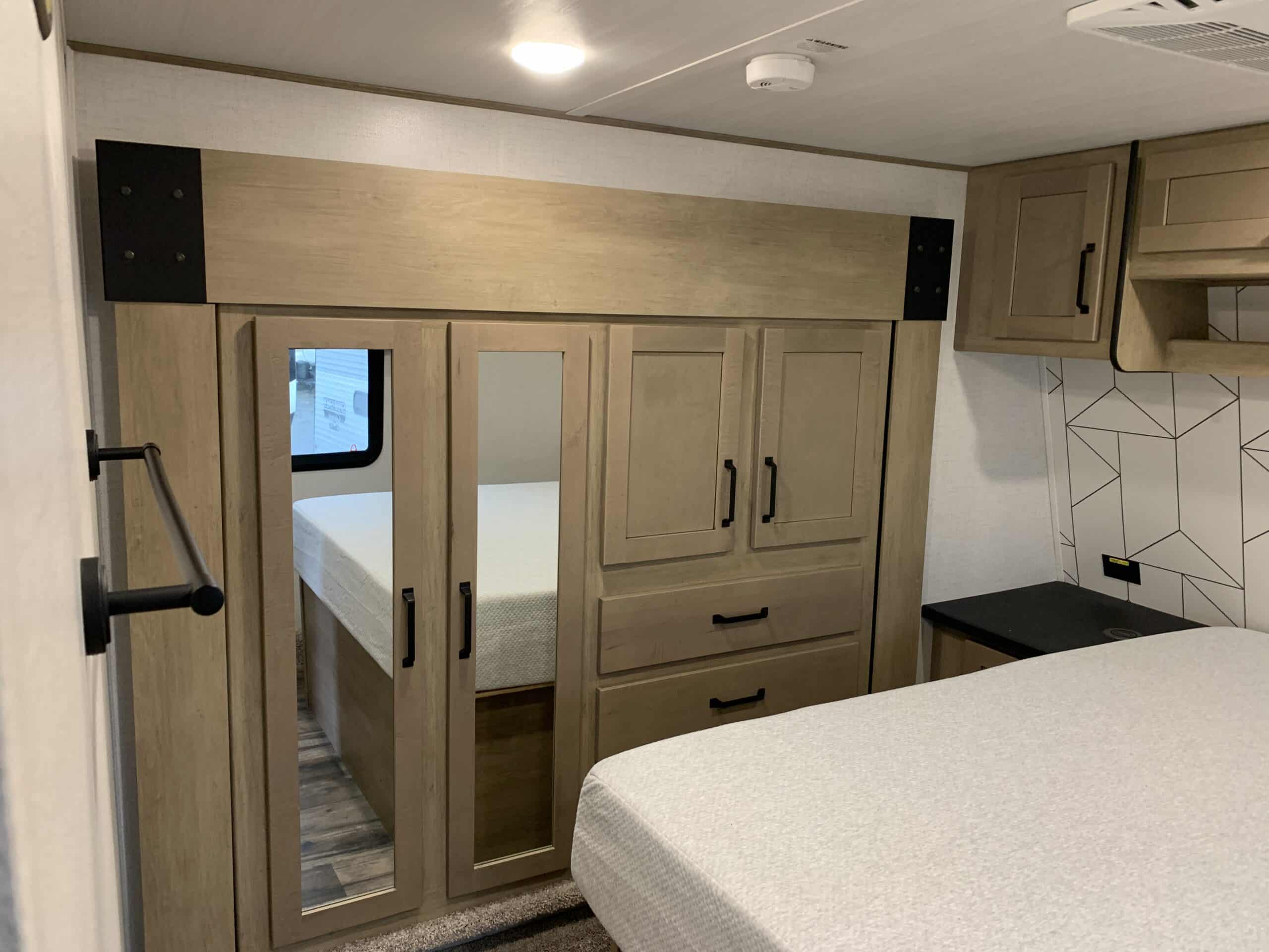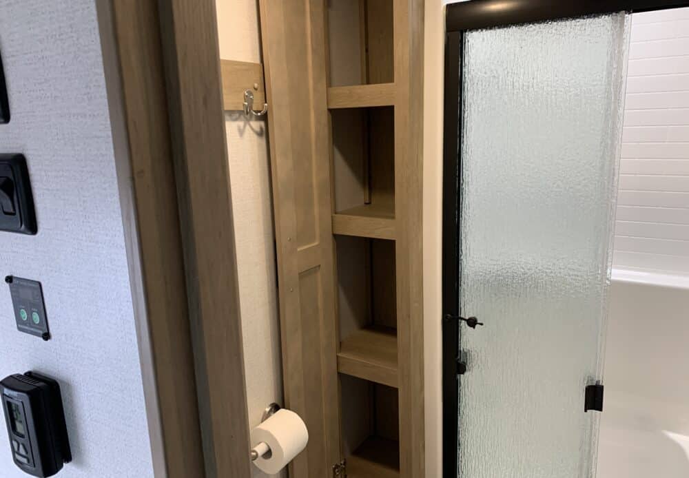 D’abord cette roulotte a un garage fermé de 10 pieds. Grâce à son auvent de 18 pieds, sa douche et son frigo vous profiterez de l’extérieur sans soucis. Elle est muni d’une prise 50 ampère, un panneau solaire et une génératrice Onan 5.5.