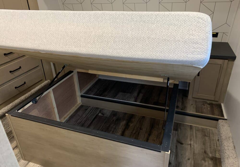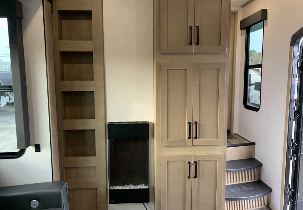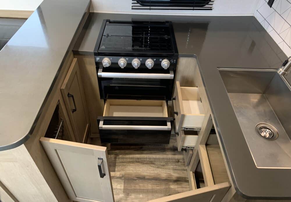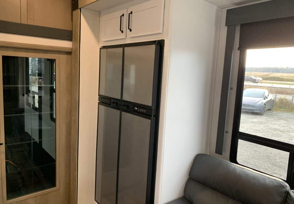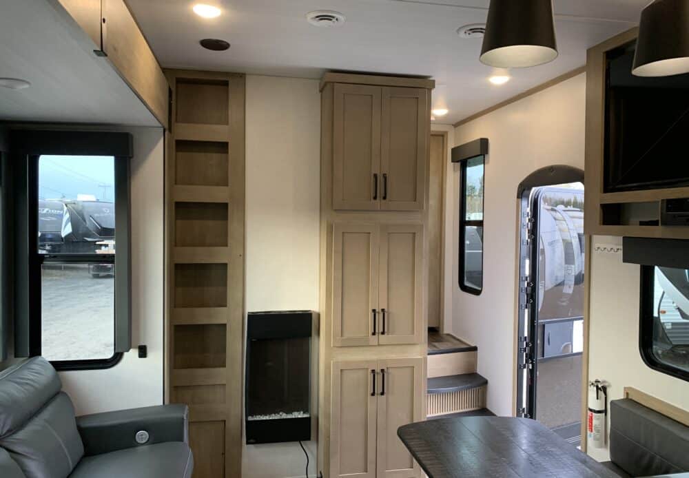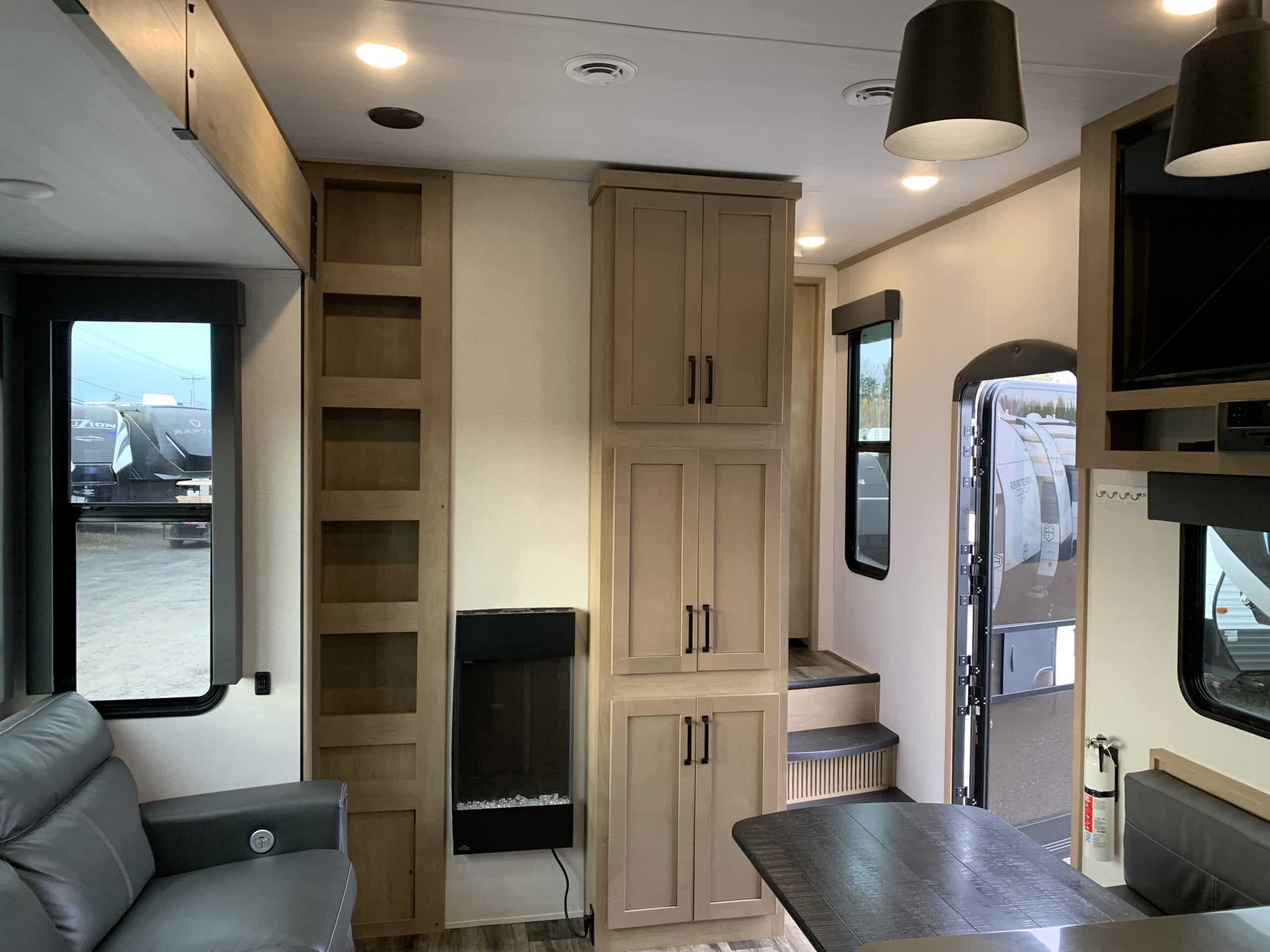 De plus, la Carbon 338 a 2 airs climatisés qui tempéreront l’ambiance désirée. Par ailleurs, la cuisine a un poêle avec dessus en verre, un frigo 12 volts et un micro-ondes. Grâce à un sofa 3 places inclinables vous pourrez relaxer après une journée de plein-air. Enfin, son système audio vous permettra d’écouter votre musique préférée.
