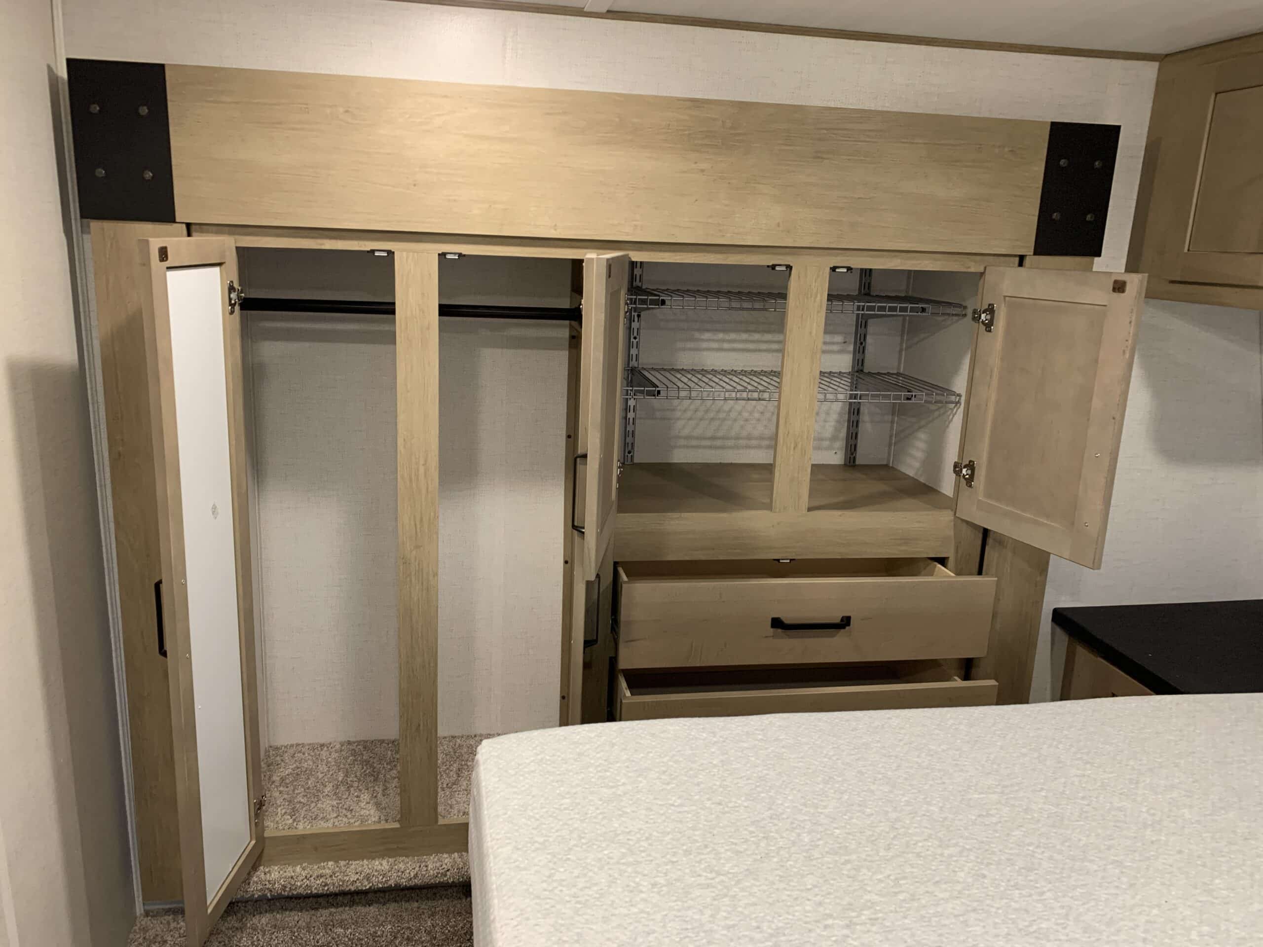 Dans la chambre fermée, il y a un lit king et un grand garde-robe.
