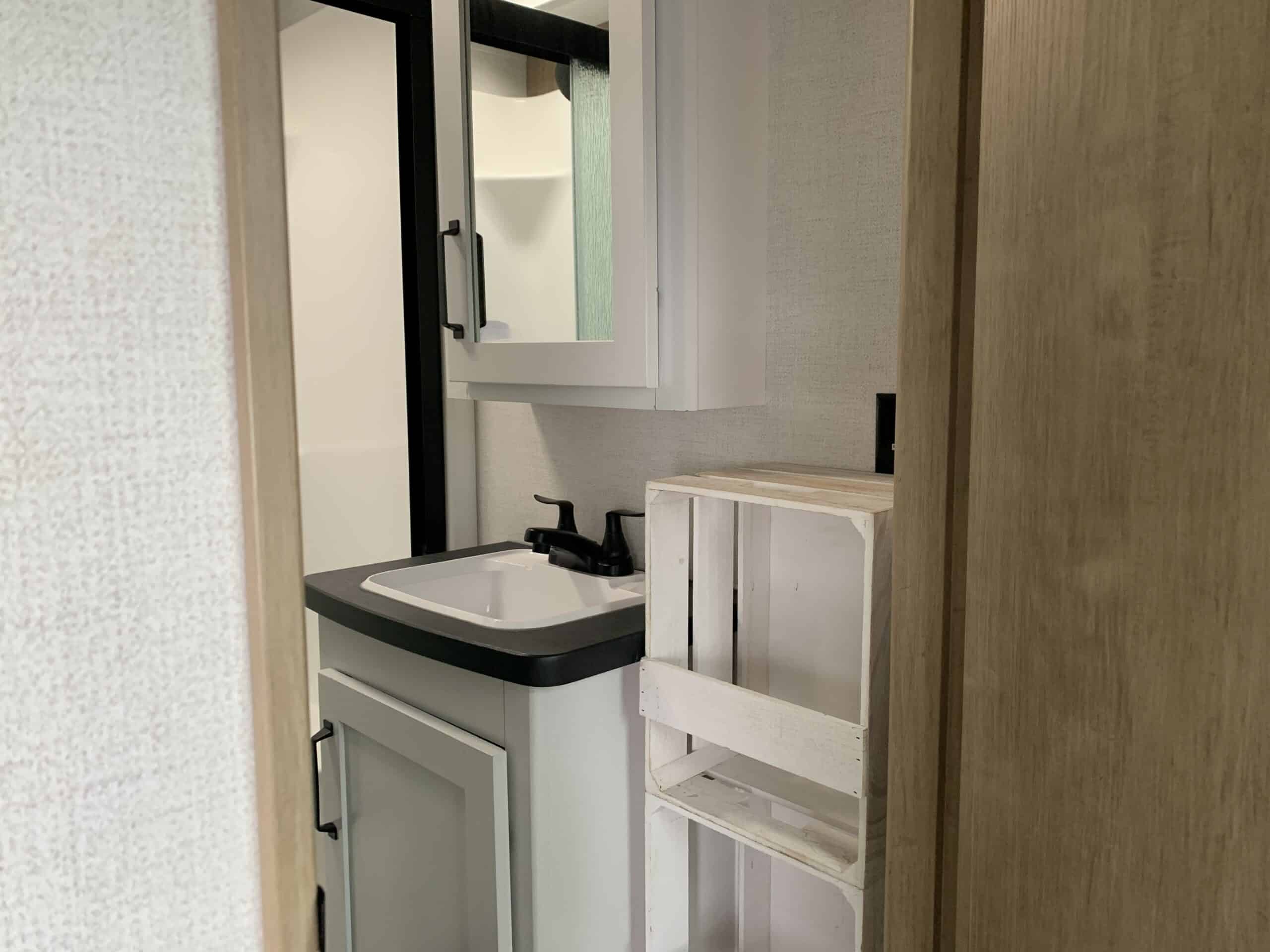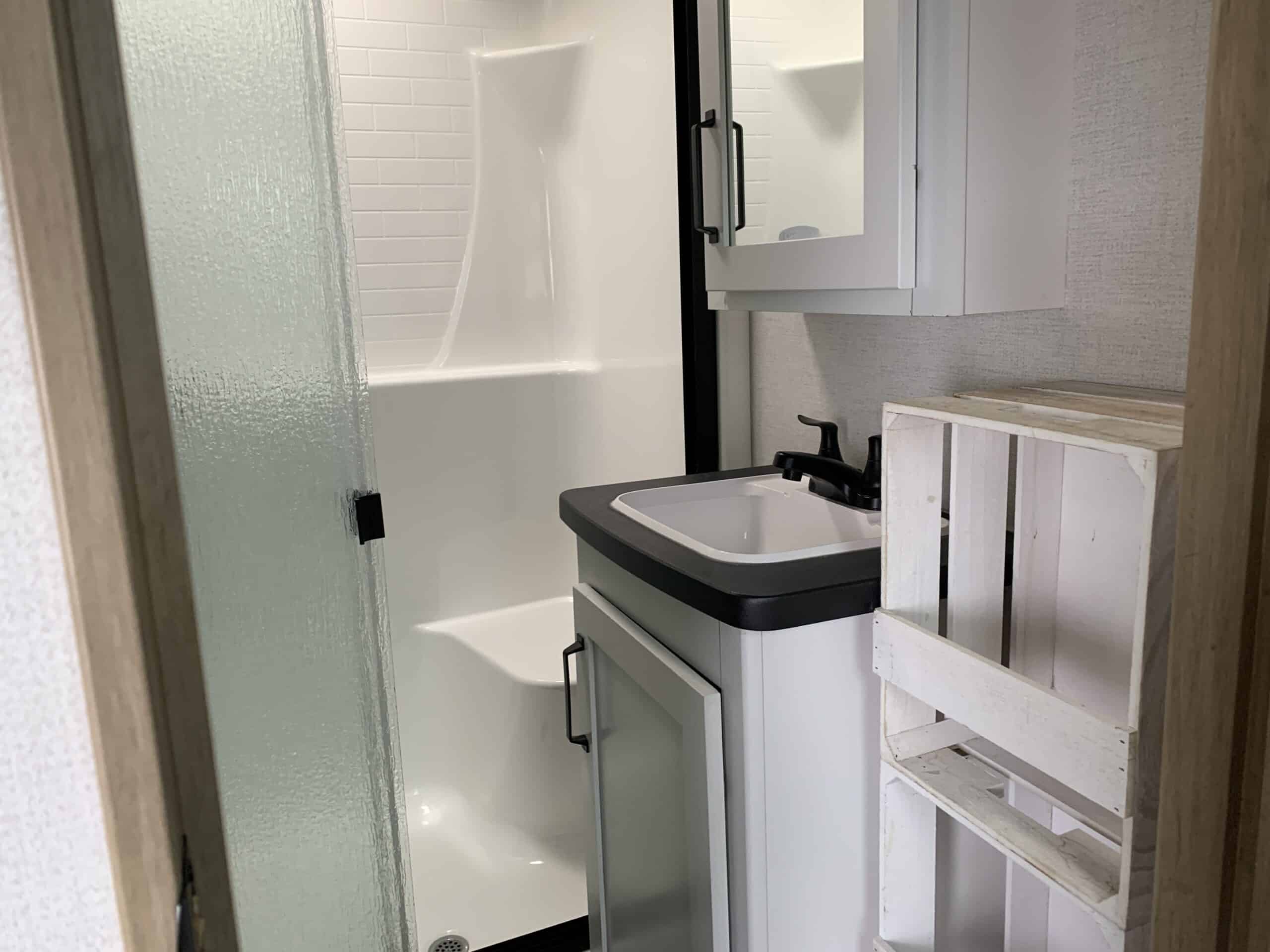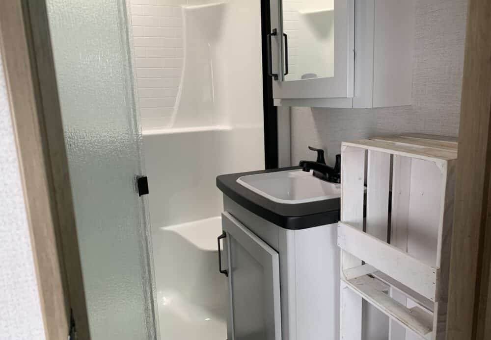 Sans oublier, la salle de bain avec douche, toilette et un meuble-lavabo.