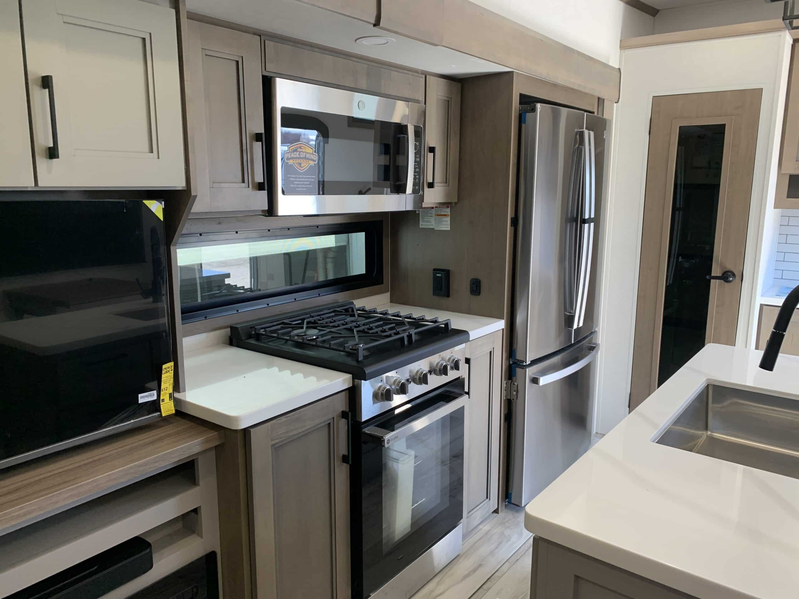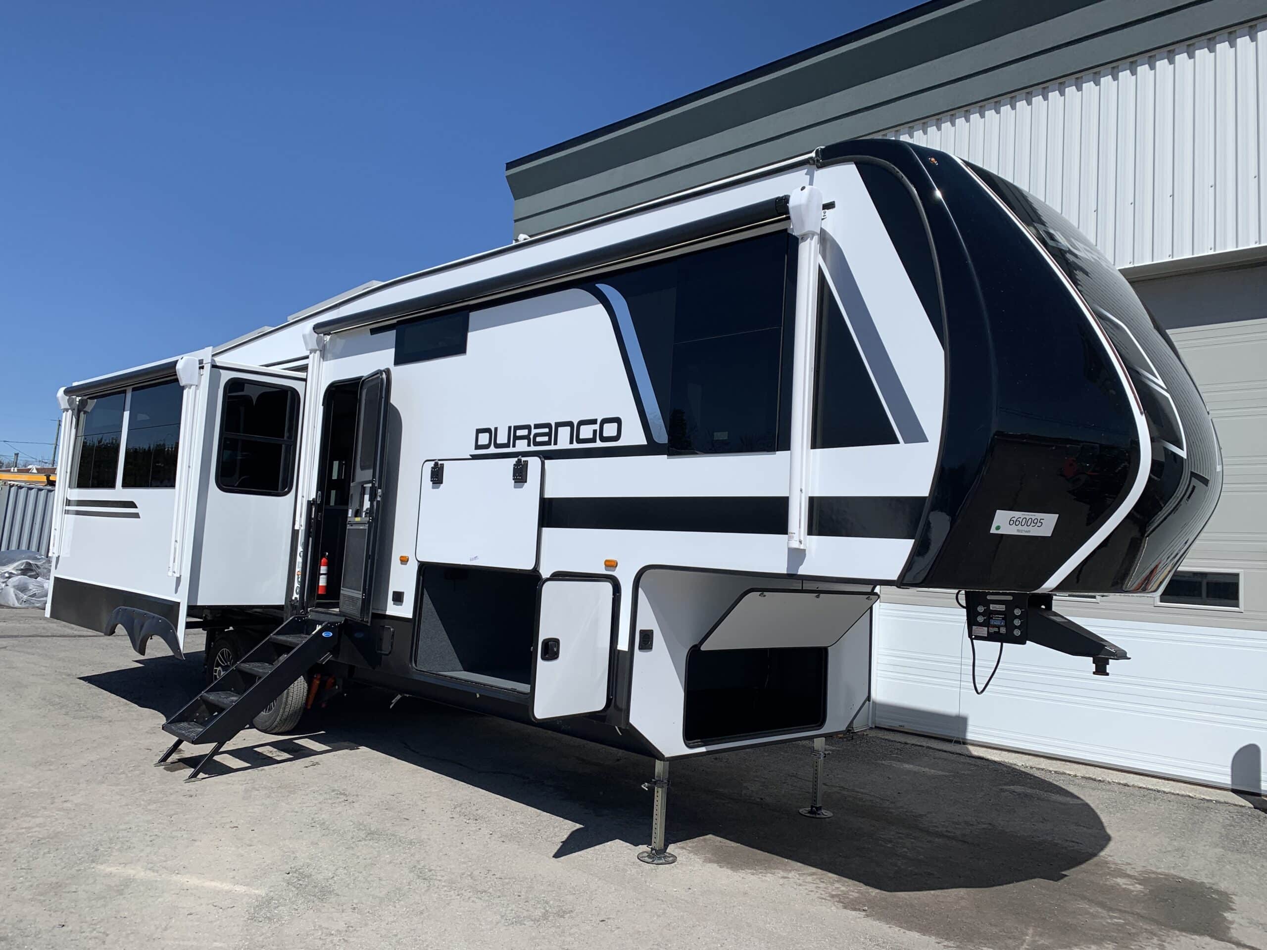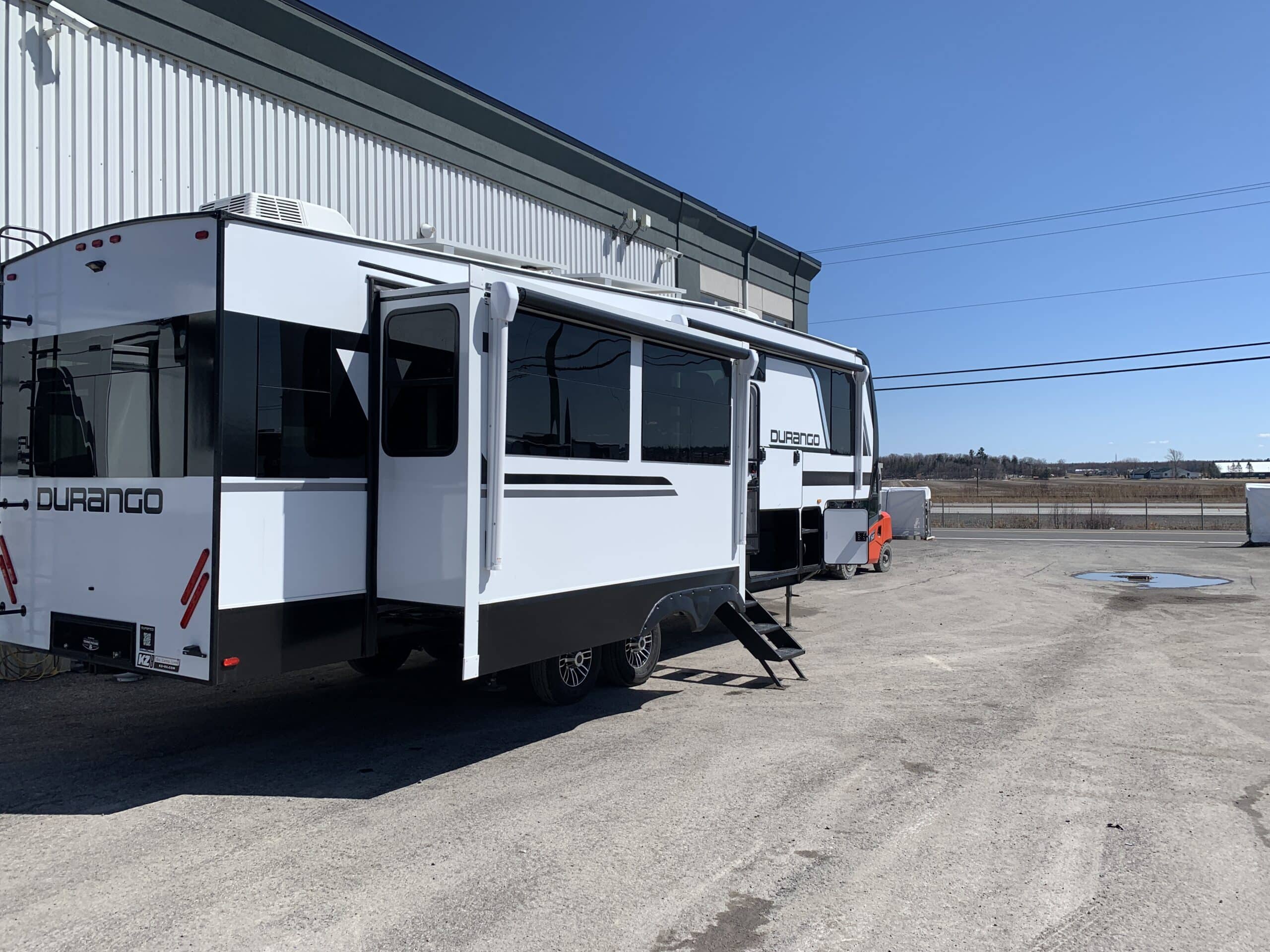 La Durango 301RLT 2026 est une roulotte à sellette haut de gamme conçue pour offrir un maximum de confort aux couples ou aux voyageurs à la recherche d’un espace de vie spacieux et élégant. Avec une longueur de 34.3 pieds et un poids d’un peu plus de 11 050 lb, elle propose une construction robuste et une excellente stabilité sur la route.
