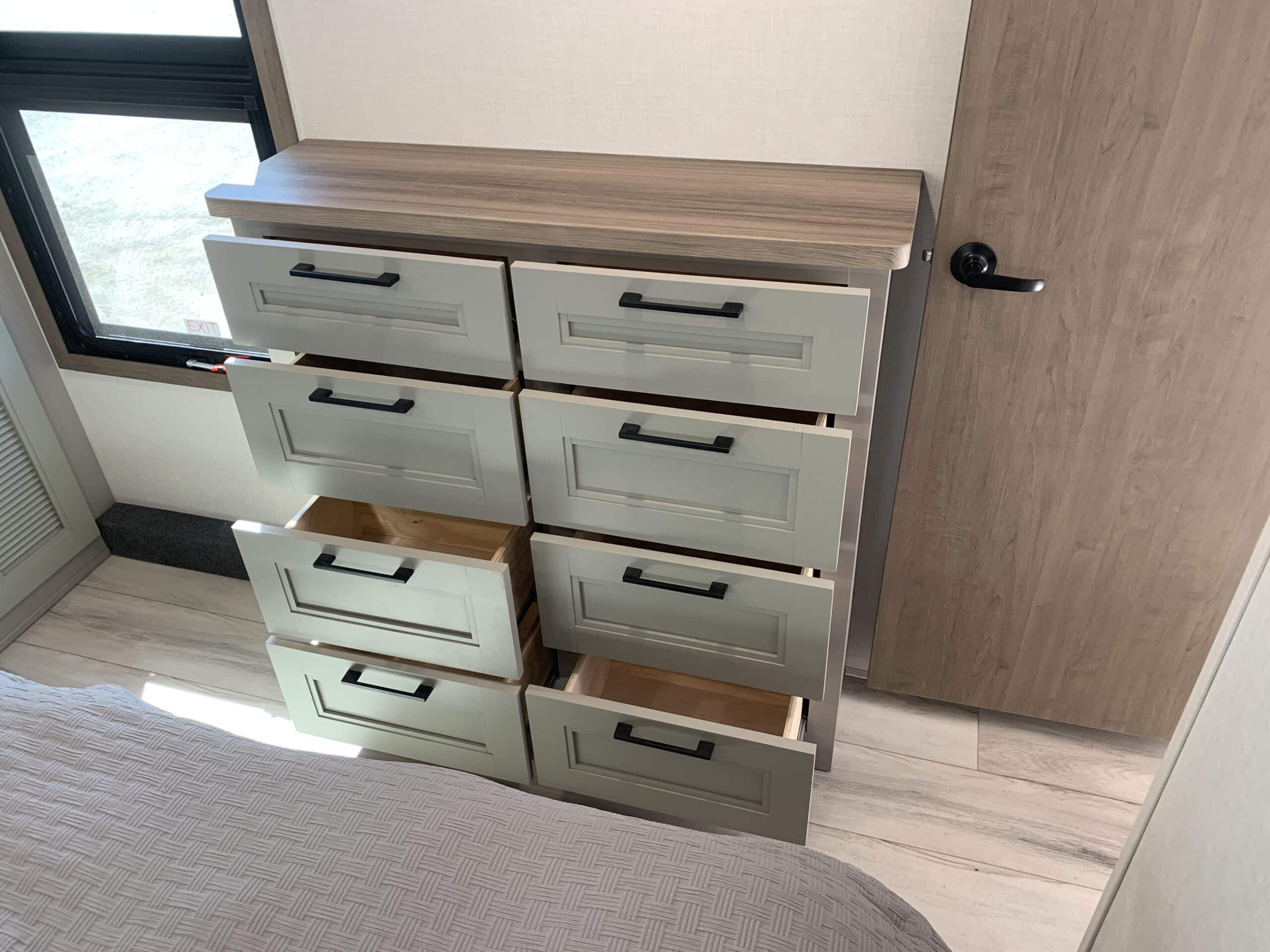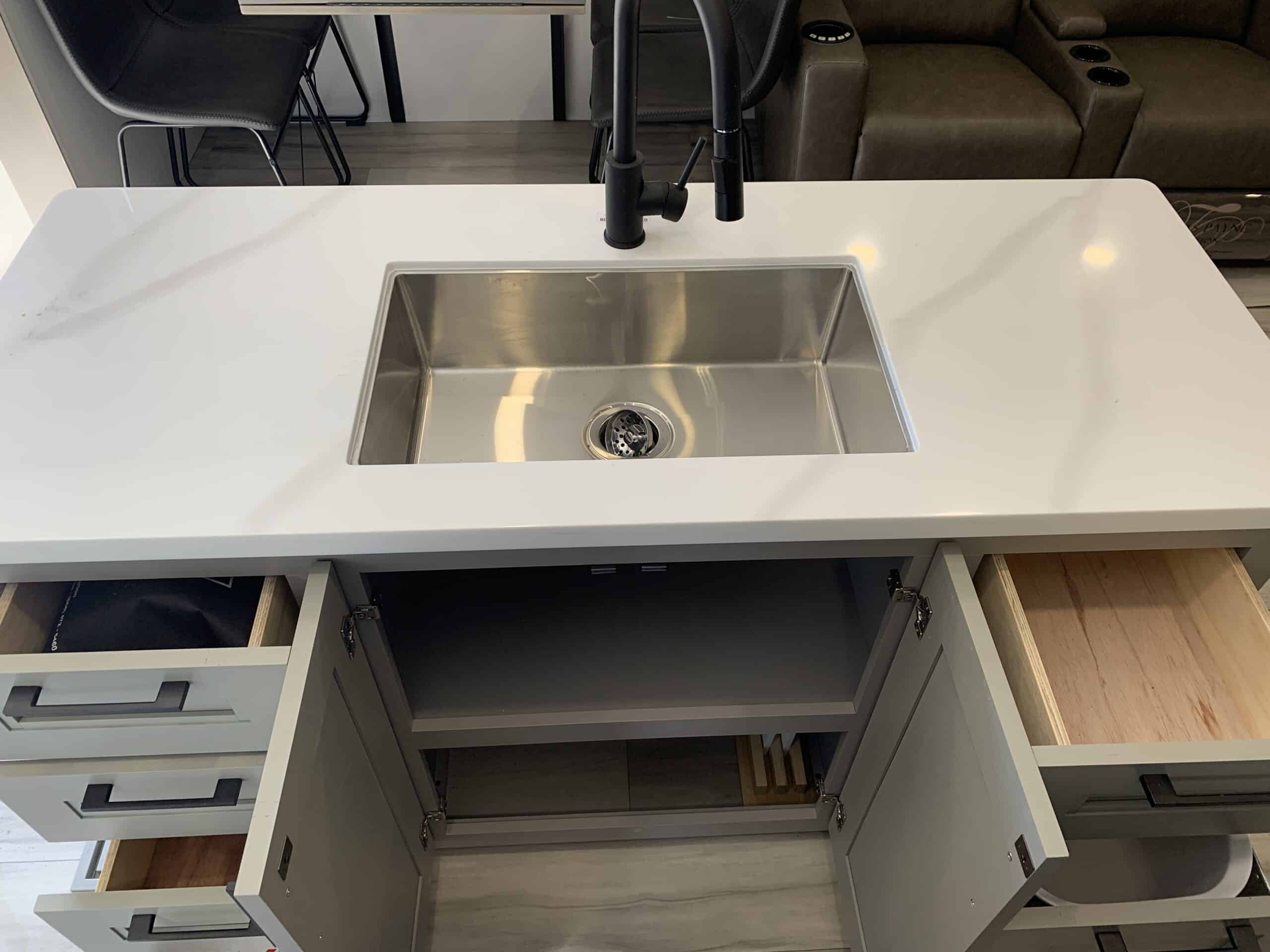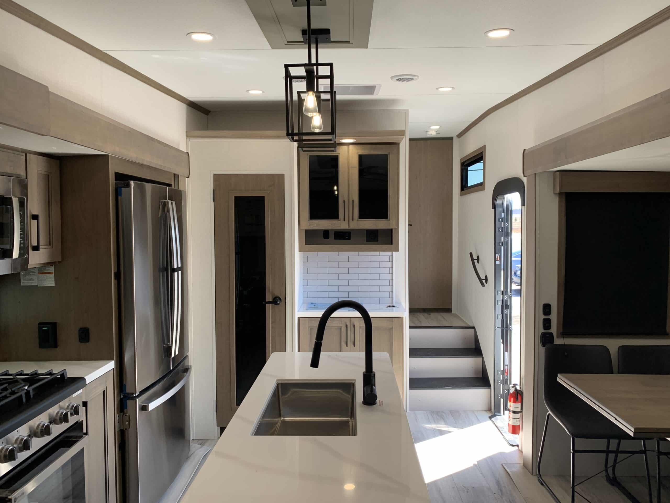 La Durango 301RLT 2026 est une roulotte à sellette haut de gamme conçue pour offrir un maximum de confort aux couples ou aux voyageurs à la recherche d’un espace de vie spacieux et élégant. Avec une longueur de 34.3 pieds et un poids d’un peu plus de 11 050 lb, elle propose une construction robuste et une excellente stabilité sur la route.