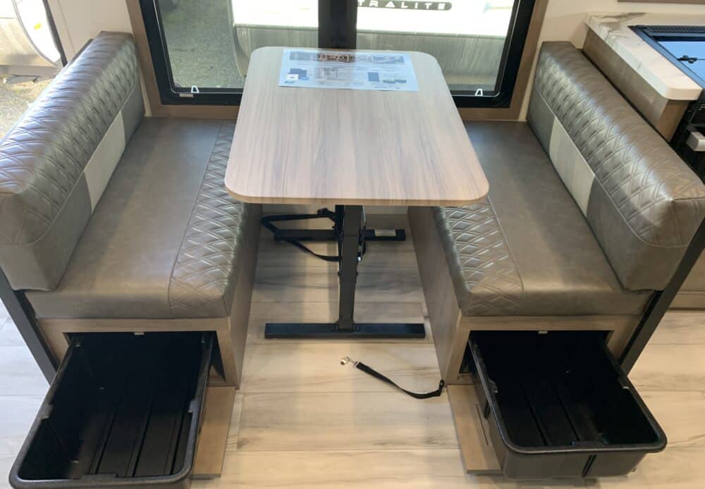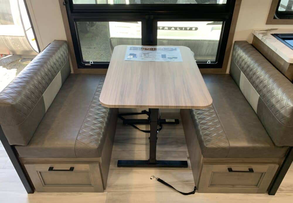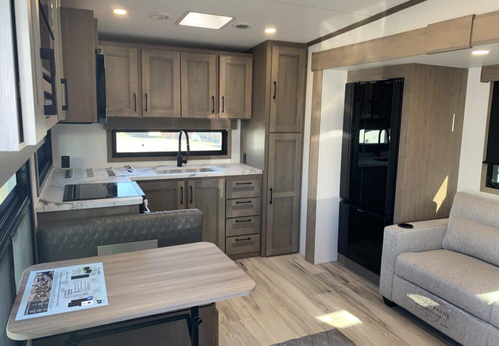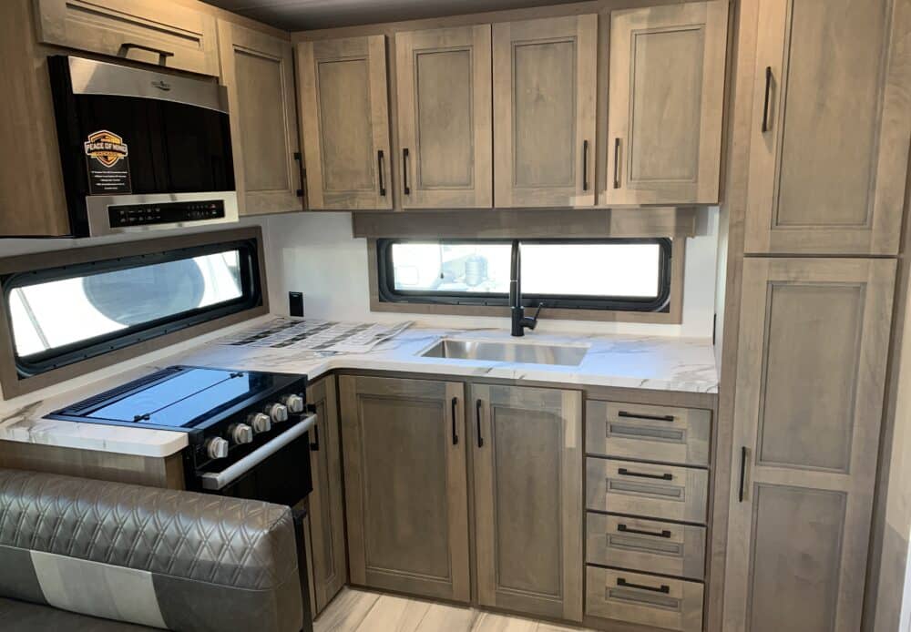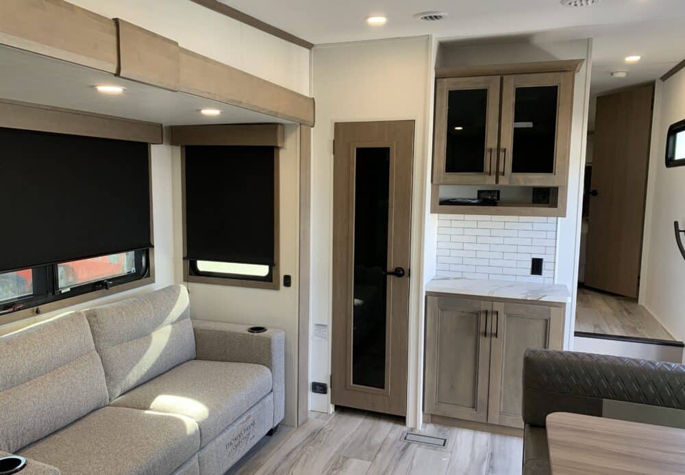 De plus, la Durango HT 232MLD a 2 airs climatisés de 15000 btu. qui tempéreront l’ambiance désirée. Par ailleurs, la cuisine a un micro-ondes, un poêle avec dessus en verre et un réfrigérateur 12 volts. Vous trouverez également une banquette et une causeuse inclinable. Enfin le système audio vous permettra d’écouter votre musique préférée.