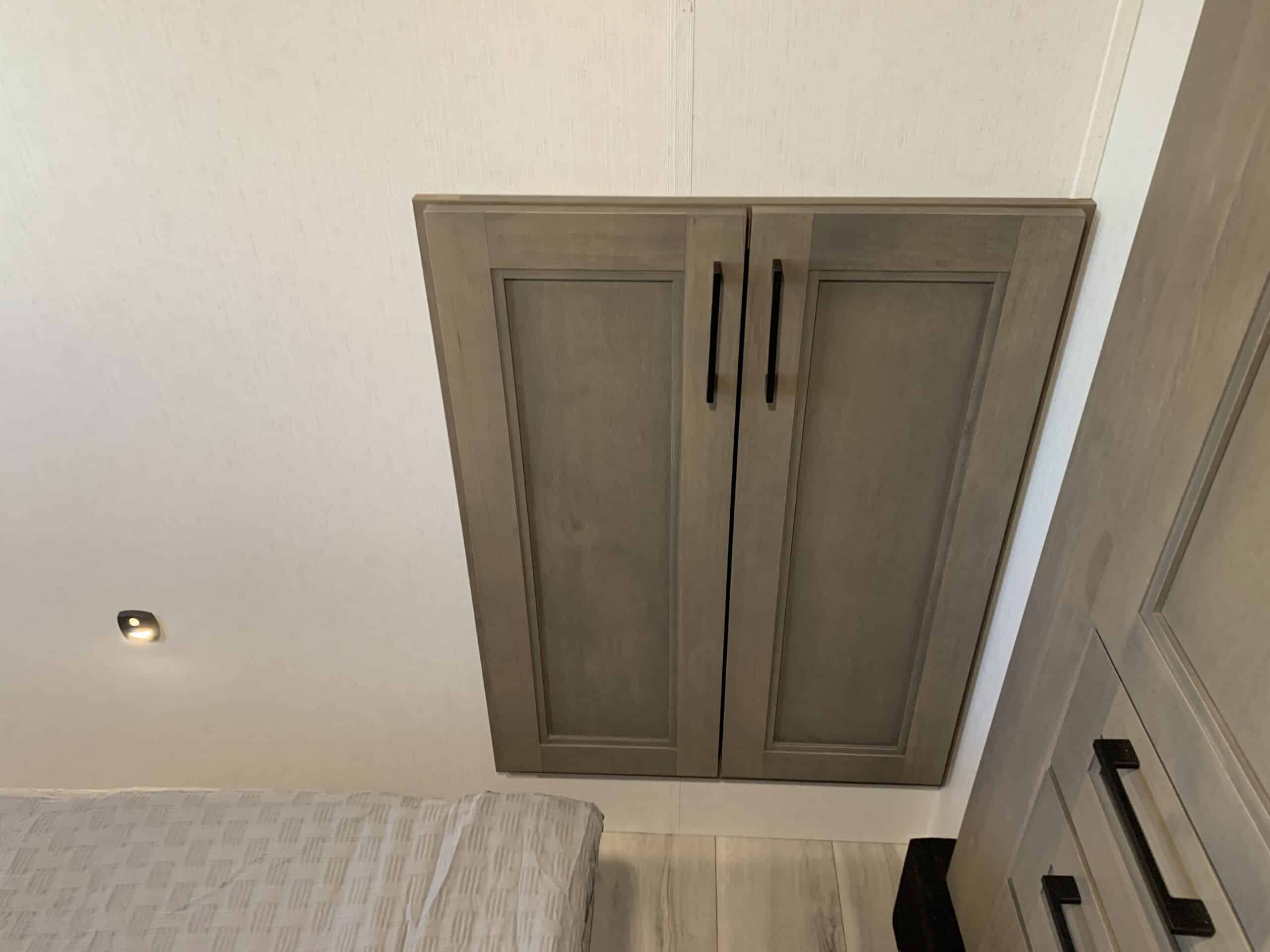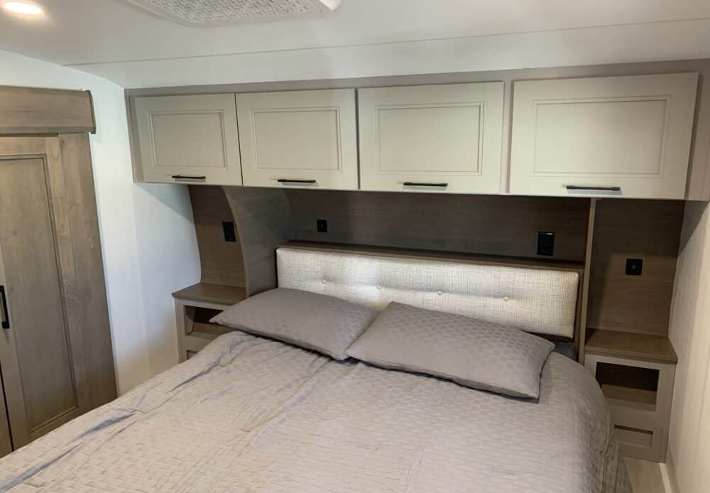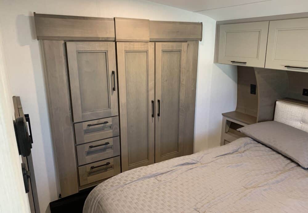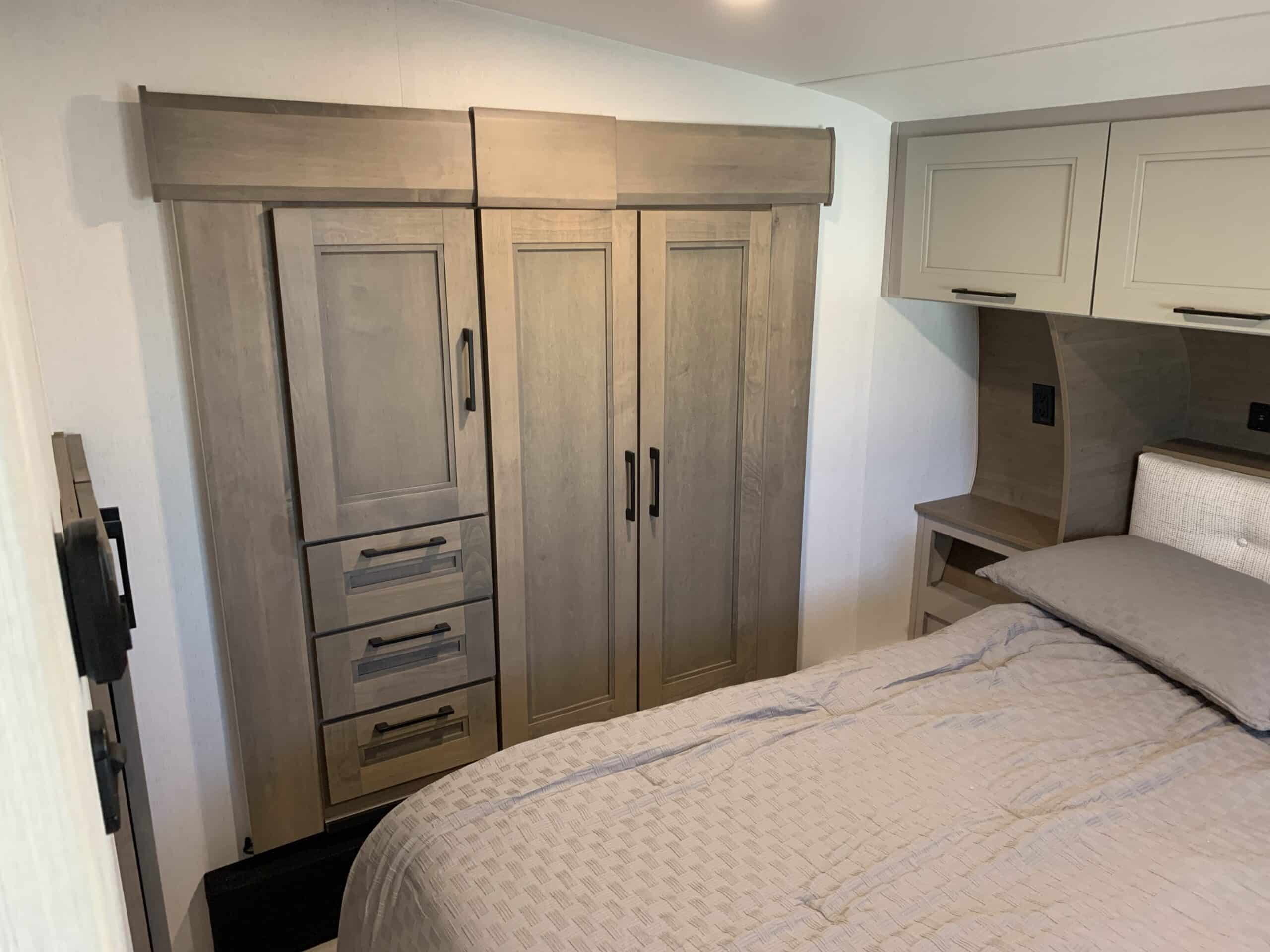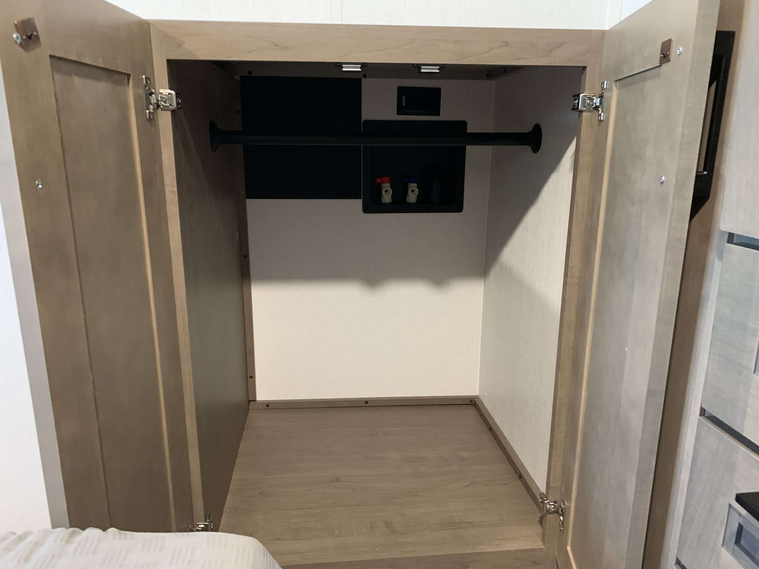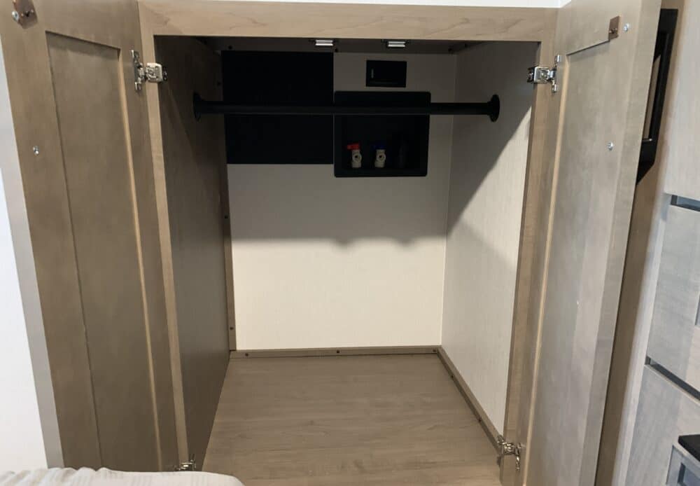 Cette roulotte est prête à recevoir une laveuse/sécheuse dans la chambre à coucher.