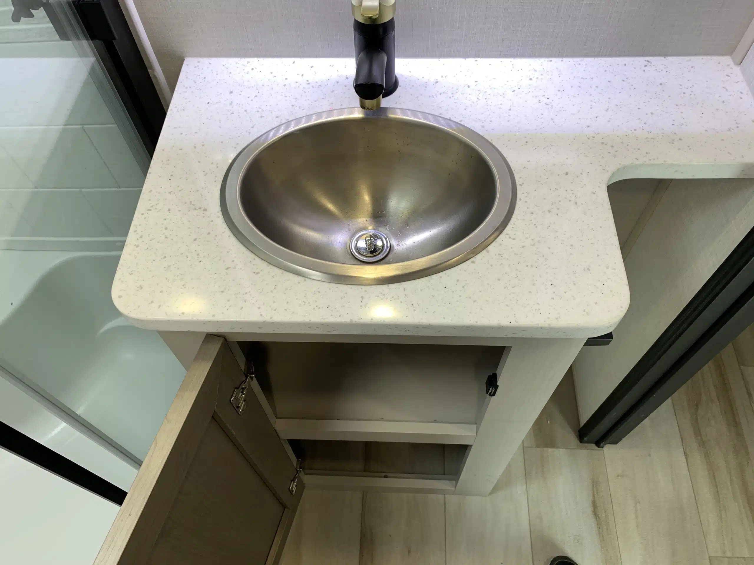 D’abord, cette roulotte avec un auvent de 13 pieds pour profiterez de l’extérieur sans soucis. Aussi muni d’une prise 50 ampères pour une meilleure qualité de courant et d’un panneau solaire. Puisque ses marches sont ajustables et très stables vous aurez un accès facile à l’intérieur. Les coffres ont un bel espace de rangement.