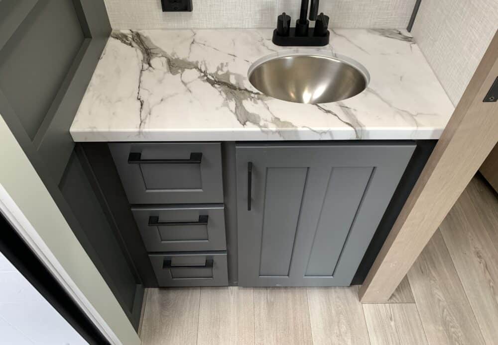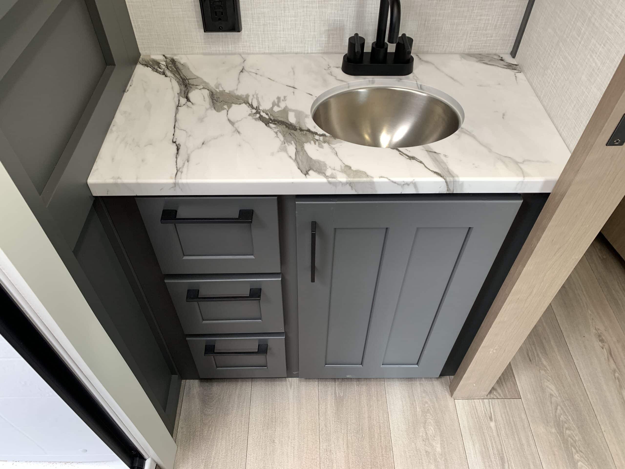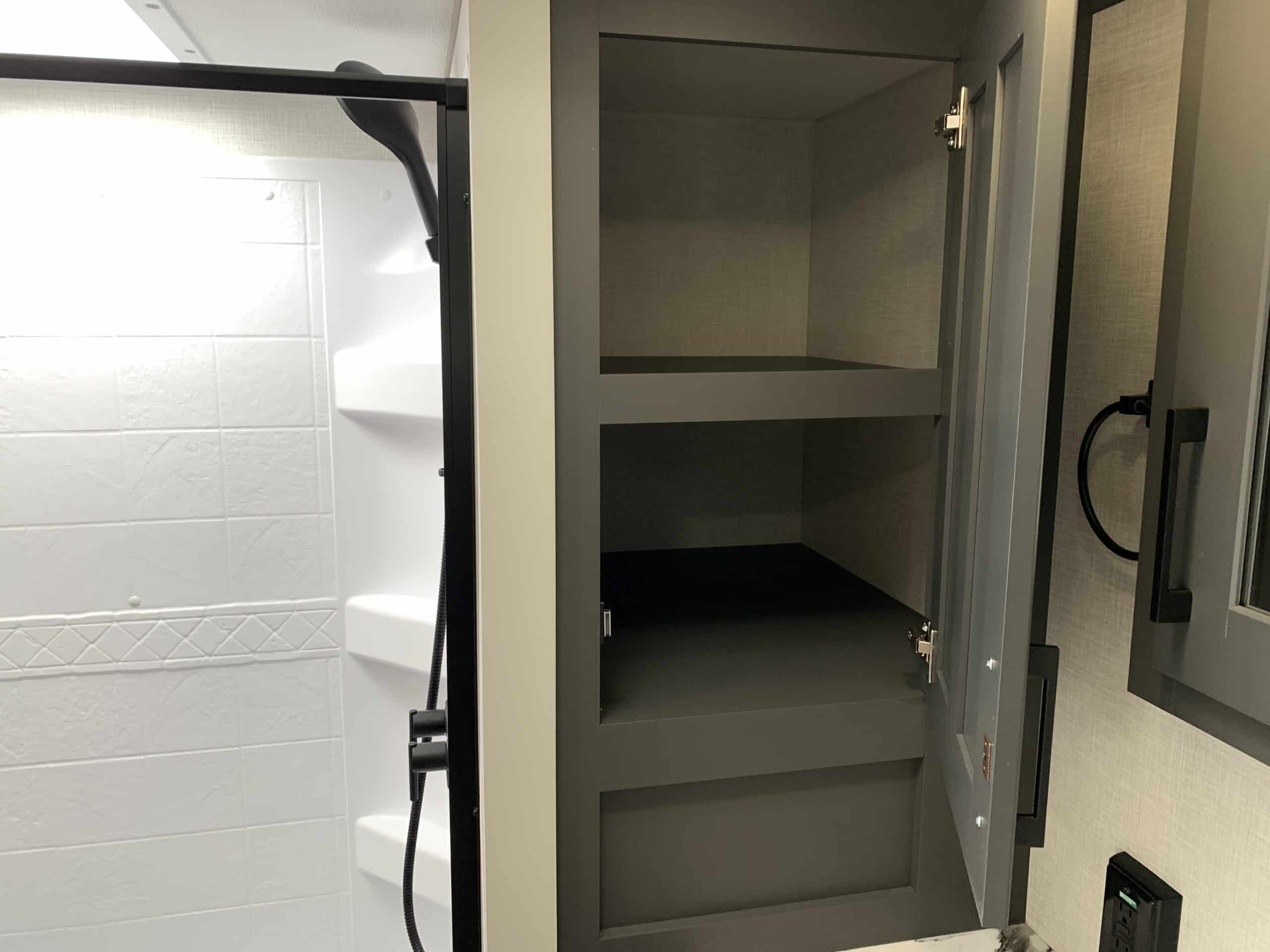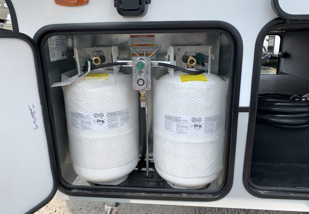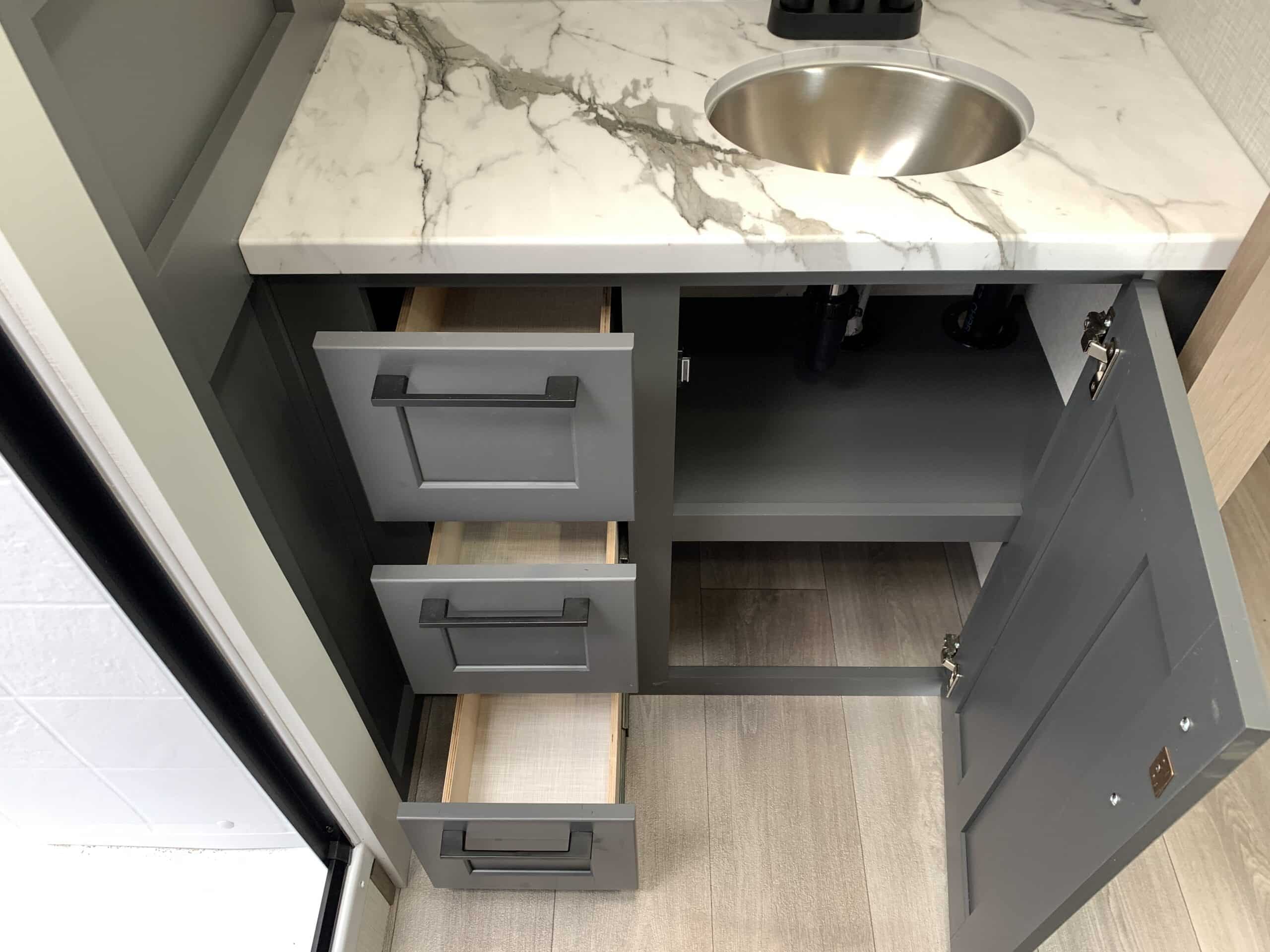 D’abord cette roulotte a 2 auvents de 17 et 11 pieds, une douche et une cuisine pour profiter de l’extérieur sans soucis. Puisque ses marches sont ajustables et très stables vous aurez un accès facile à l’intérieur. Ensuite, elle est muni d’une échelle pour faciliter l’accès au toit. Elle a également une prise 50 ampères pour une meilleure qualité de courant. Les coffres ont également un bel espace de rangement.