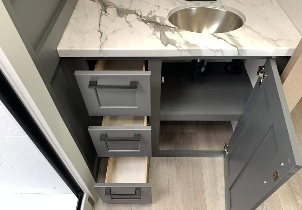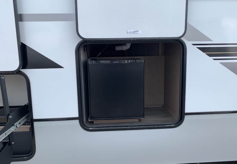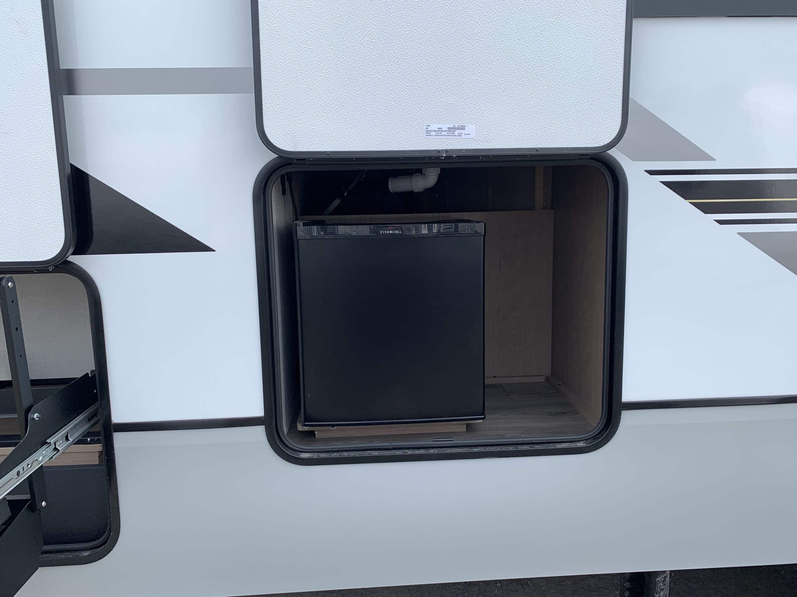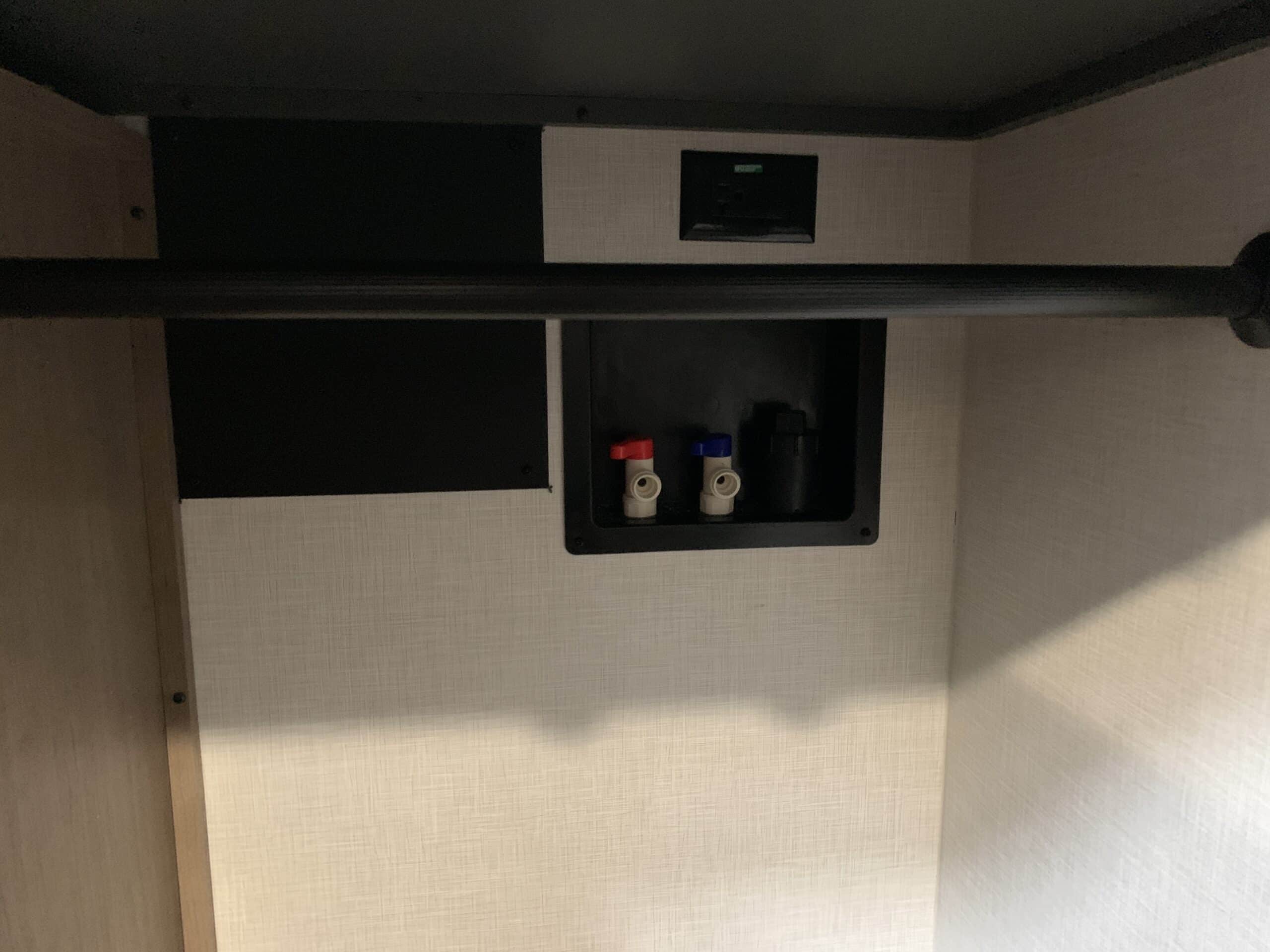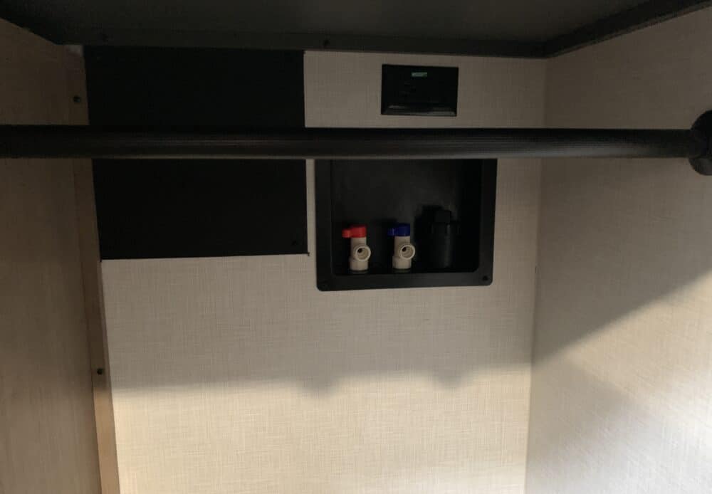 Cette roulotte est prête à recevoir une laveuse/sécheuse.