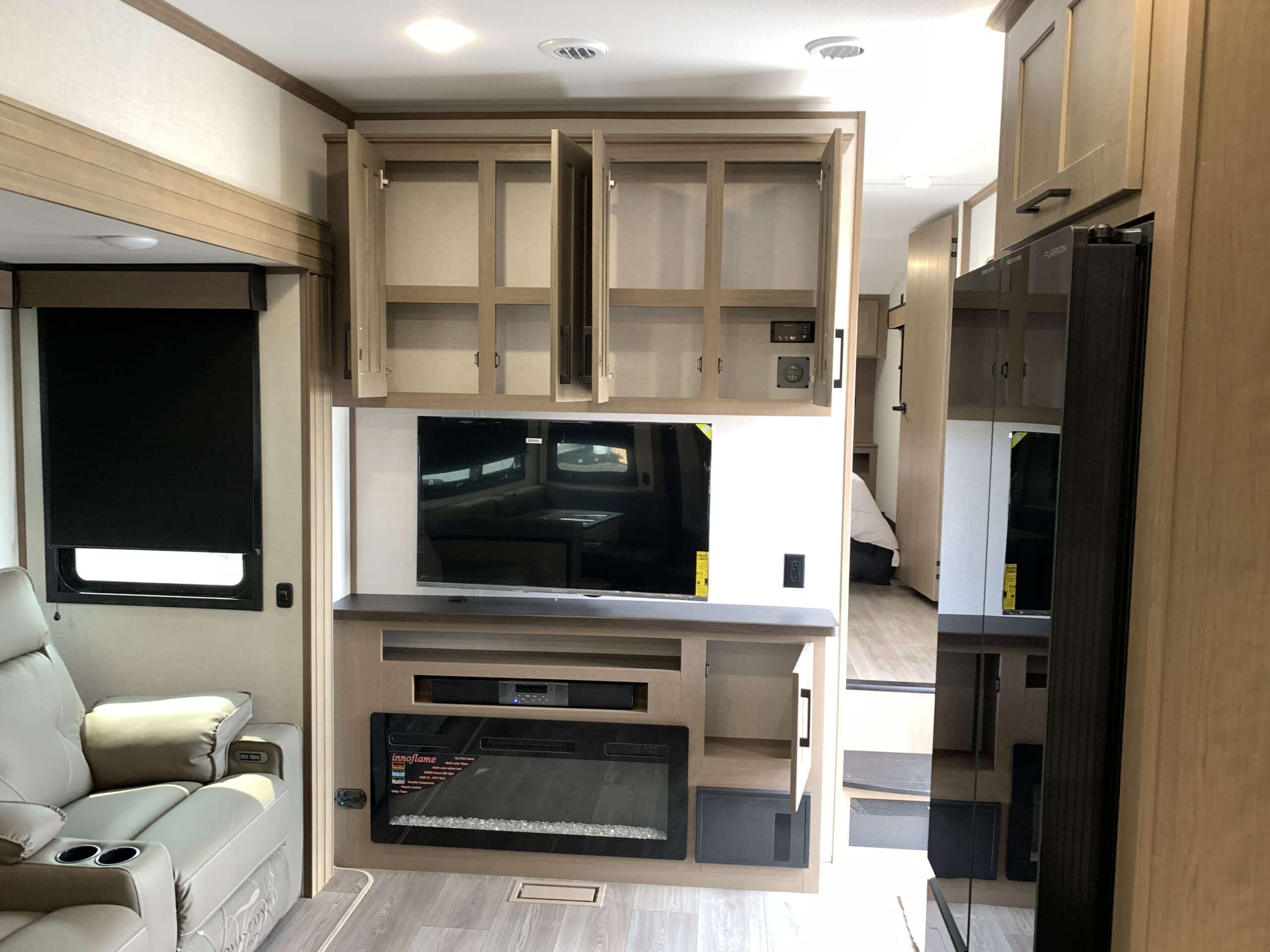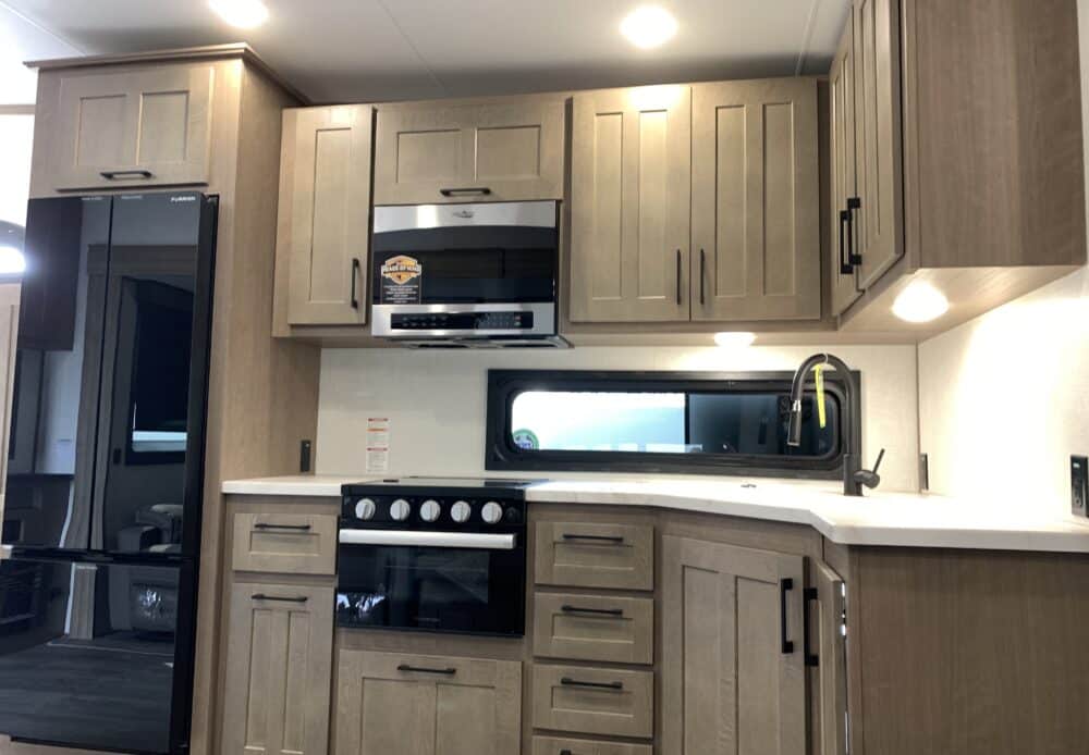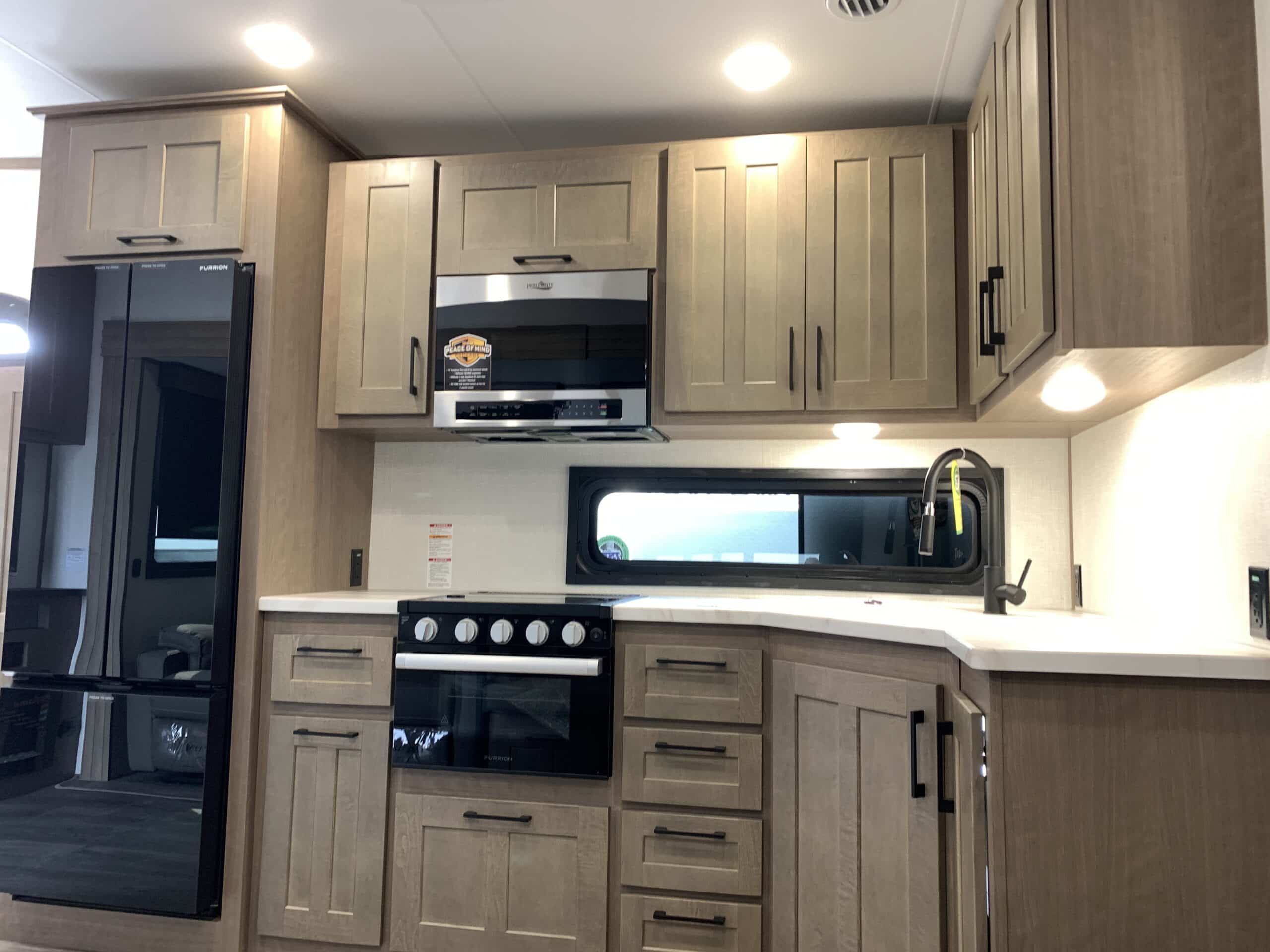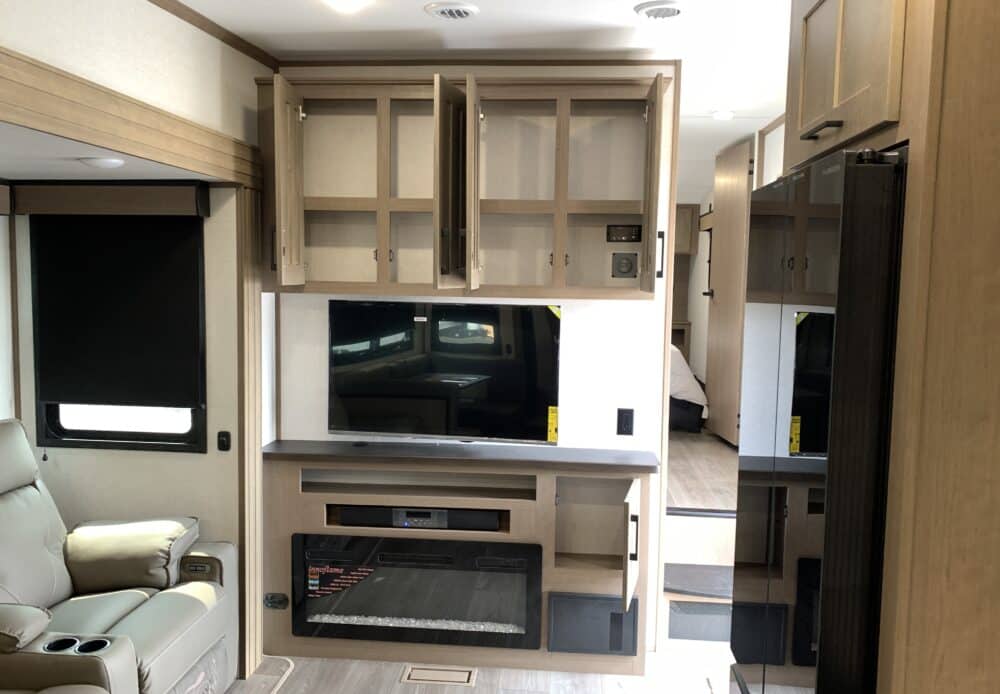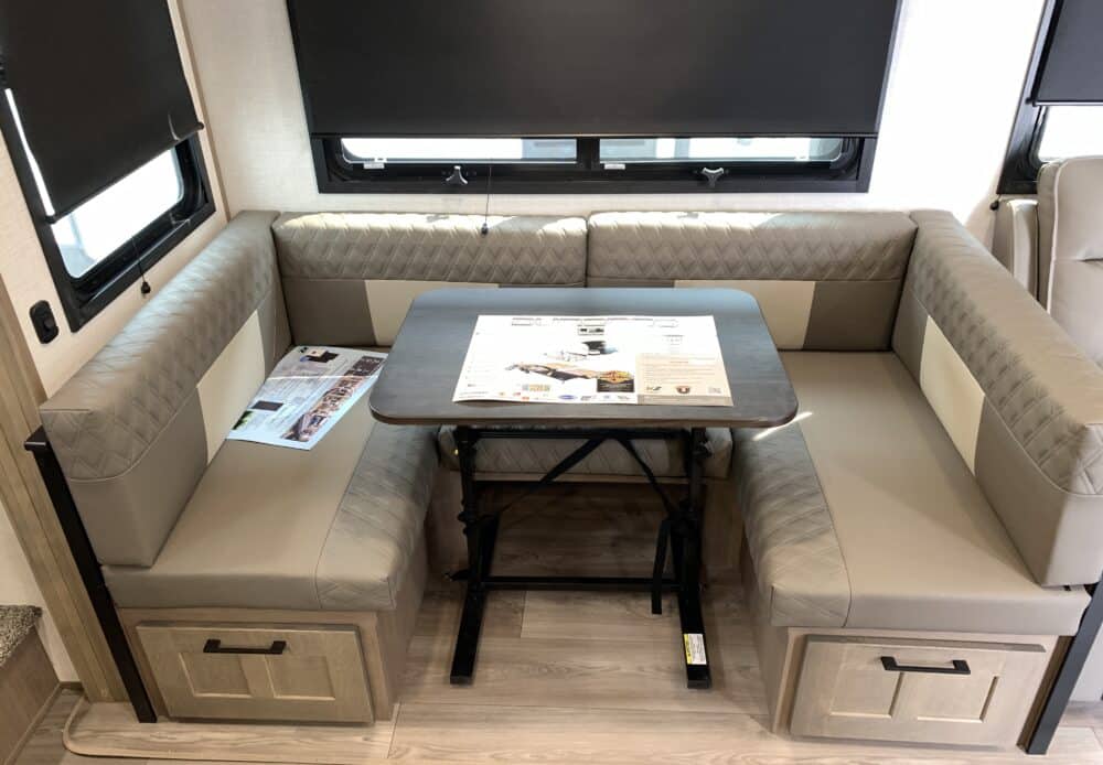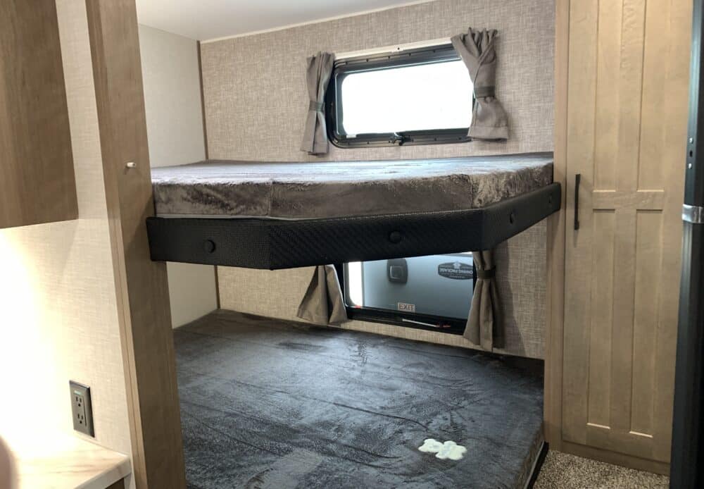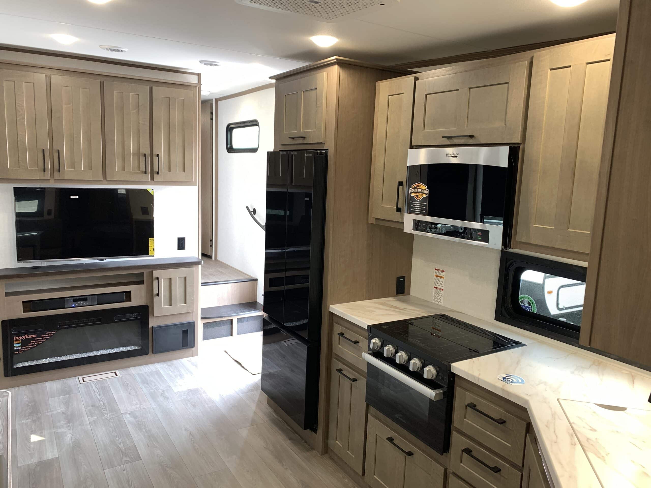 De plus, la Durango 286BHD a 2 airs climatisés de 15000 btu. et un foyer qui tempéreront  l’ambiance désirée. Par ailleurs, la cuisine a un micro-ondes, un poêle avec dessus en verre et un réfrigérateur 12 volts. Vous trouverez également une table banquette et une causeuse inclinable. Enfin le système audio vous permettra d’écouter votre musique préférée.