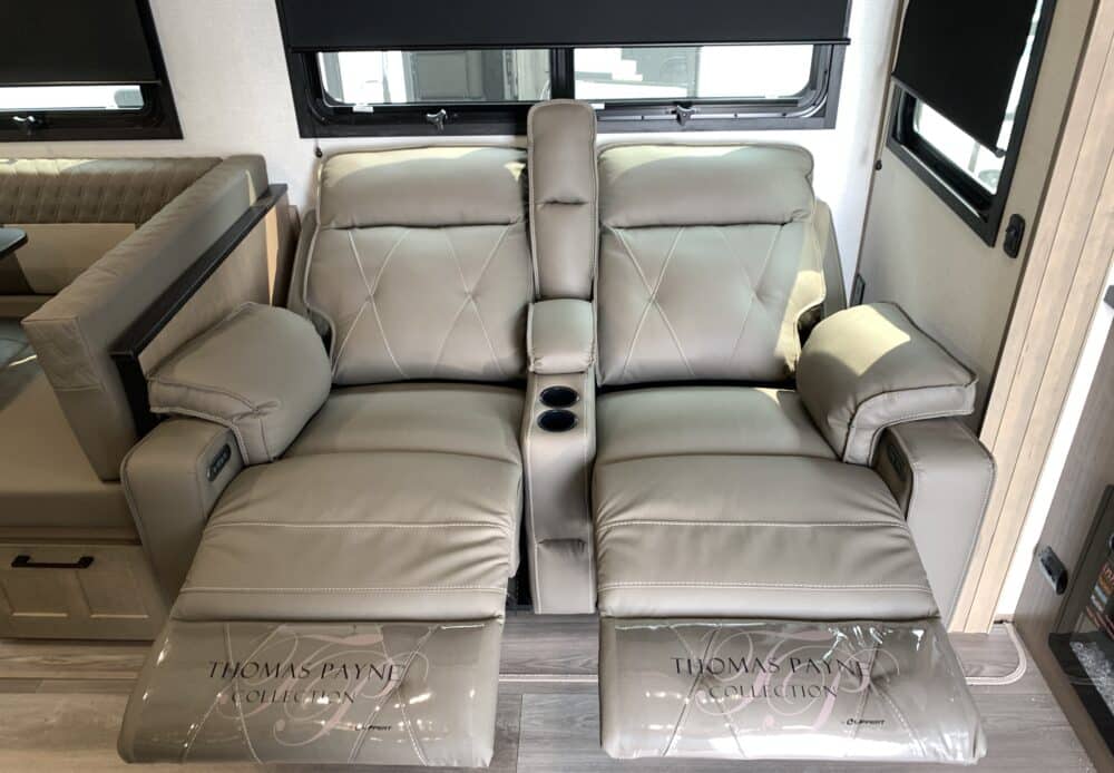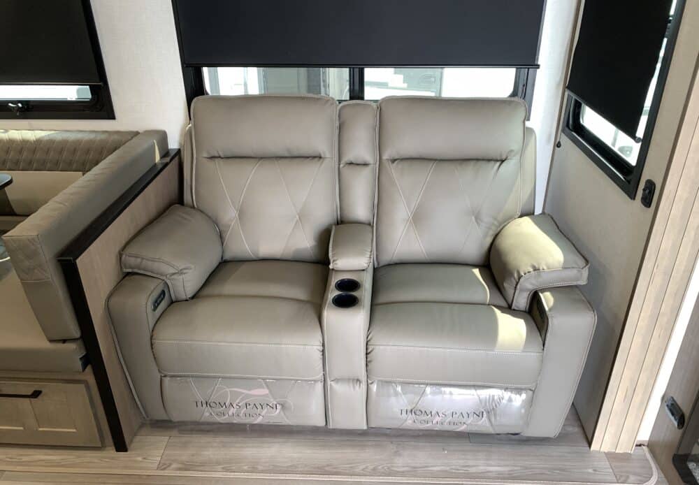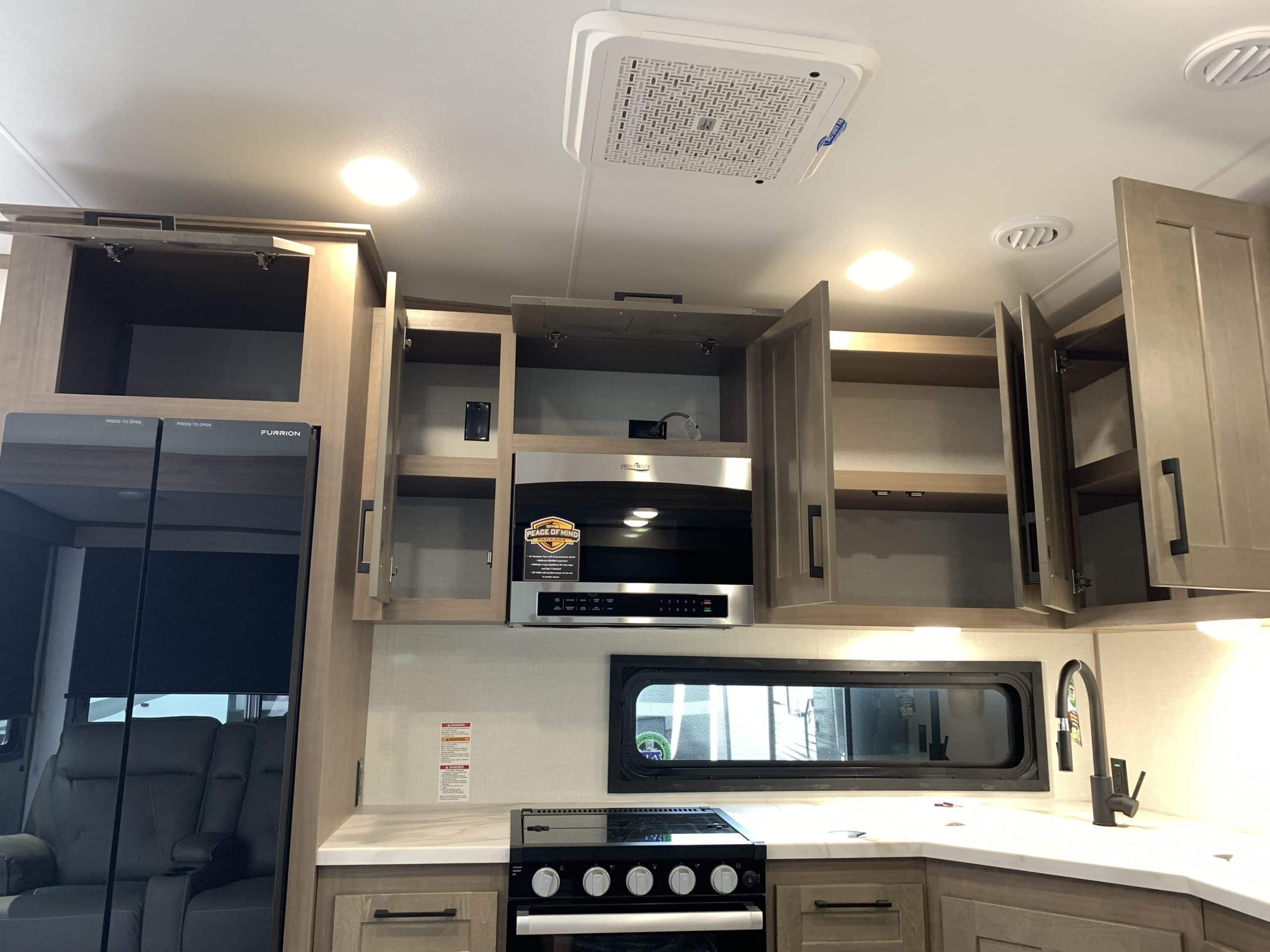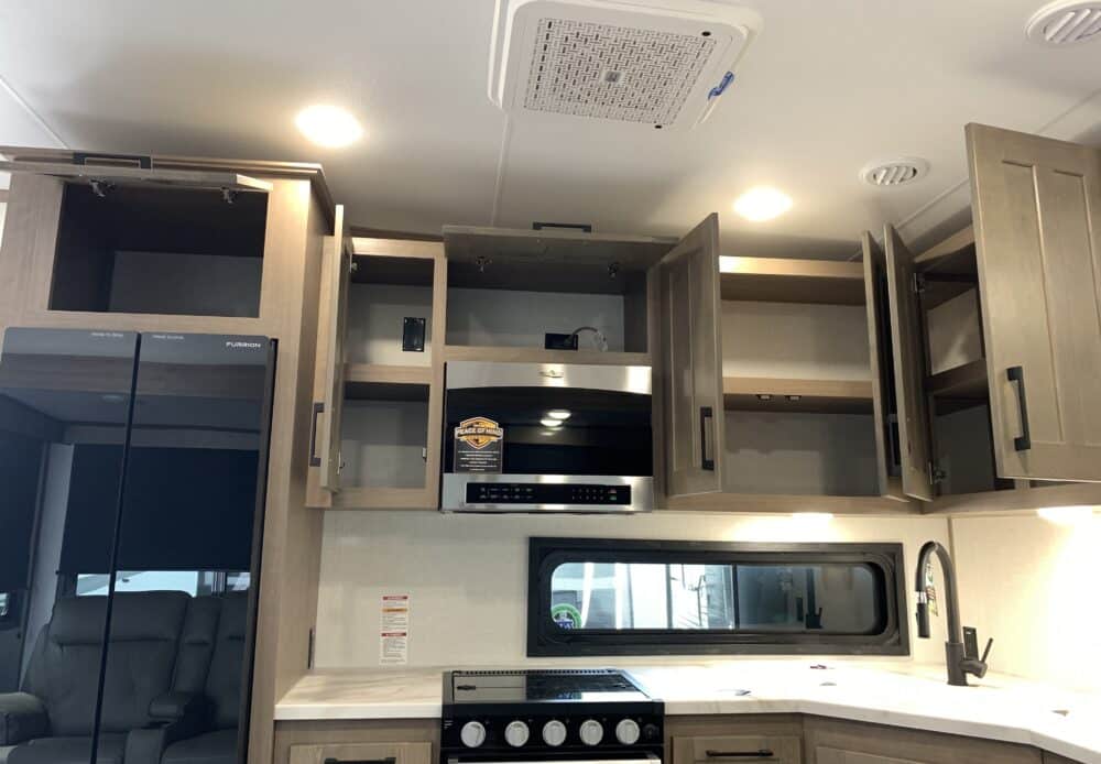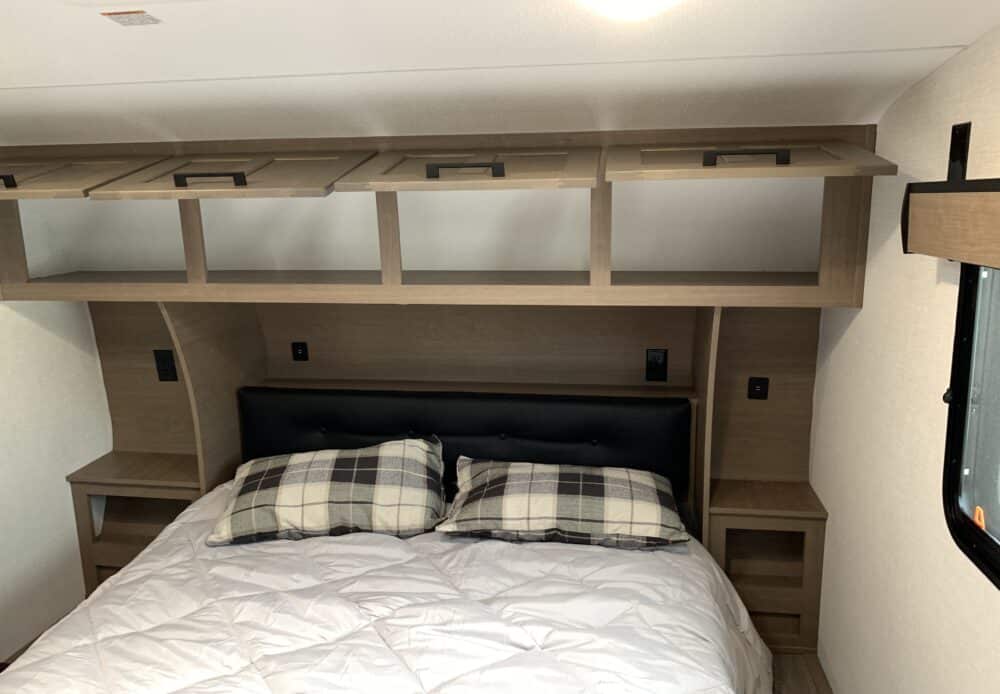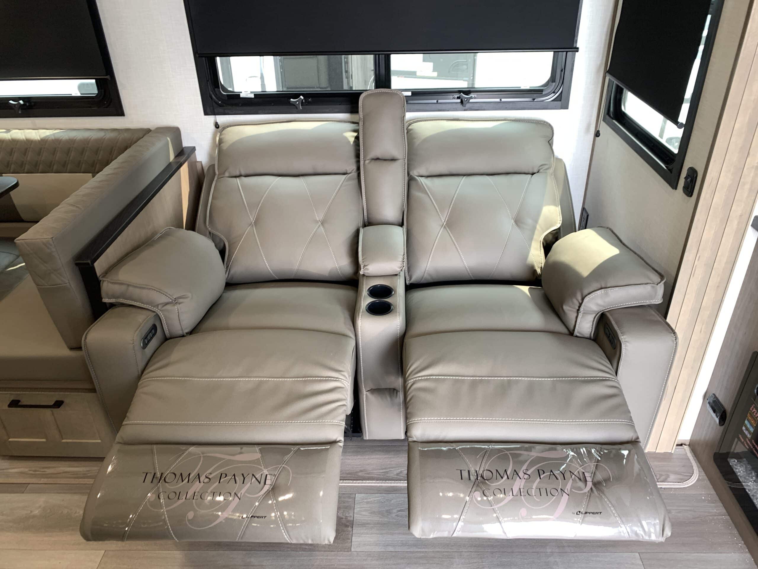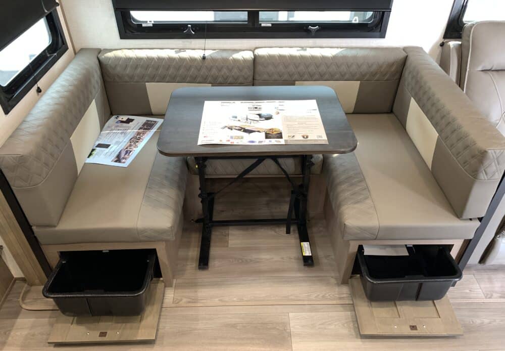 De plus, la Durango 286BHD a 2 airs climatisés de 15000 btu. et un foyer qui tempéreront  l’ambiance désirée. Par ailleurs, la cuisine a un micro-ondes, un poêle avec dessus en verre et un réfrigérateur 12 volts. Vous trouverez également une table banquette et une causeuse inclinable. Enfin le système audio vous permettra d’écouter votre musique préférée.
