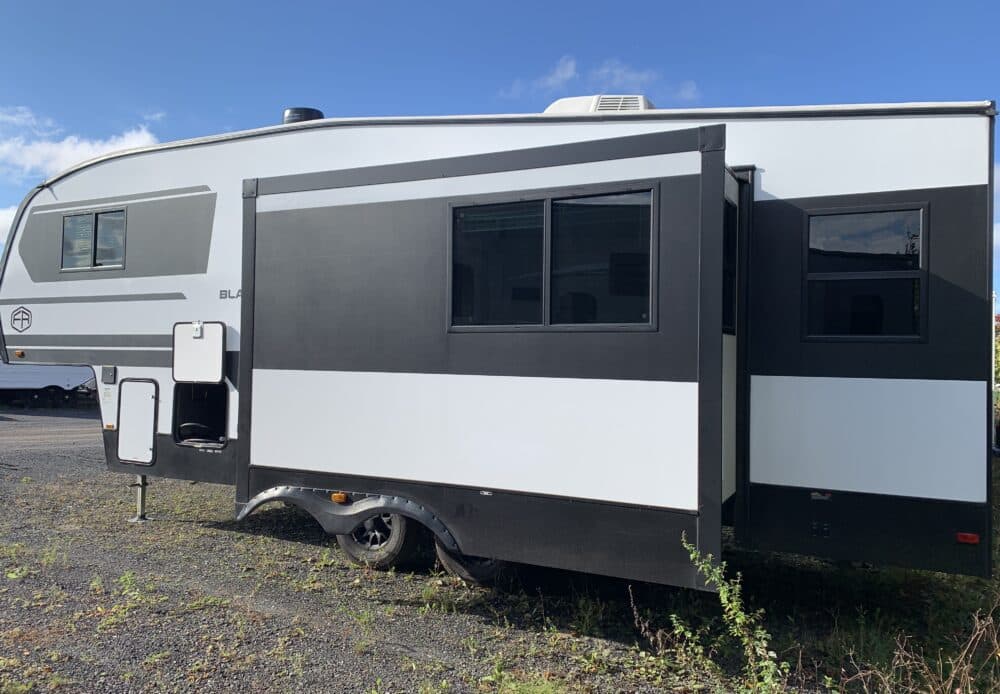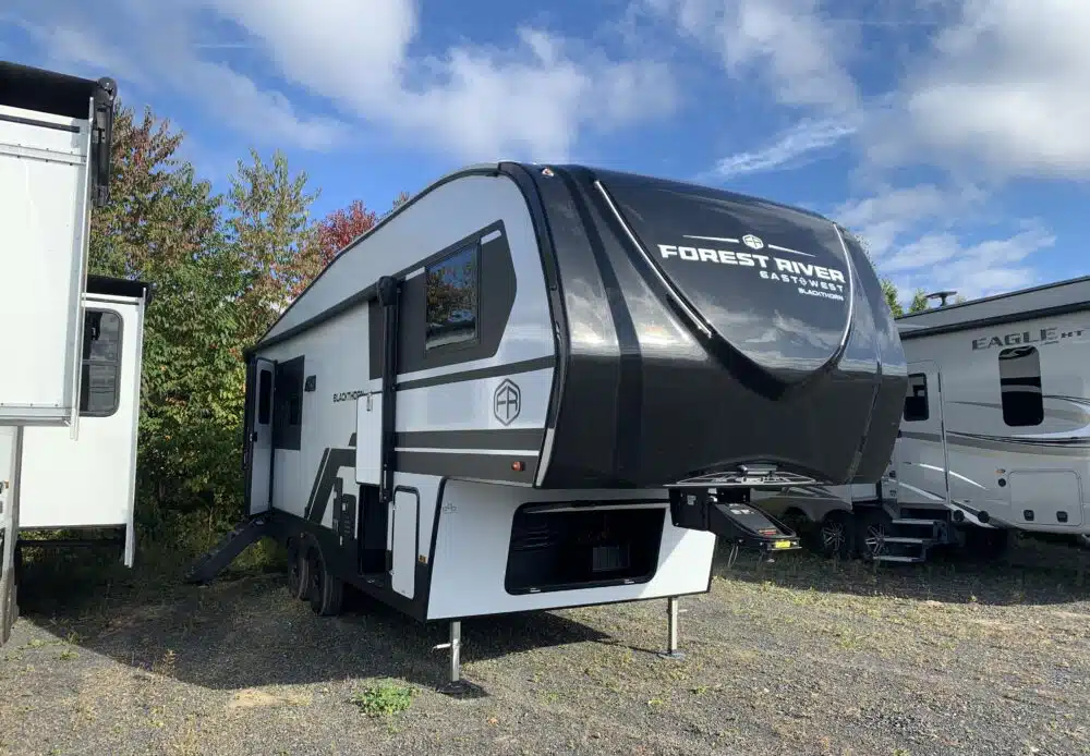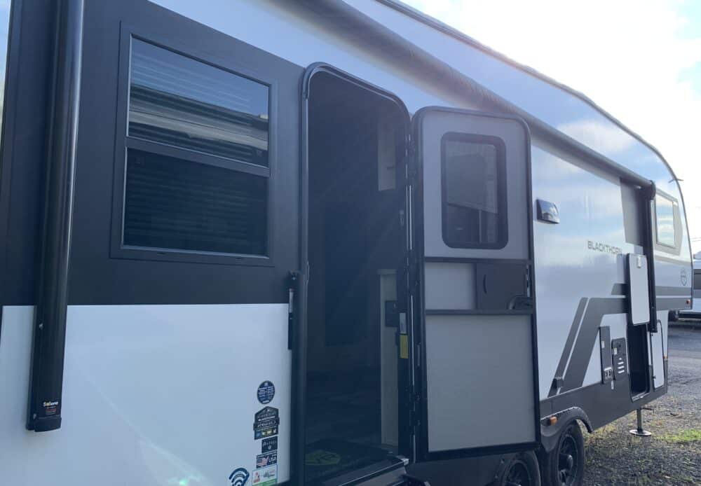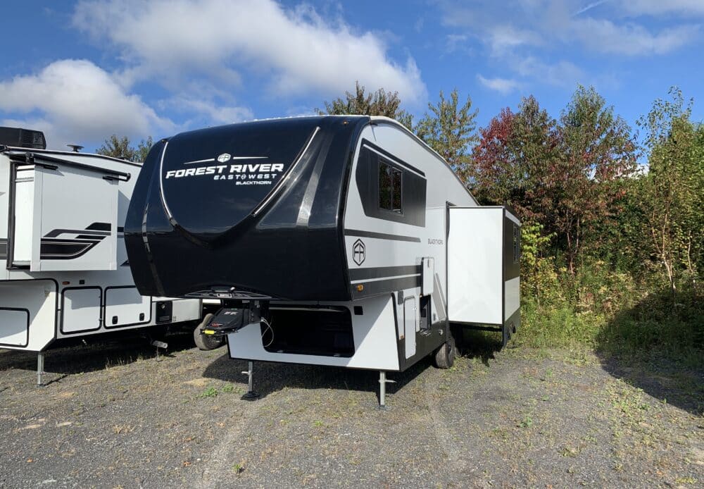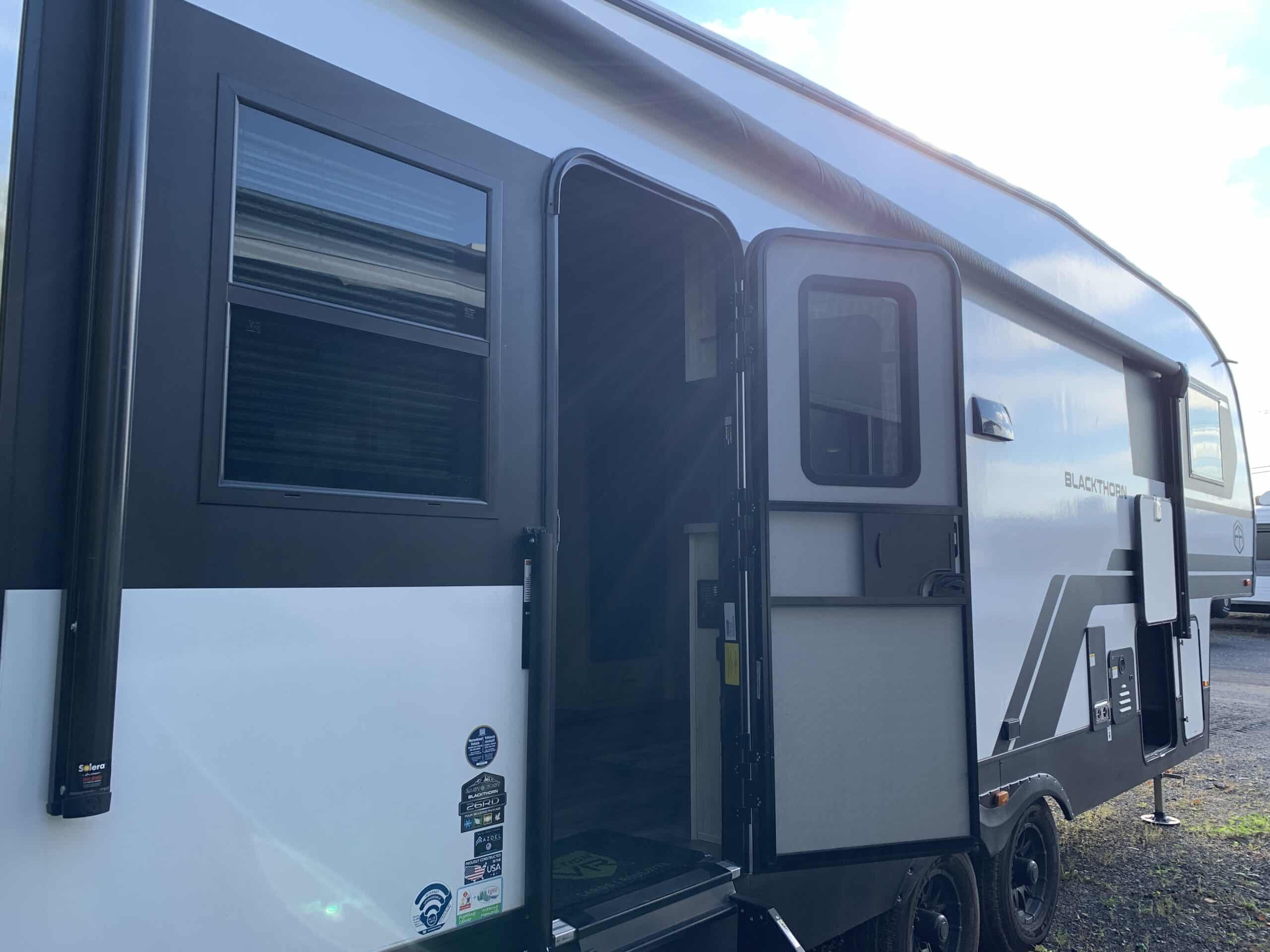2025 Blackthorn 26RD, roulotte à sellette pour couple de 29.9 pieds à 8024 lbs avec 2 essieux, extérieur en fibre, laminé en Azdel et 1 extension.