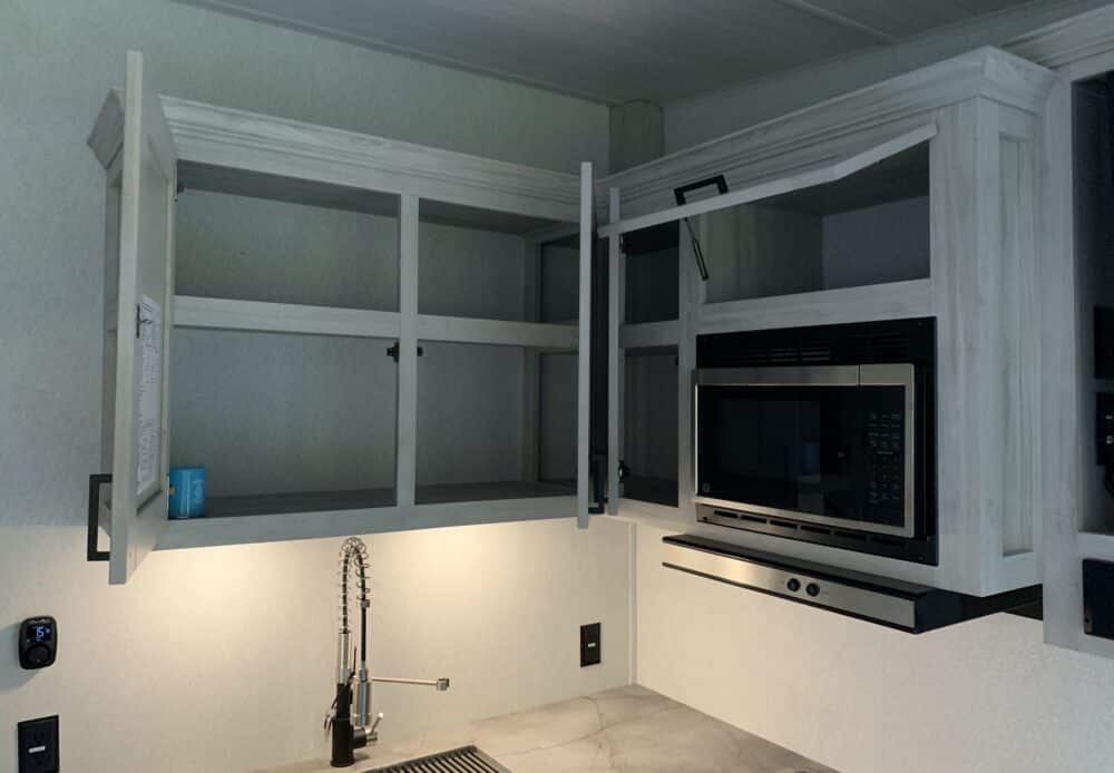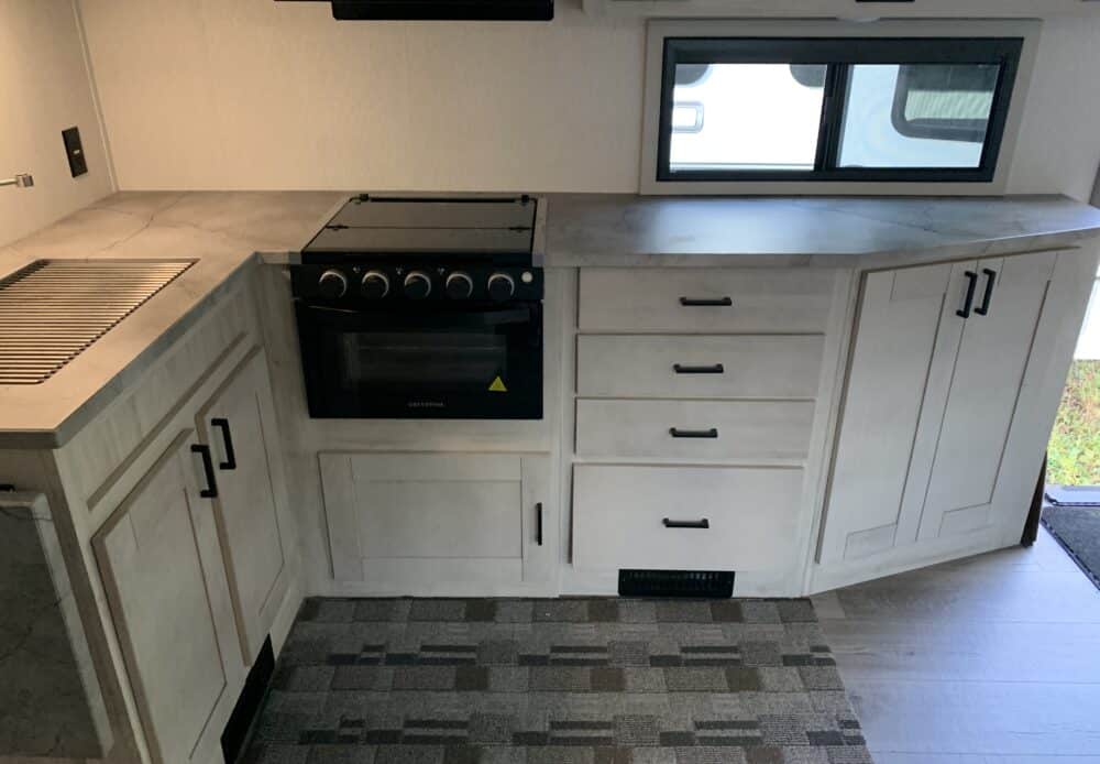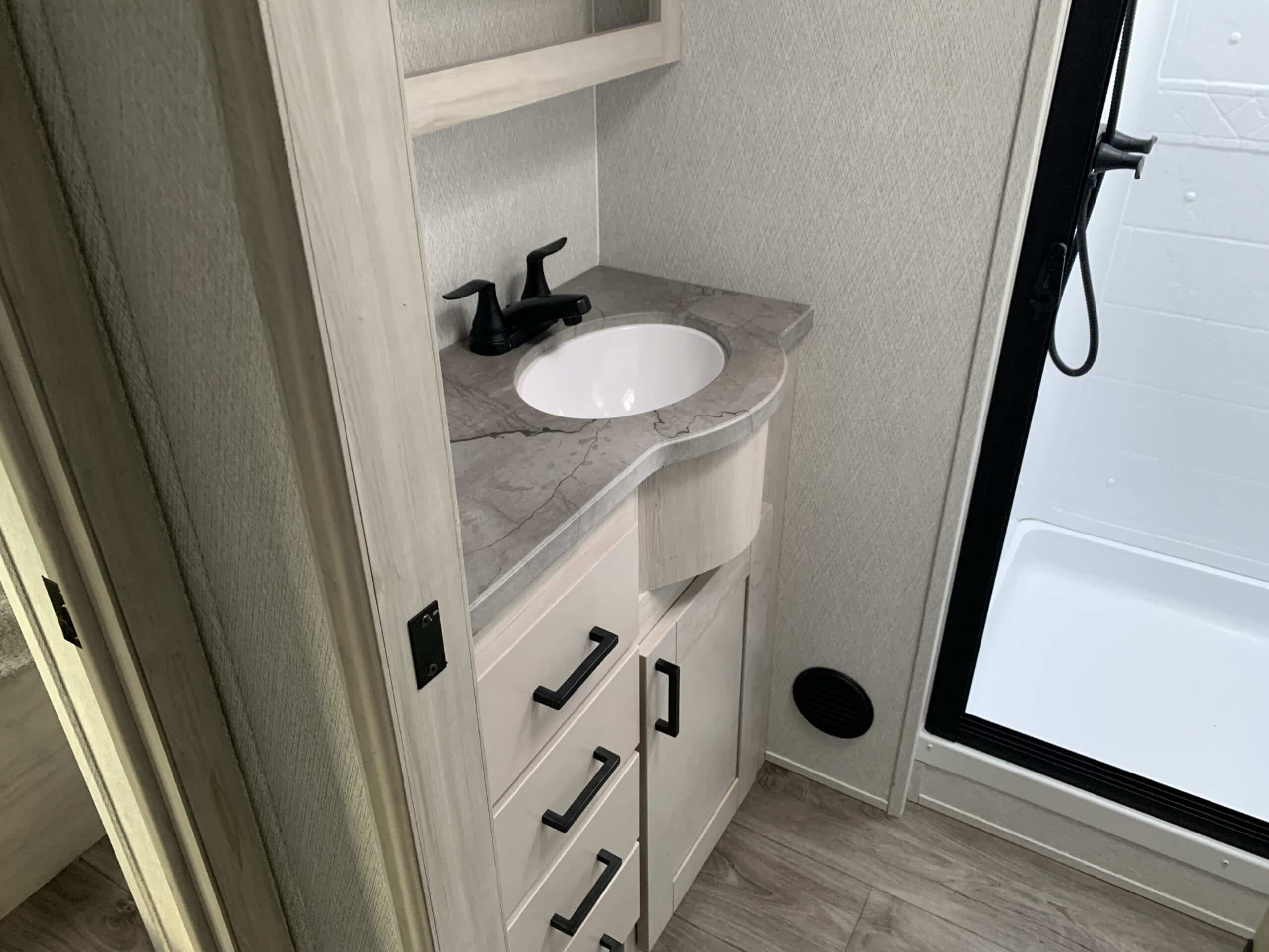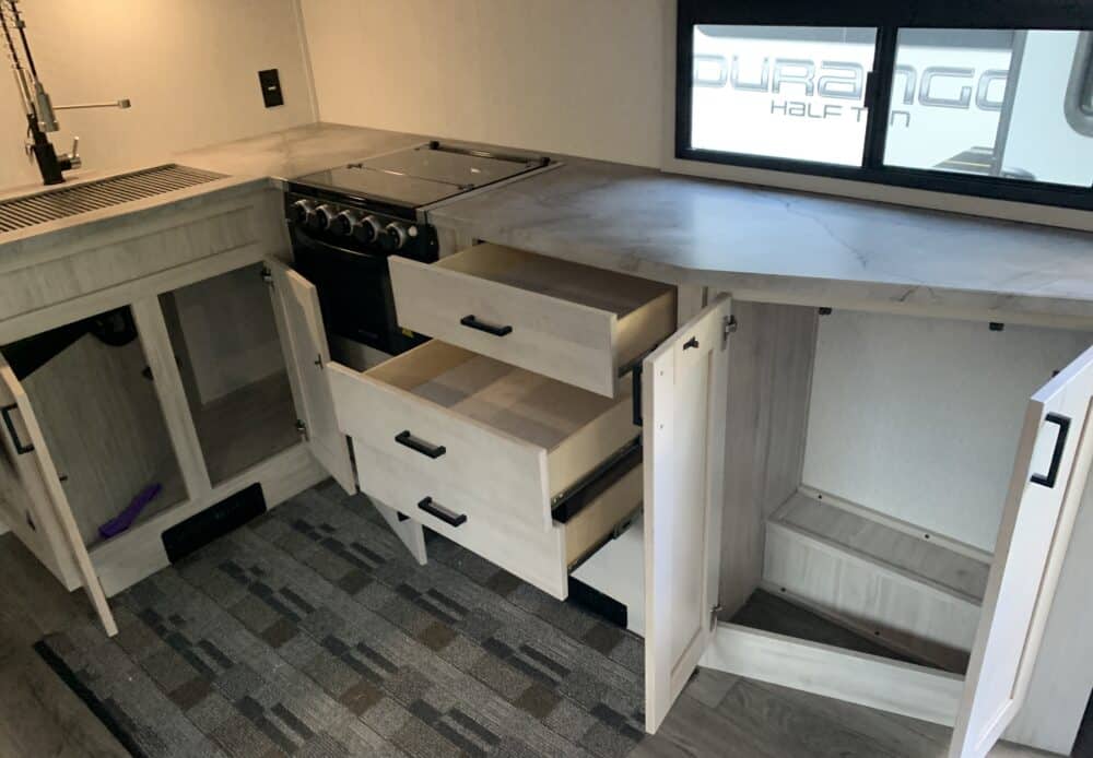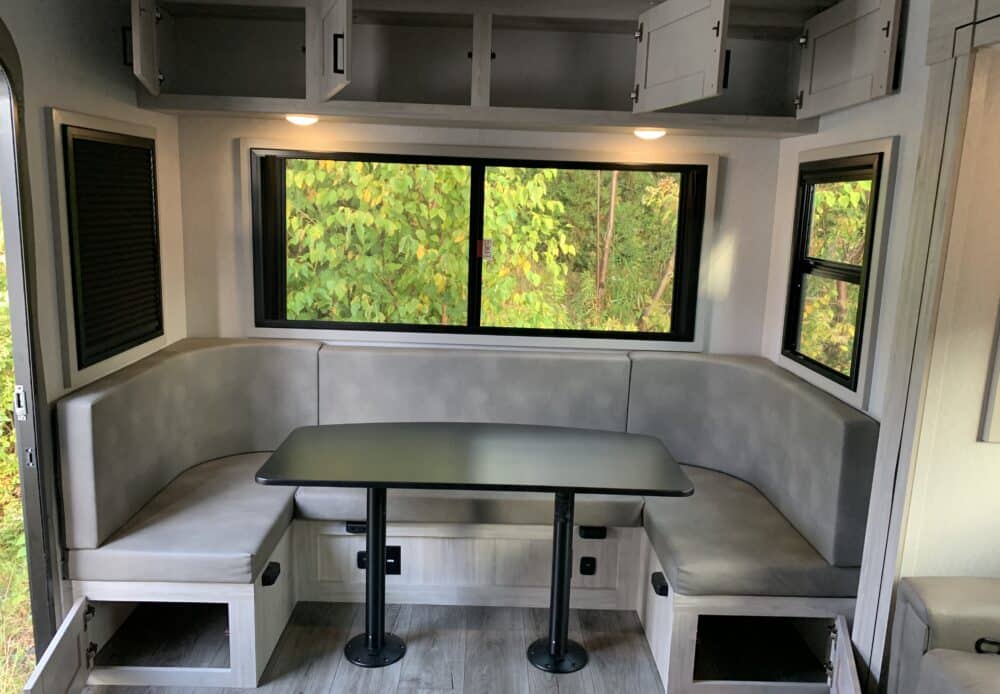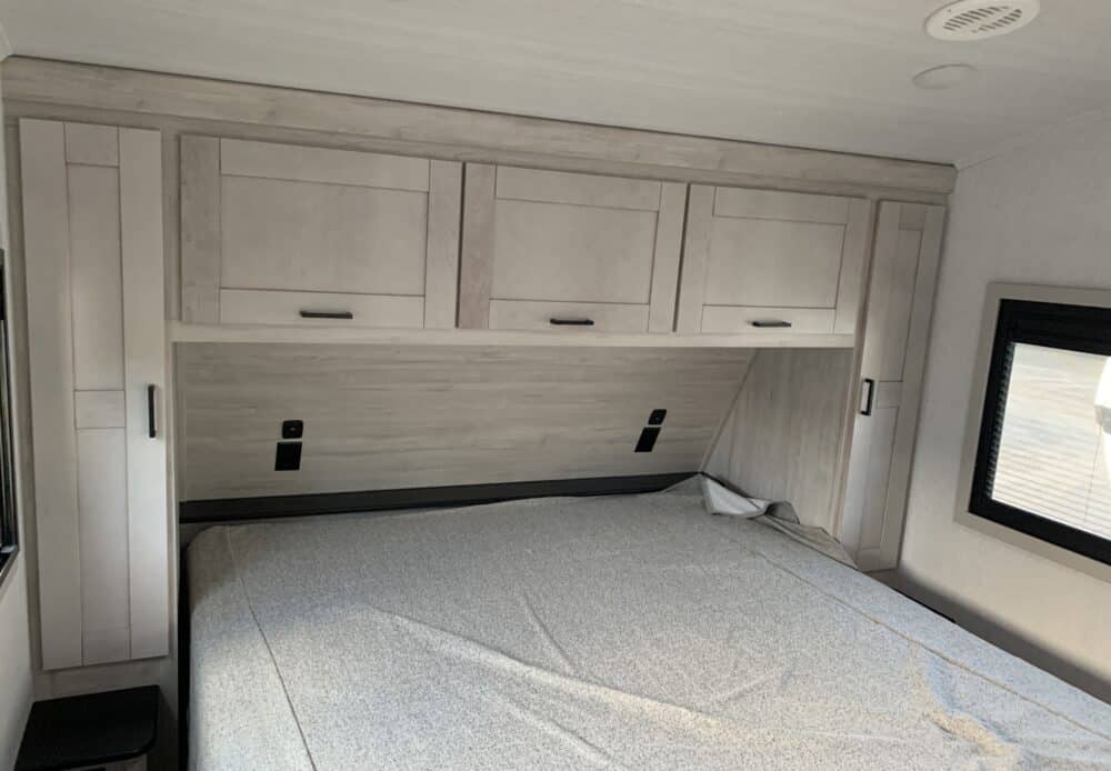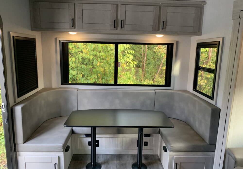 De plus, la Blackthorn 26RD a un air climatisé de 15000 btu. qui tempérera l’ambiance désirée. Par ailleurs, la cuisine a un poêle avec dessus en verre, un frigo 10 p.c. 12 volts, un grand évier et un garde-manger. Une table avec banquette en U et un sofa inclinable complètent l’aménagement. Enfin, le système audio vous permettra d’écouter votre musique préférée.