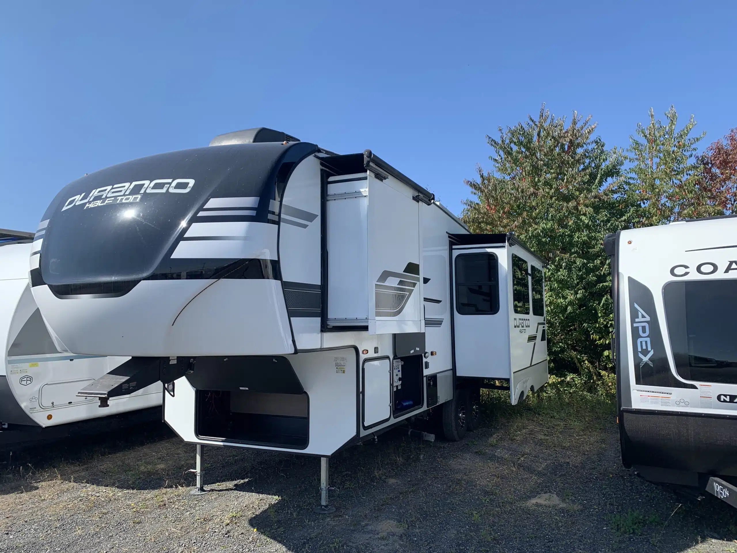 De plus, la Durango 240RKD a un air climatisé de 15000 btu qui tempérera l’ambiance désirée. Par ailleurs, la cuisine a un micro-ondes, un poêle avec dessus en verre et un réfrigérateur 12p.c. Le garde-manger donne accès à plus de rangement. Aussi, il y a une table avec banquette et une causeuse inclinable. Enfin, le système audio vous permettra d’écouter votre musique préférée.