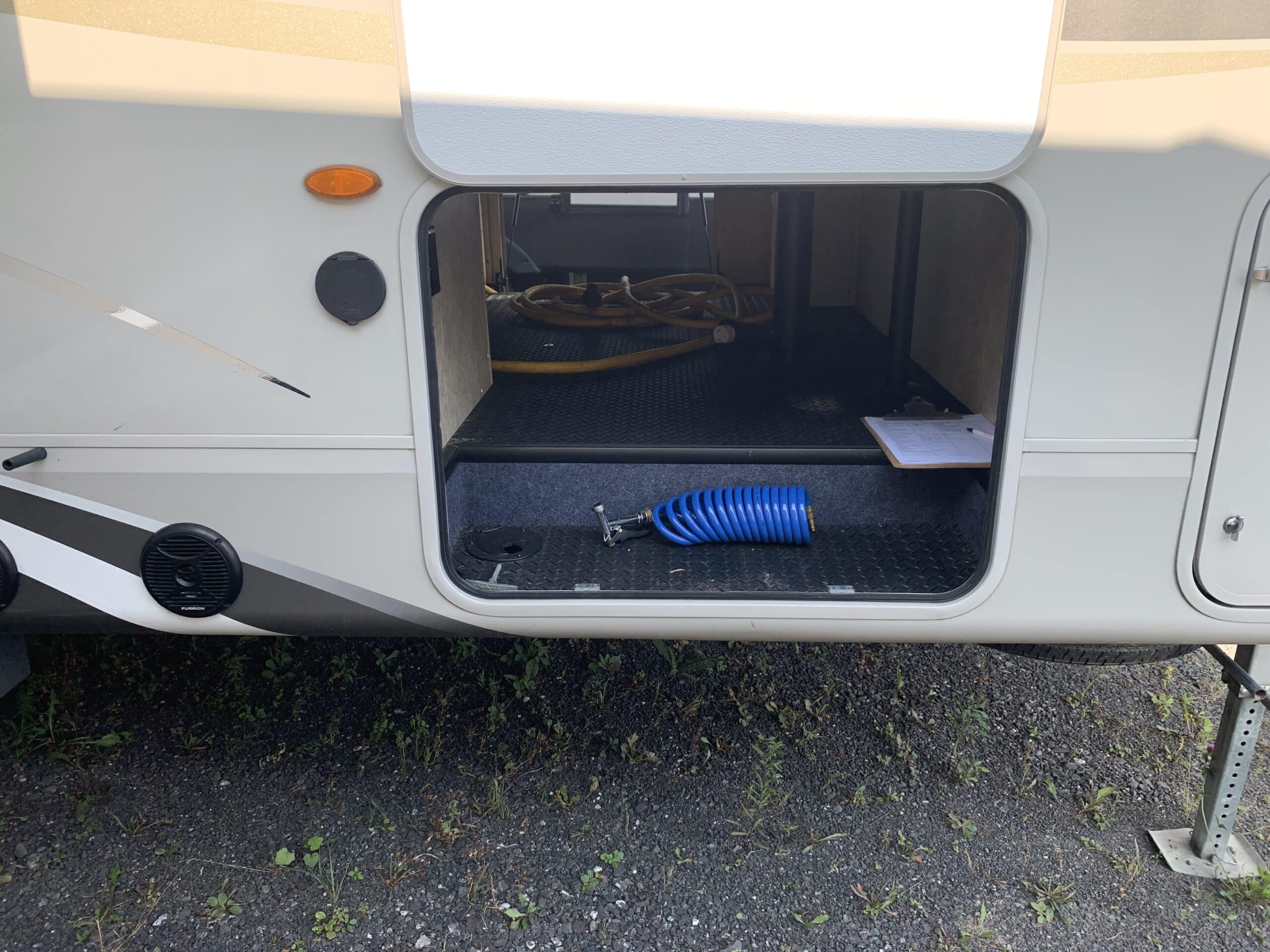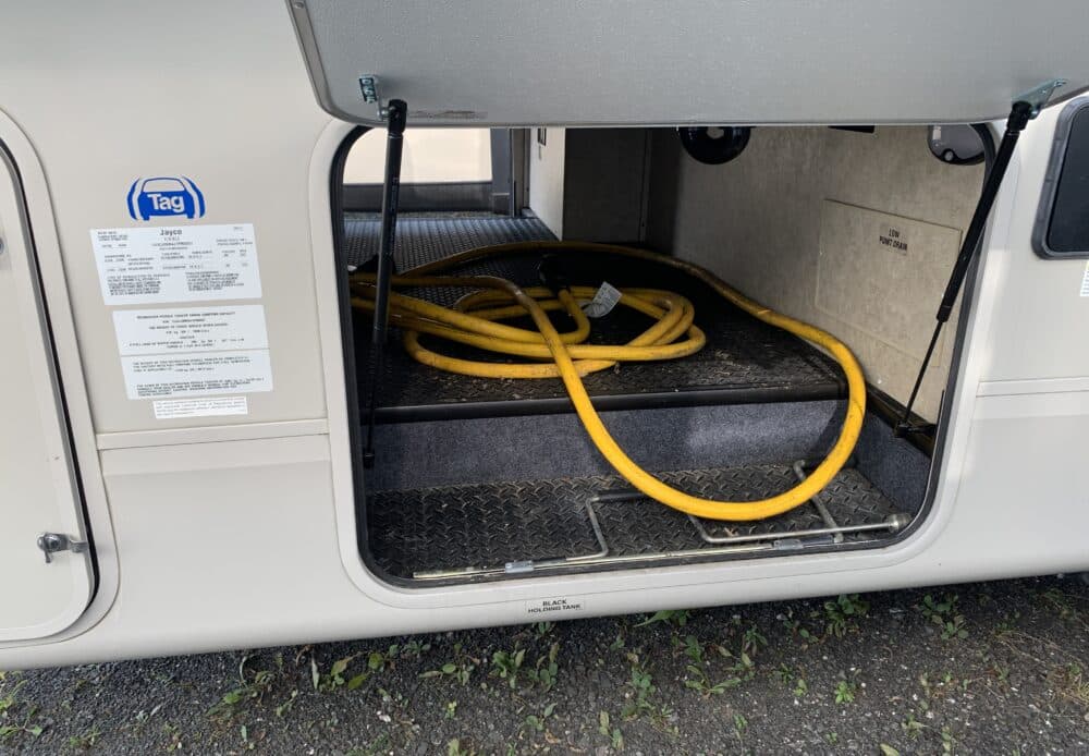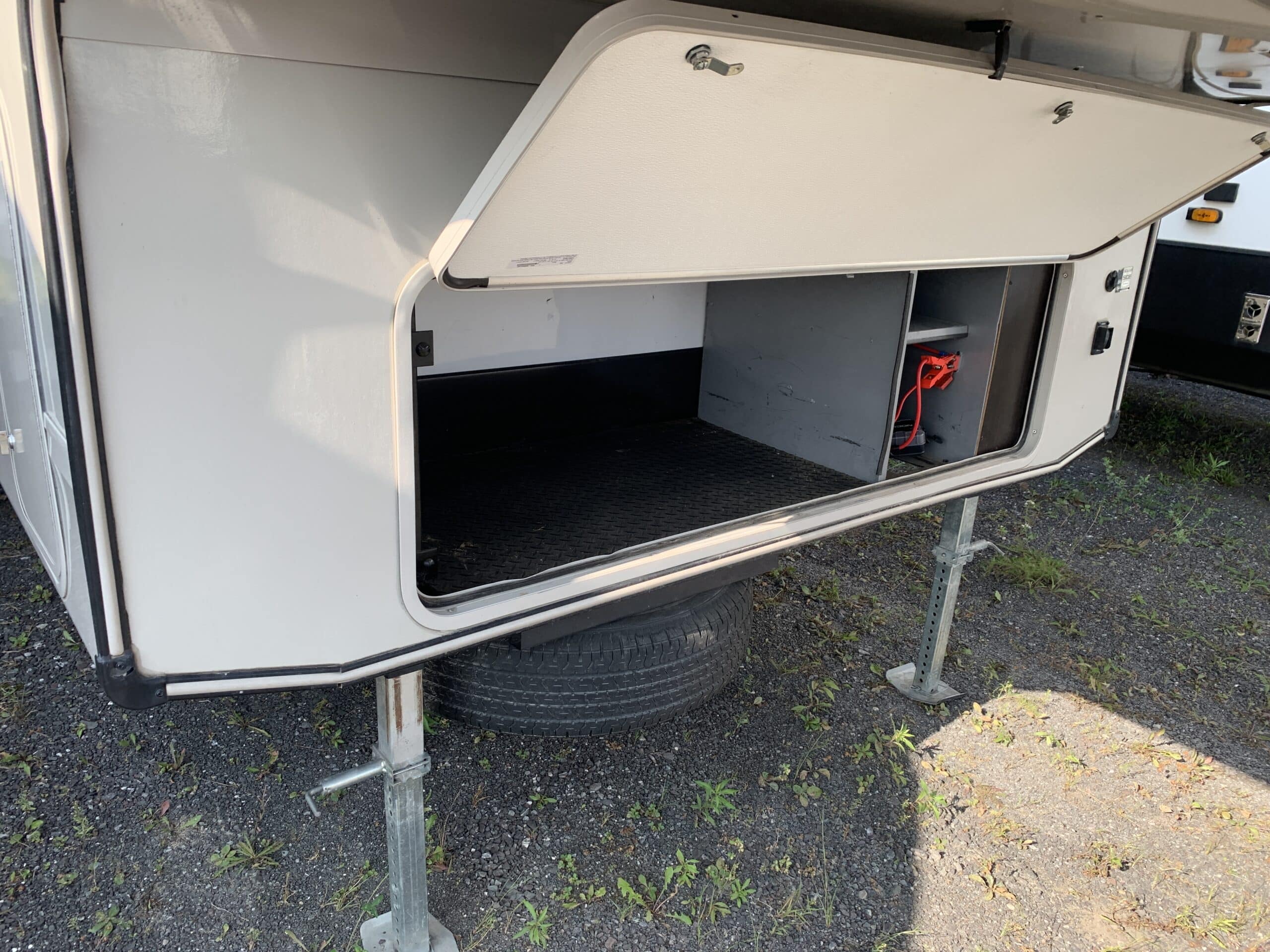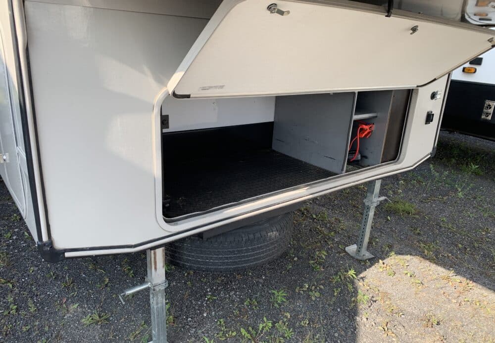 D’abord, cette roulotte a un auvent pour profiterez de l’extérieur sans soucis. Les coffres ont un bel espace de rangement.