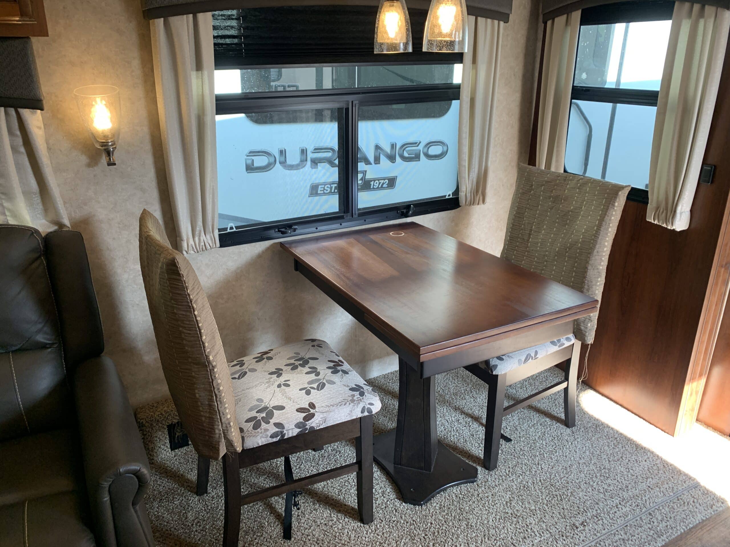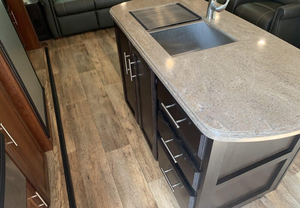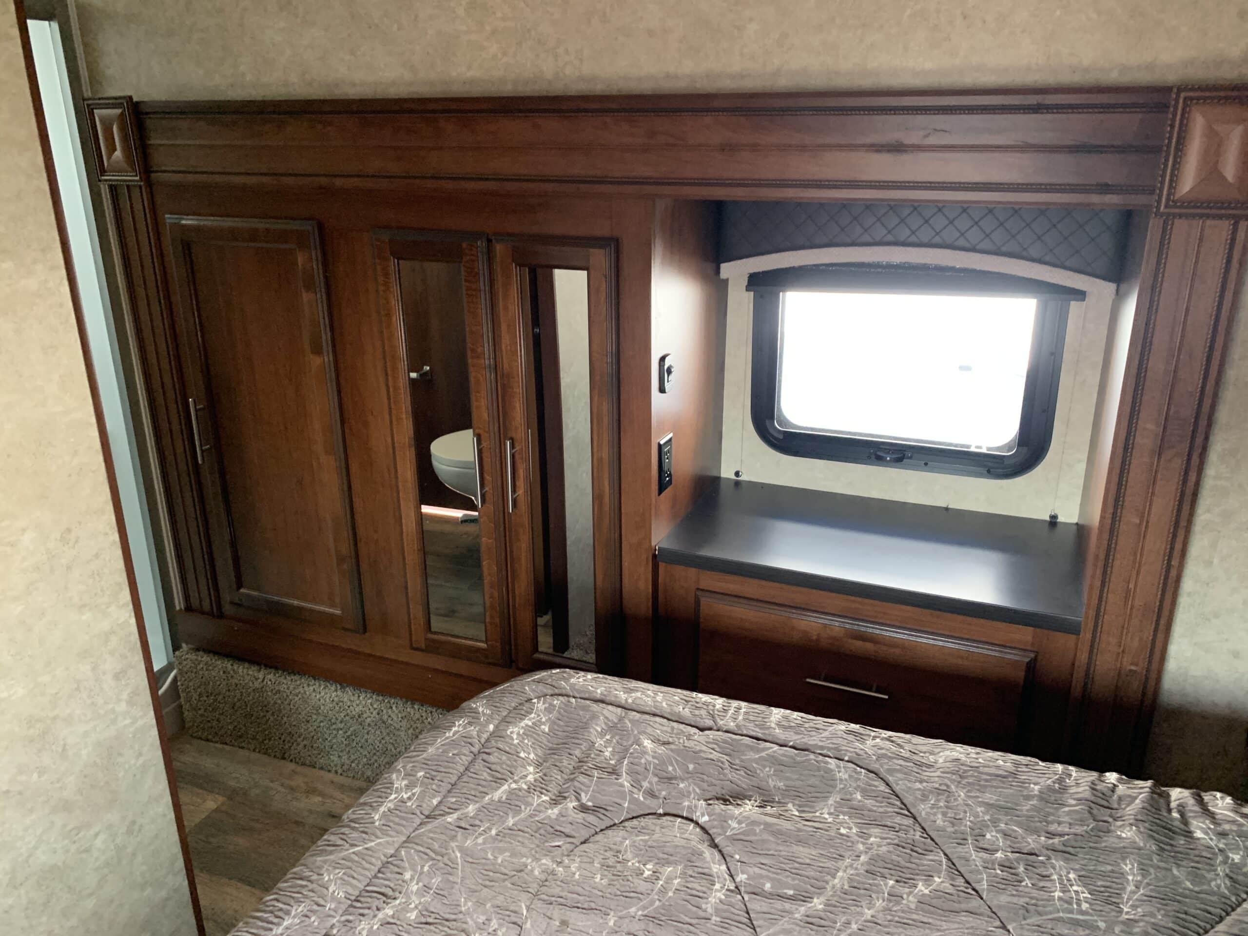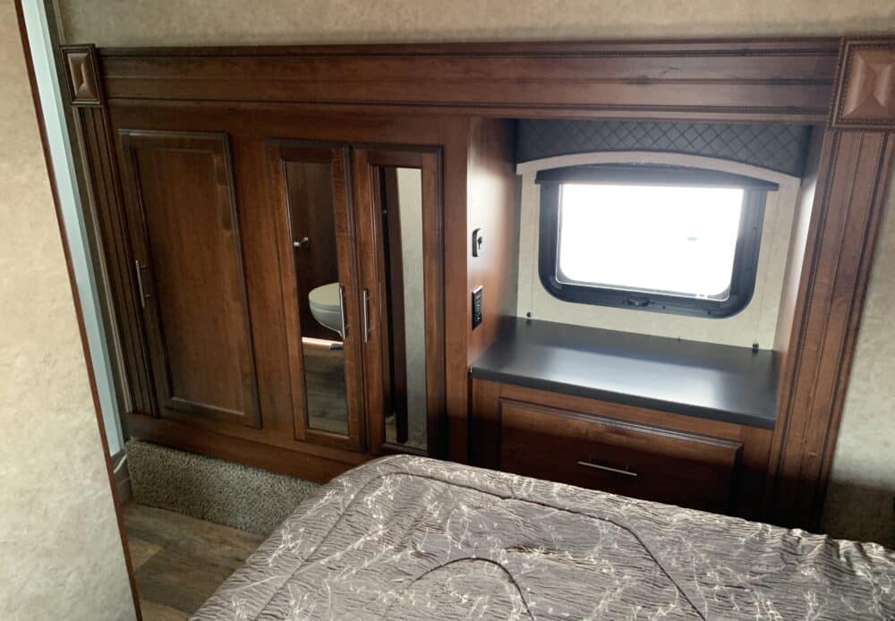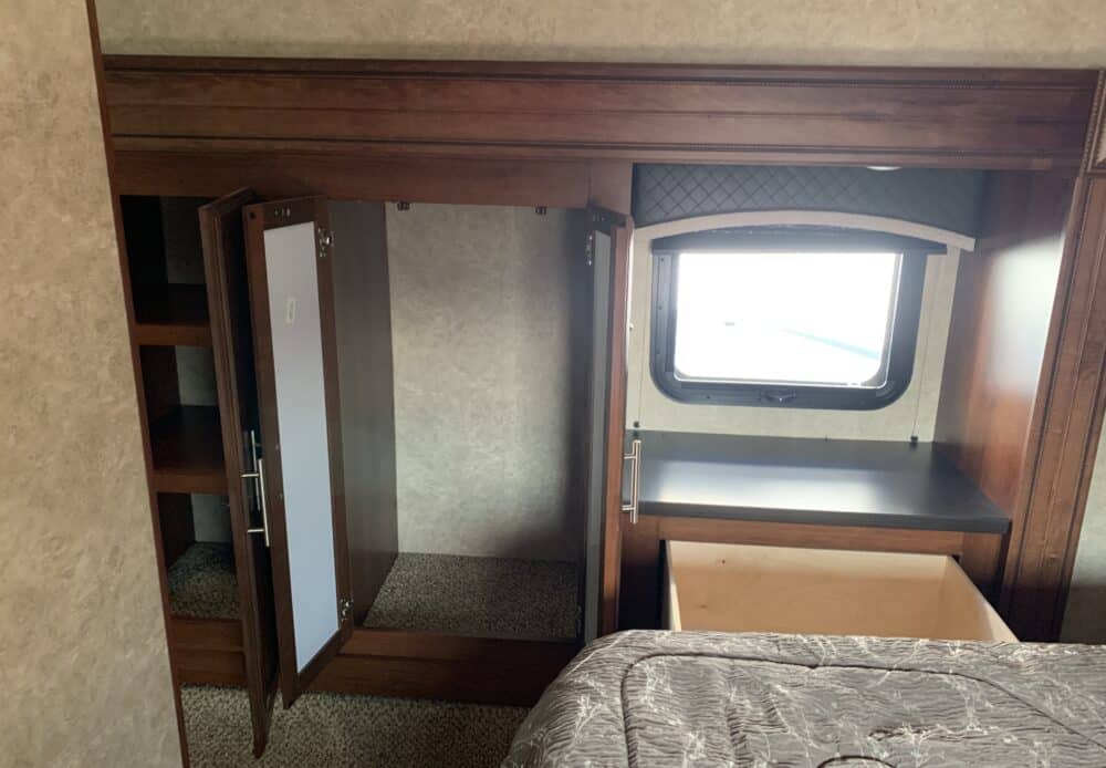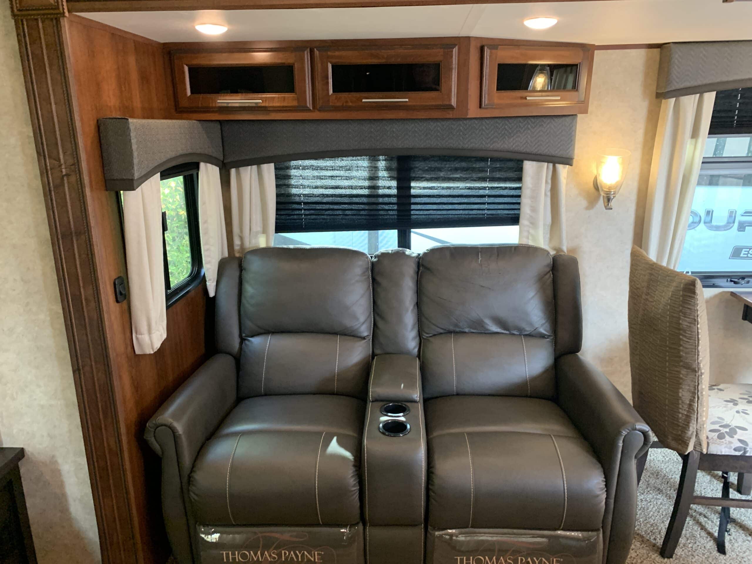 De plus, la Jayco 28.5R a un air climatisé de 15000 btu et un foyer qui tempéreront l’ambiance désirée. Par ailleurs, la cuisinière a un four et 3 brûleurs, un réfrigérateur gaz/électrique et un micro-ondes. De plus, il y a une table avec chaises, un sofa lit et une causeuse. Enfin, le système audio vous permettra d’écouter votre musique préférée.