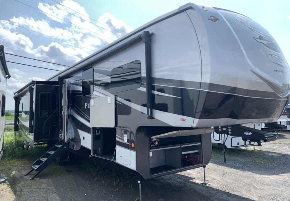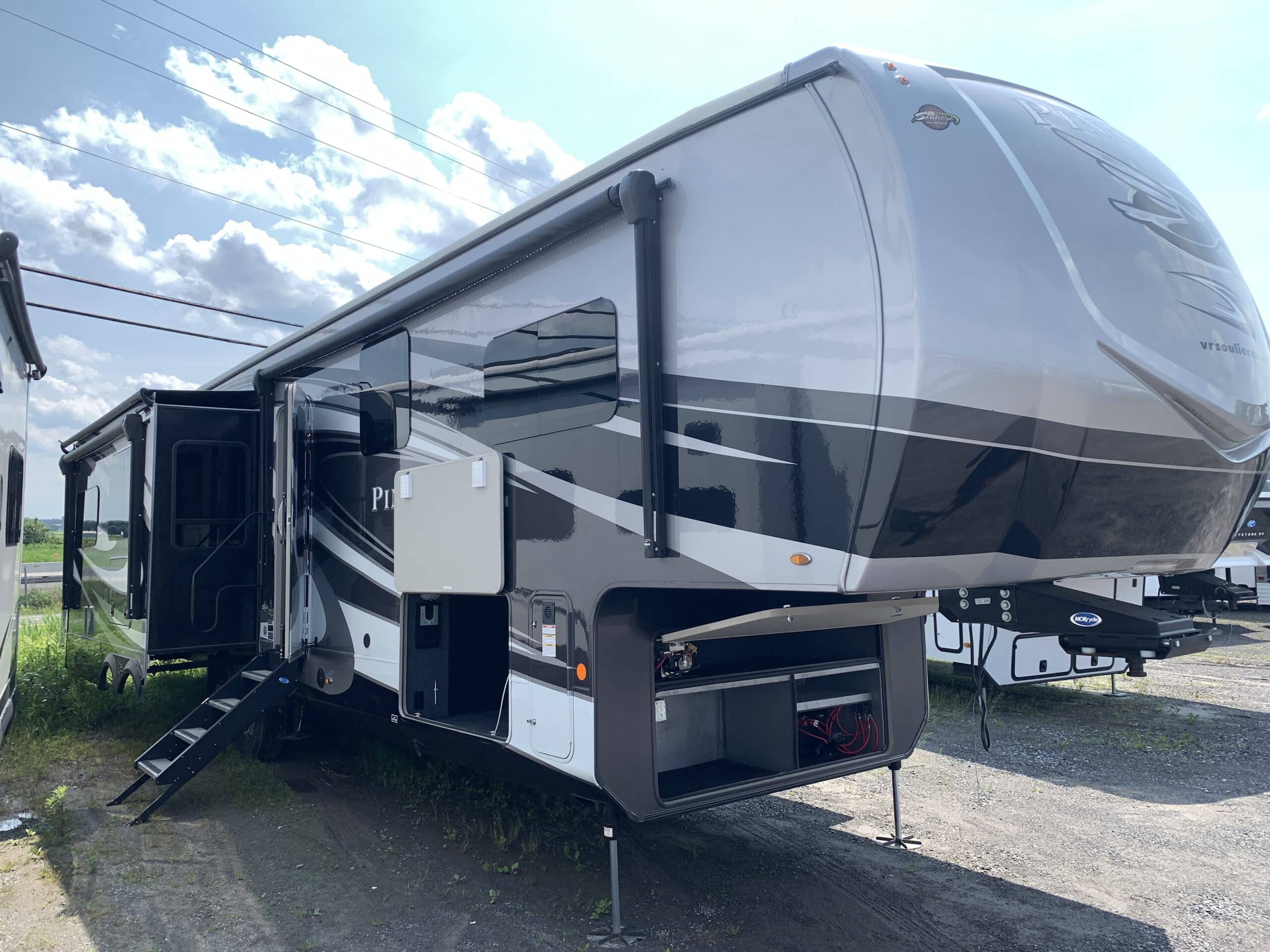 2020 Pinnacle 36PKTS, roulotte à sellette pour couple de 42 pieds à 14346 lbs, avec 2 essieux, extérieur en fibre et 3 extensions.