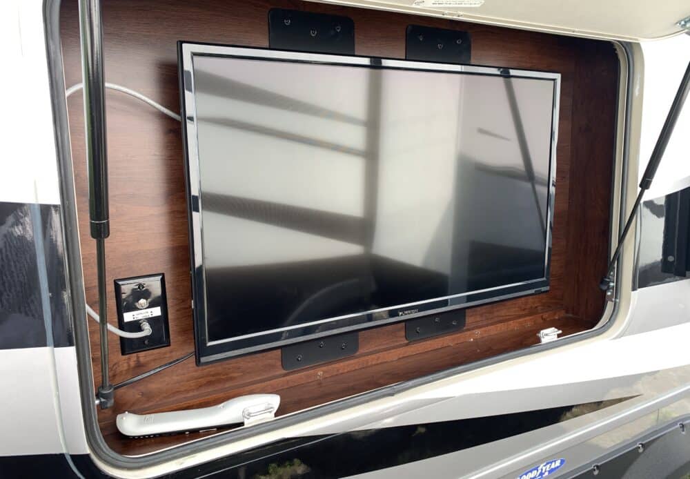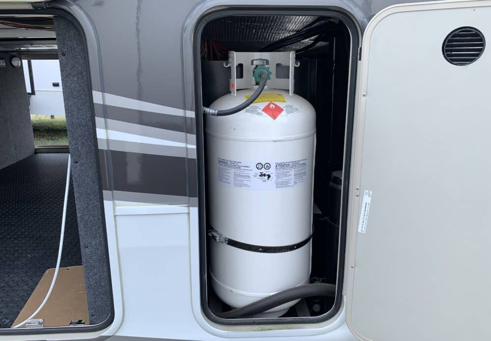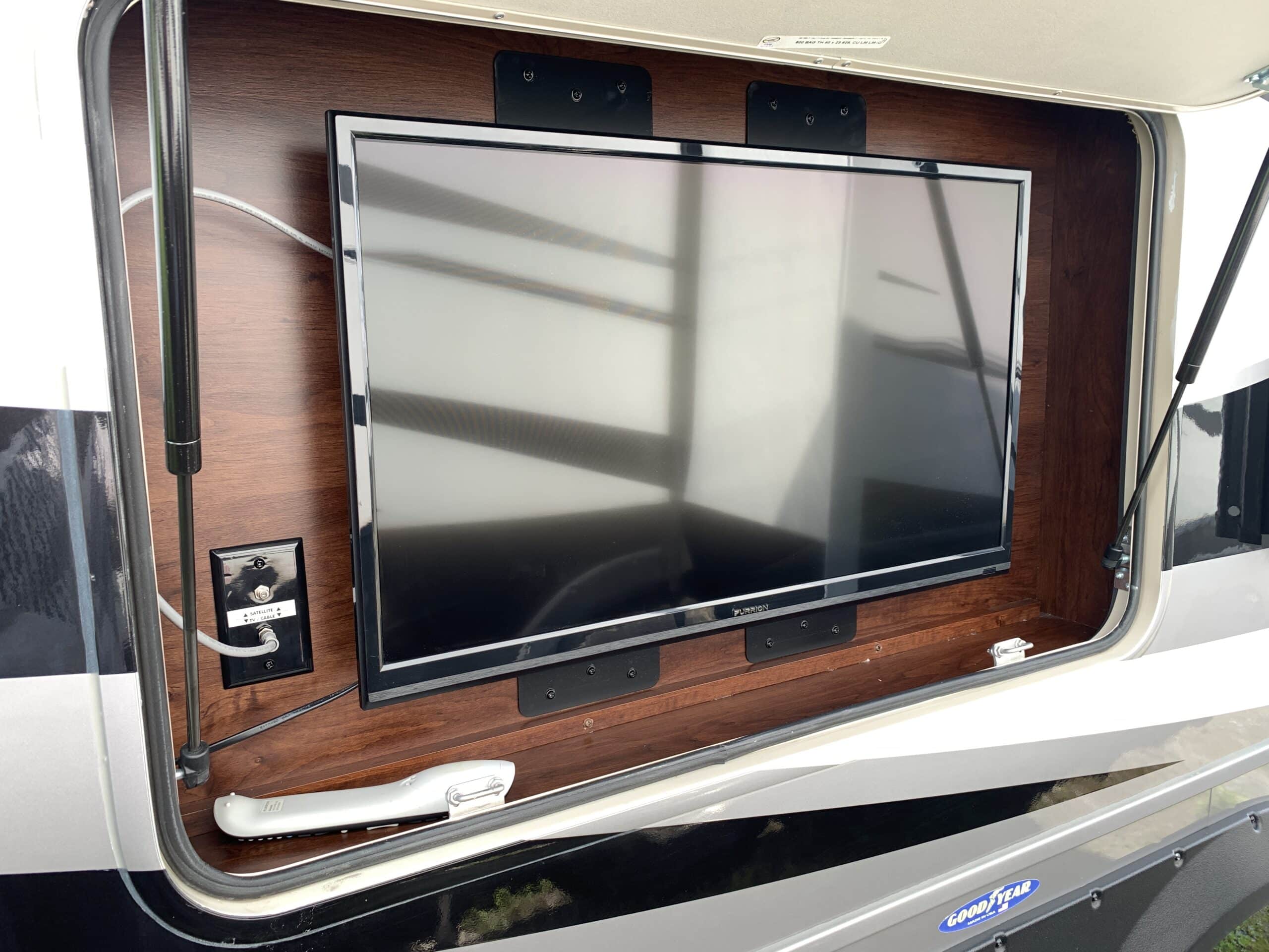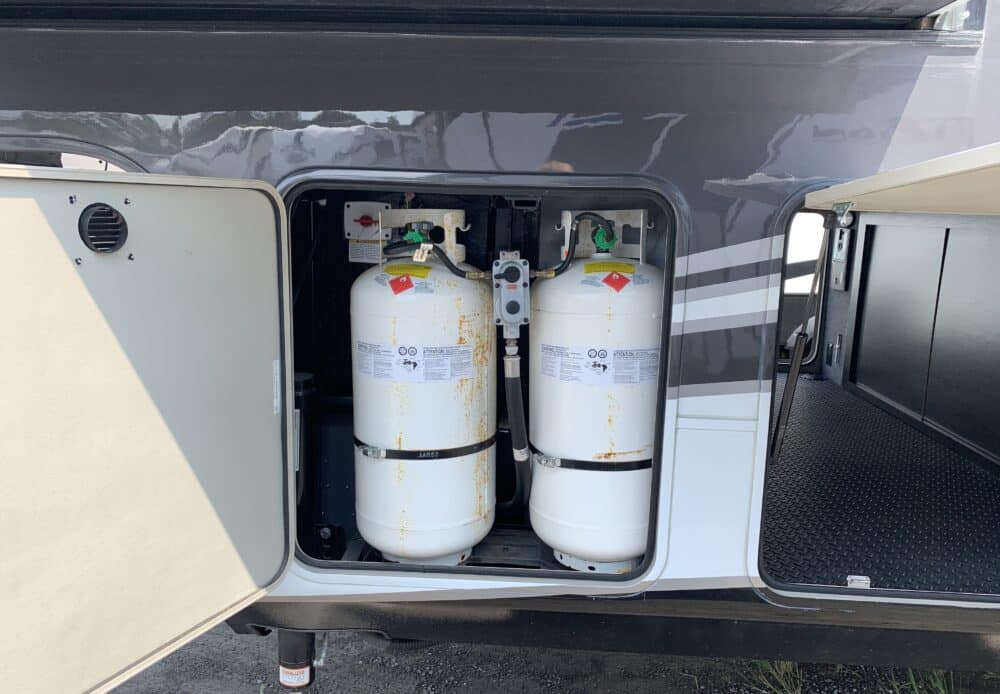 D’abord cette roulotte a 2 auvents de 11 et 18 pieds et une douche pour profiter de l’extérieur sans soucis. Puisque ses marches sont ajustables et très stables vous aurez un accès facile à l’intérieur. Ensuite, elle est muni d’une échelle pour l’accès au toit. De plus une prise 50 ampères pour une meilleure qualité de courant. Les coffres ont un bel espace de rangement.