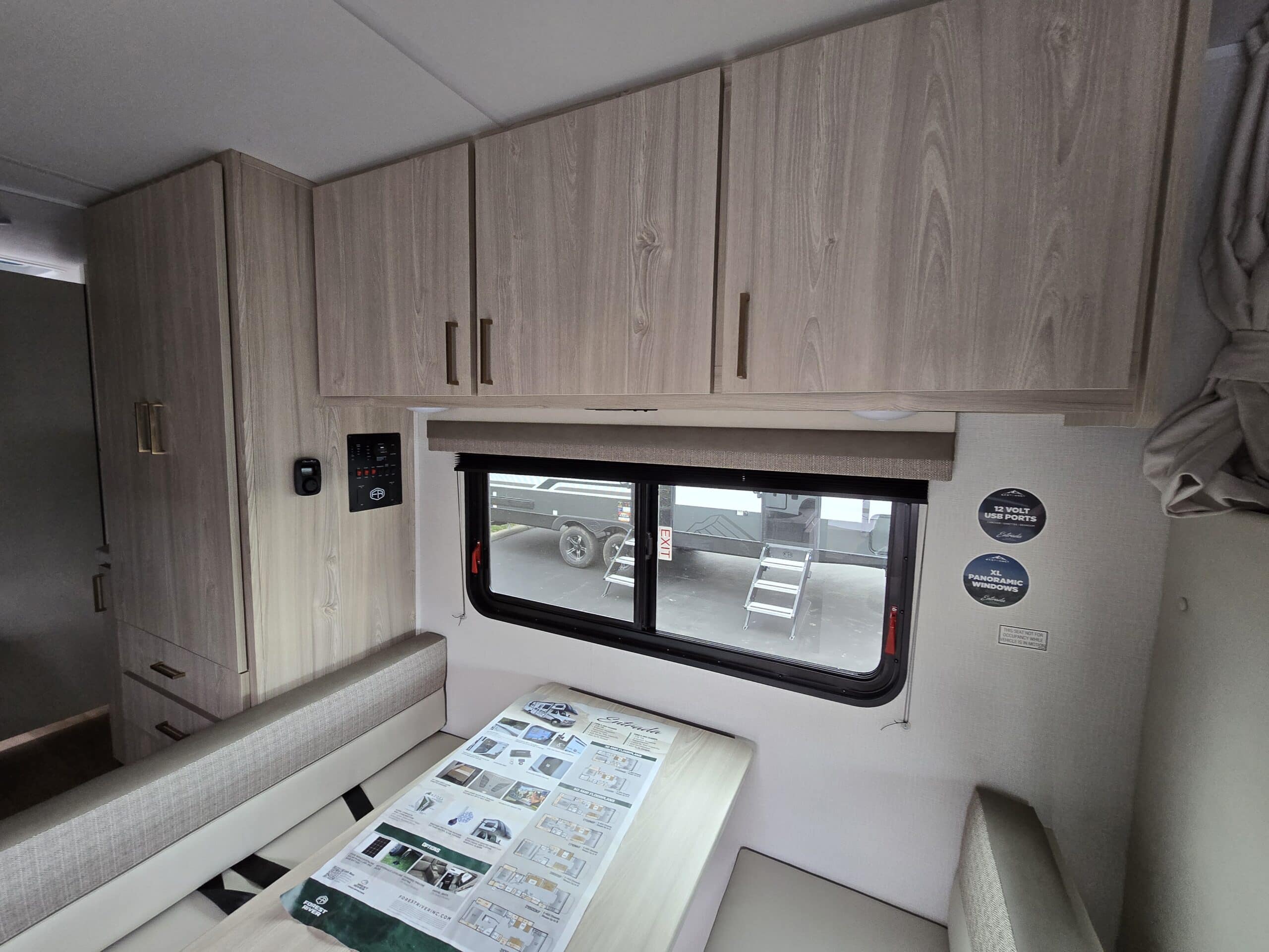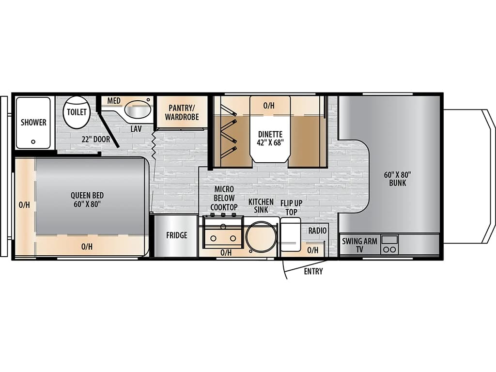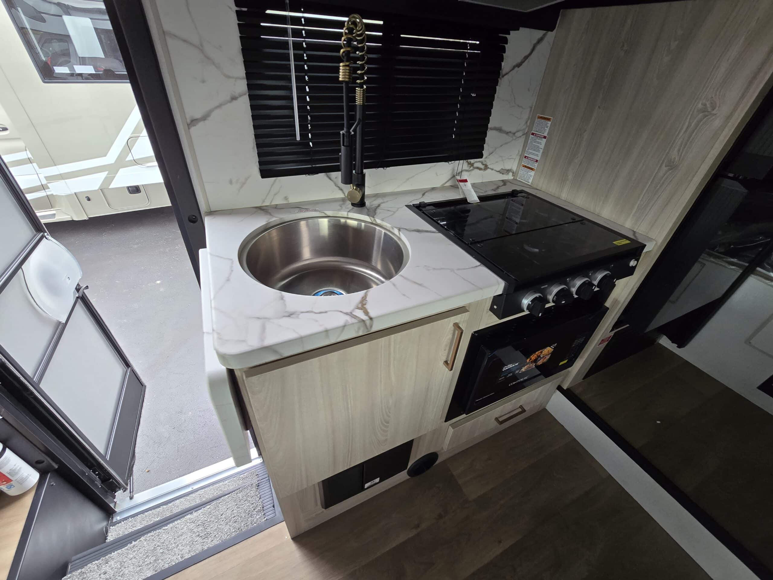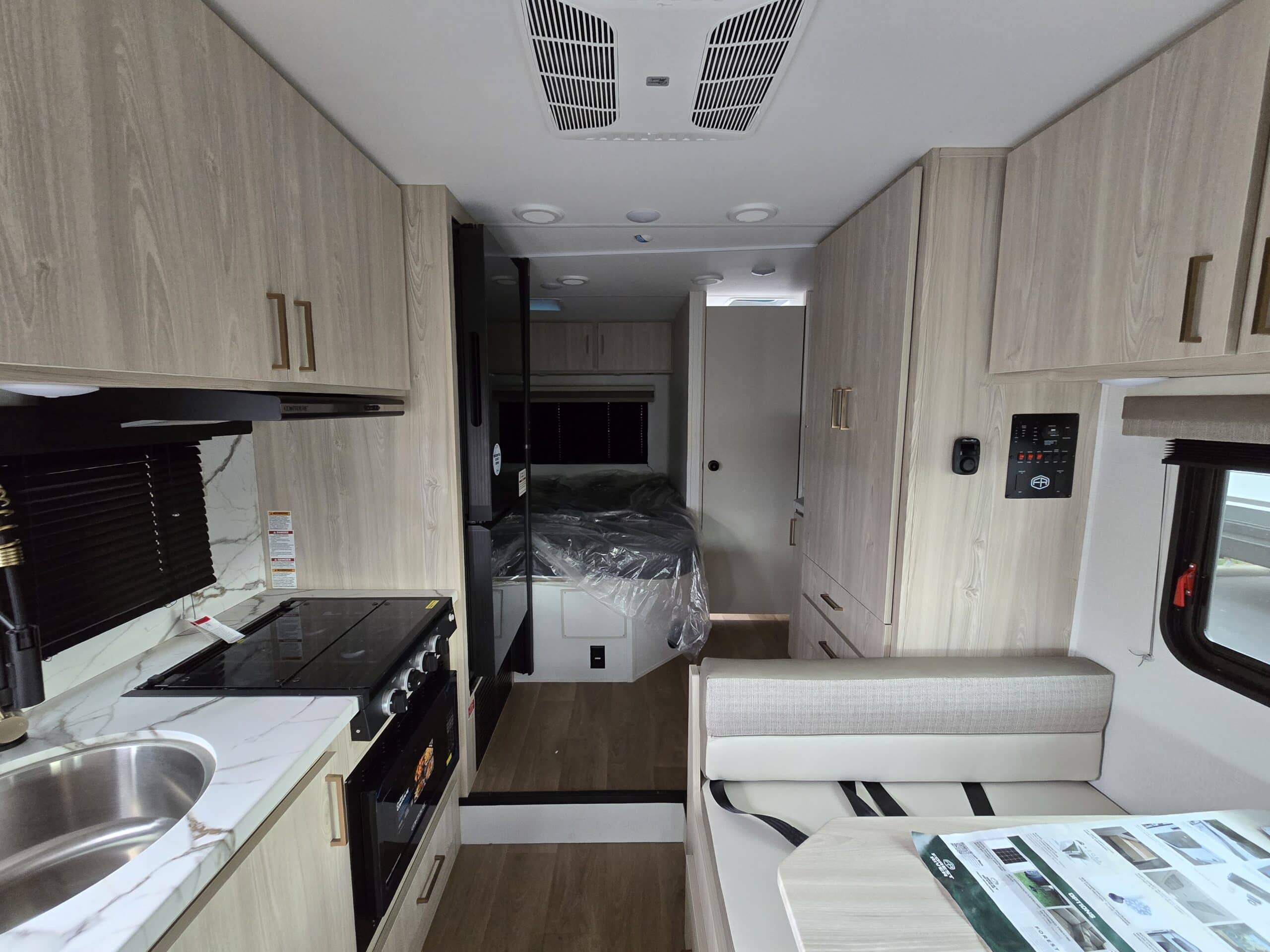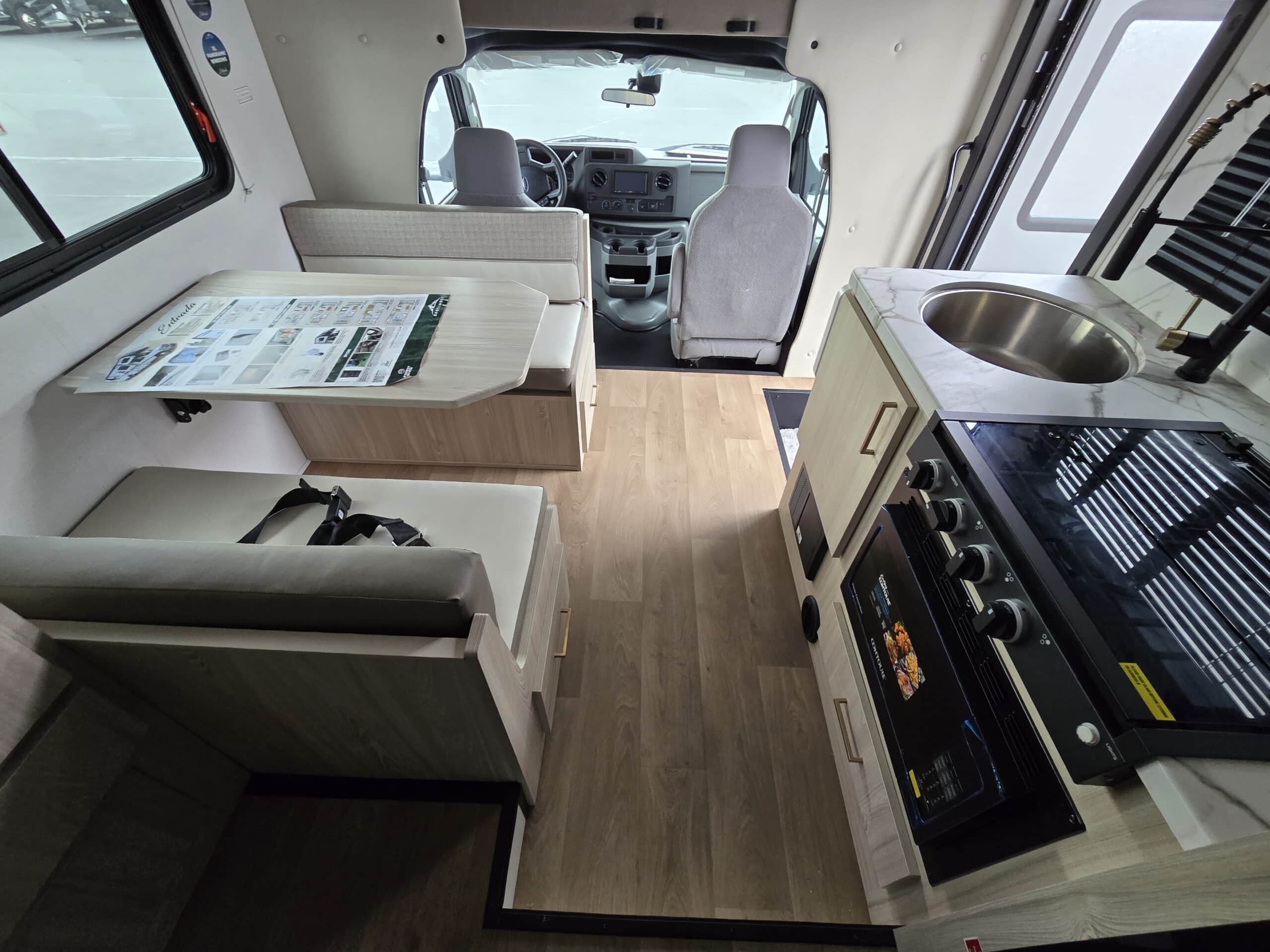 Le 2026 EST À OUEST Entrada 2000NS est une Camping-car à essence de classe C fabriqué par East to West (une marque de Forest River)La désignation « 2000NS » fait référence à un plan d’étage spécifique sans glissière (NS) conçu pour l’agilité et la facilité d’utilisation, mesurant environ 24′ 5″ de longueur. Caractéristiques et points forts clés Le modèle 2026 est construit sur un châssis Ford E-350 et dispose d’un intérieur spacieux avec une hauteur sous plafond de 2,13 mètres. Capacité de couchage : Peut accueillir jusqu’à 6 personnes grâce à un lit queen-size à l’arrière et une couchette de 60″ x 80″ au-dessus de la cabine. Cuisine : Équipée d’un réfrigérateur 10,7 pi³ 12 V, d’un four à micro-ondes à convection avec technologie de friteuse à air et d’un comptoir rabattable. Durabilité : Construit avec des parois latérales en composite Azdel de 2 pouces, une membrane de toit en TPO et un capot avant monobloc en fibre de verre peinte. Confort : Comprend un générateur de 4 500 watts, un chauffe-eau sans réservoir et une télévision intelligente 12 V.