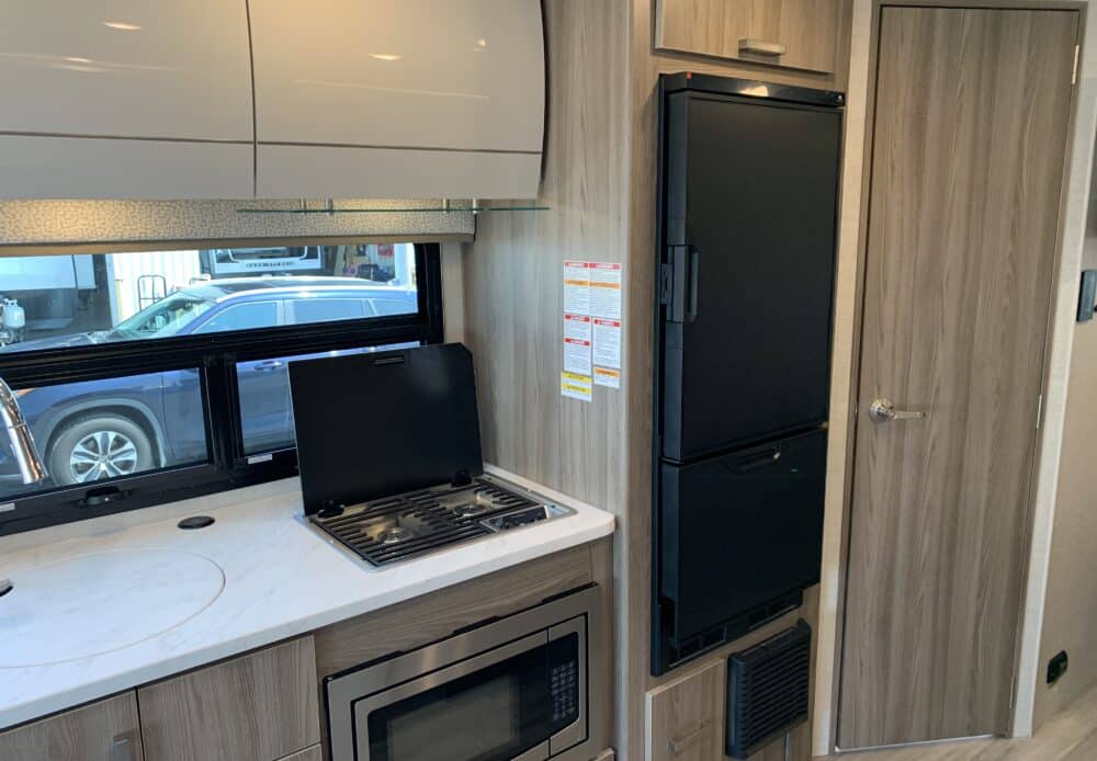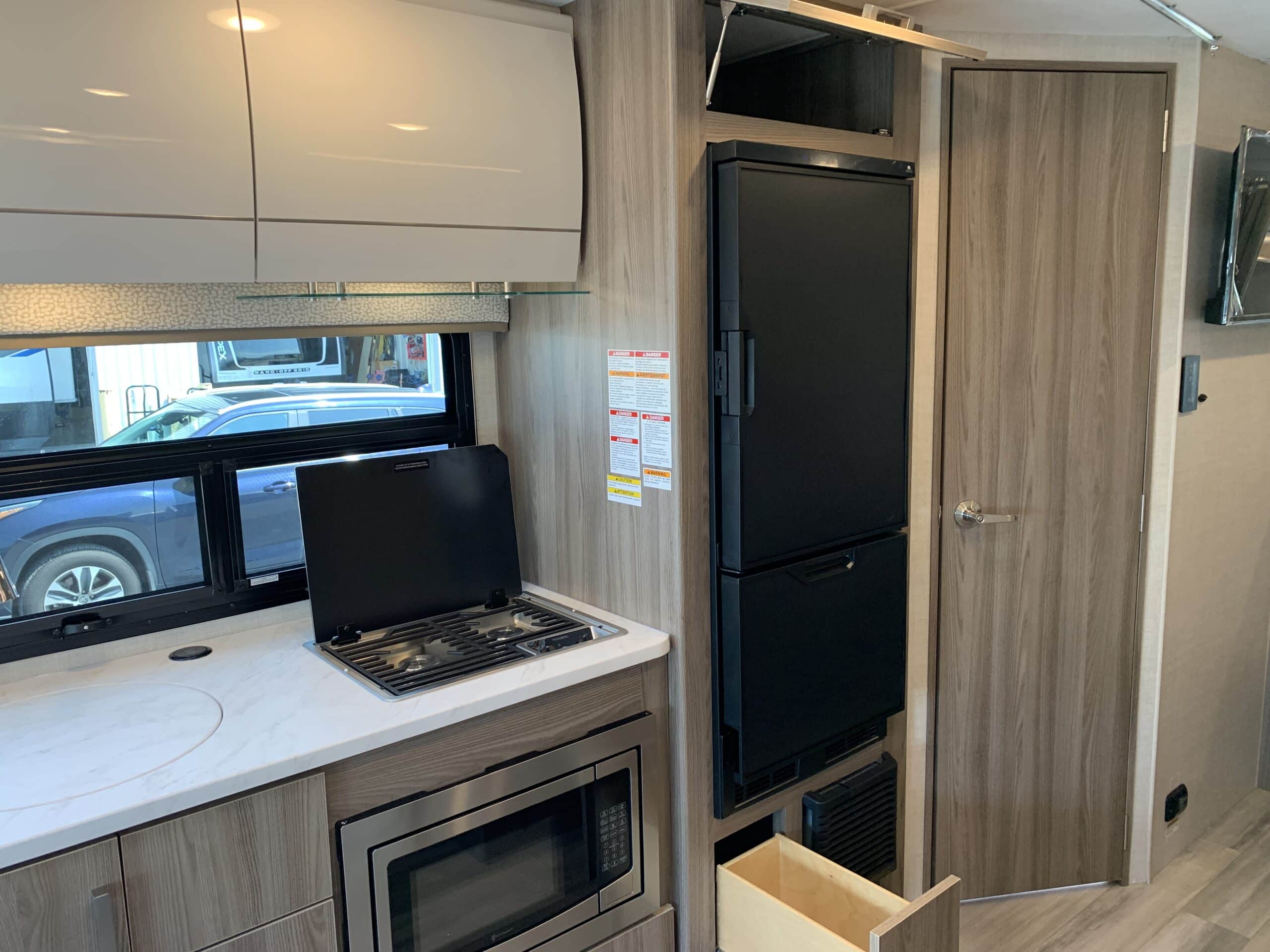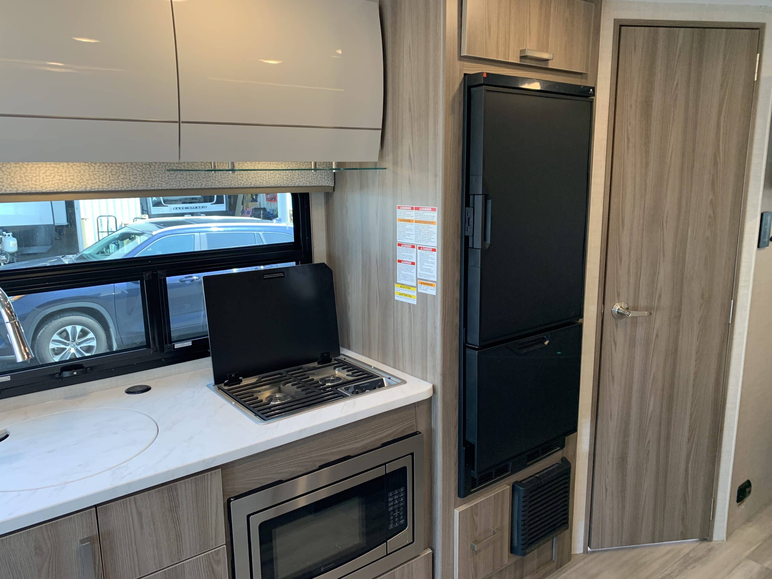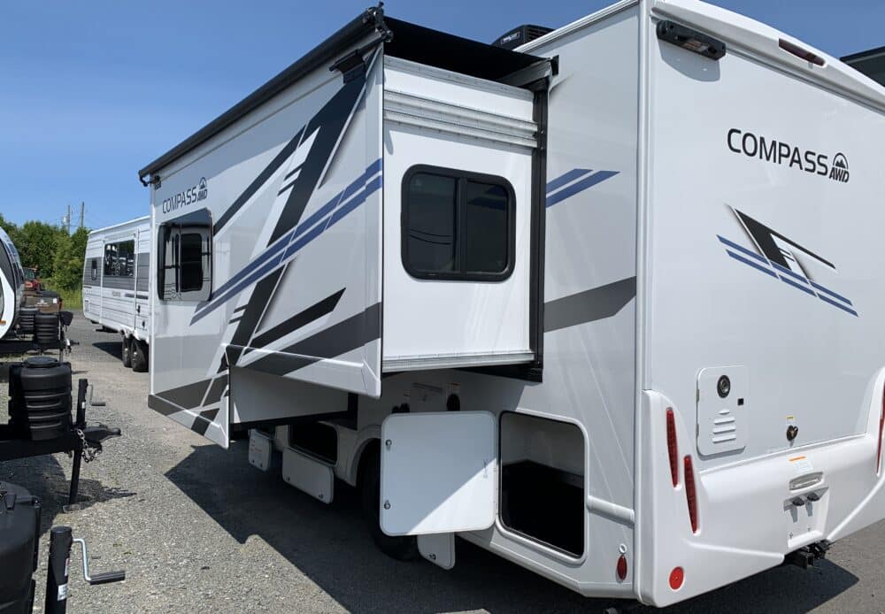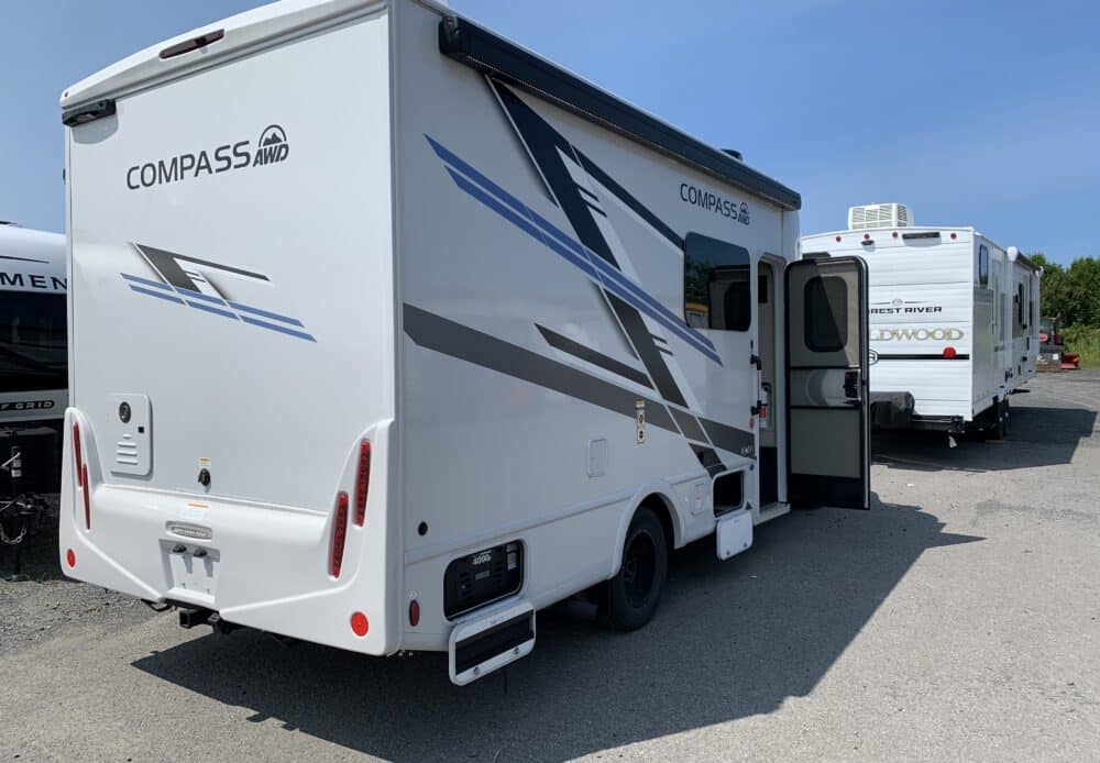 De plus, le Compass 23TW a un air climatisé qui tempérera l’ambiance désirée. Aussi, la cuisine a 2 brûleurs, un micro-ondes à convection et un réfrigérateur 12 volts. Enfin, une radio, vous permettront de relaxer.
