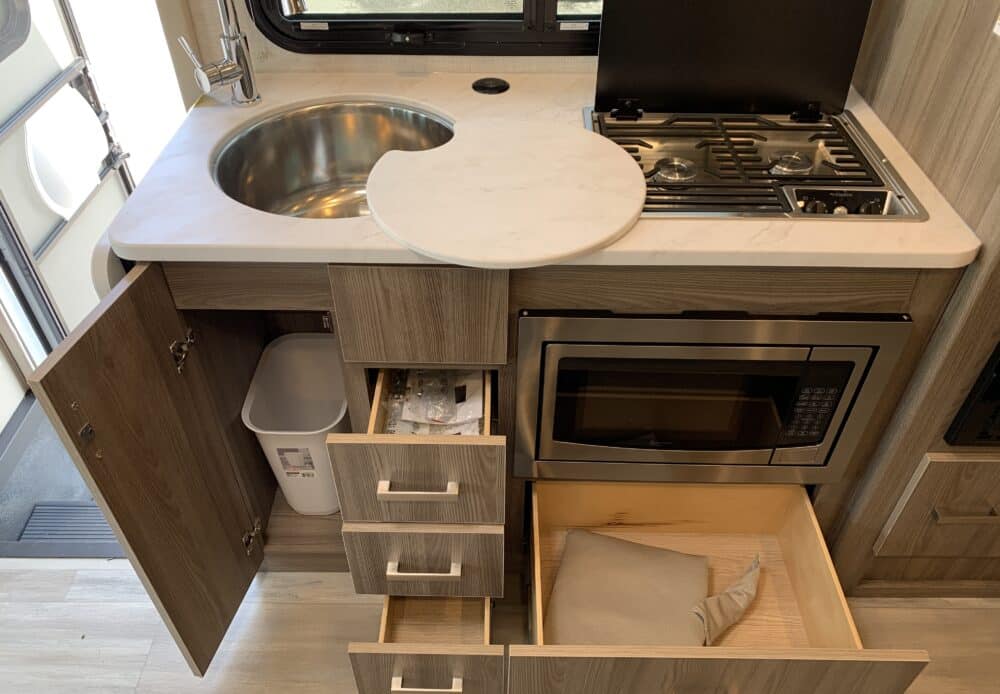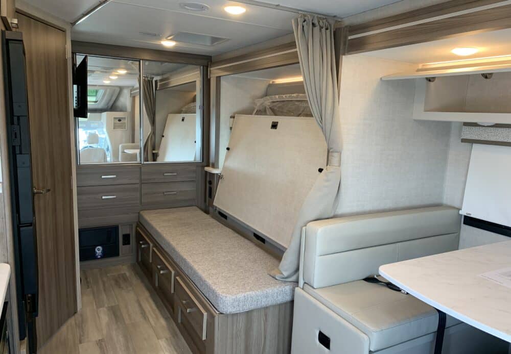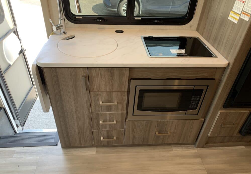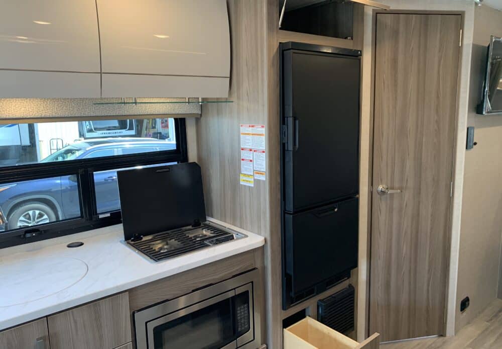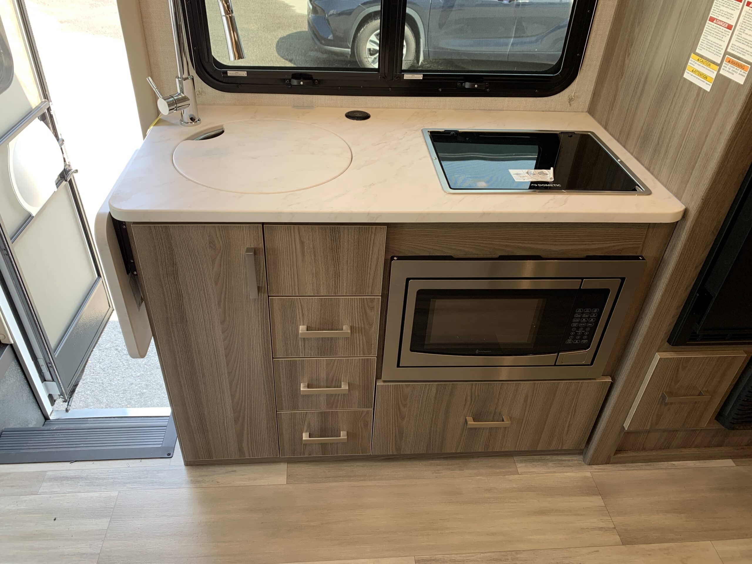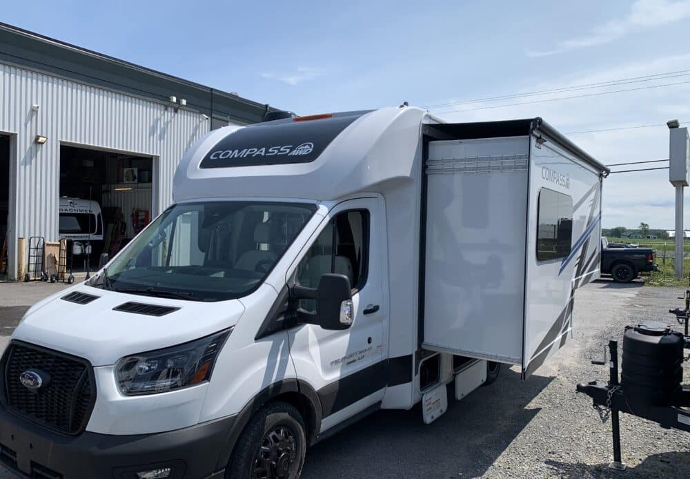 De plus, le Compass 23TW a un air climatisé qui tempérera l’ambiance désirée. Aussi, la cuisine a 2 brûleurs, un micro-ondes à convection et un réfrigérateur 12 volts. Enfin, une radio, vous permettront de relaxer.