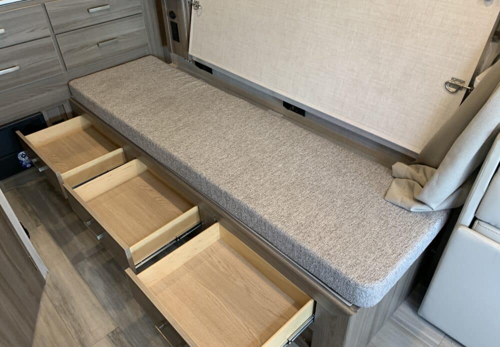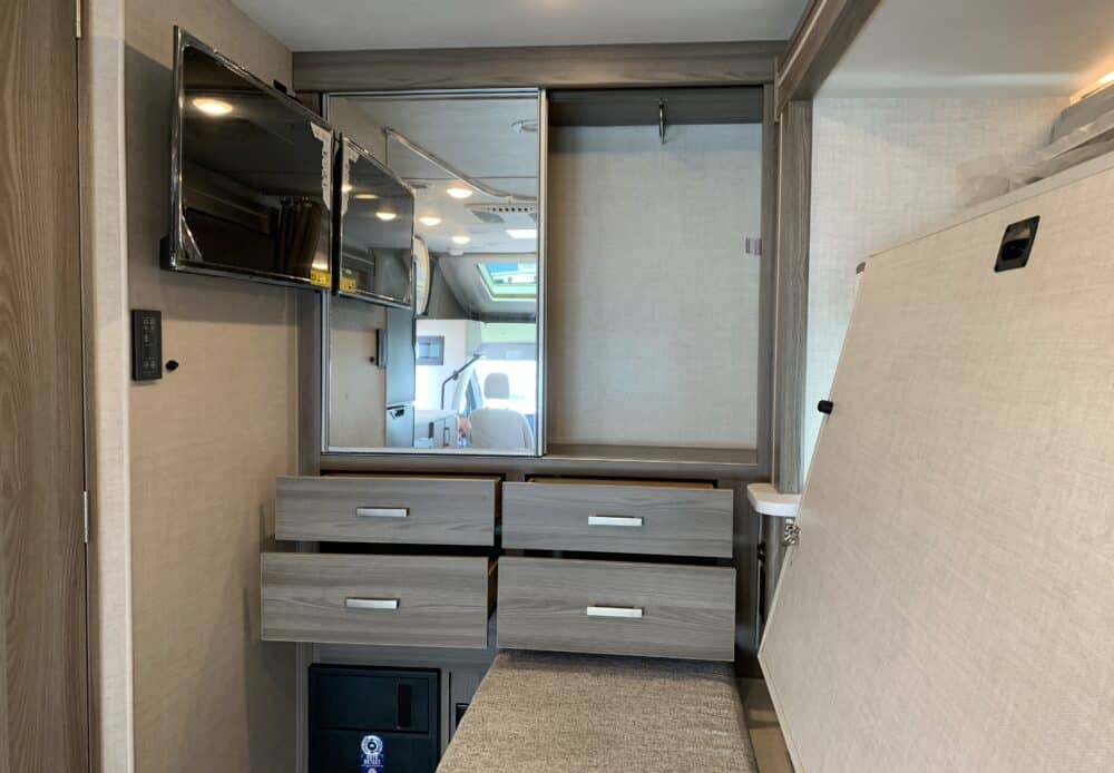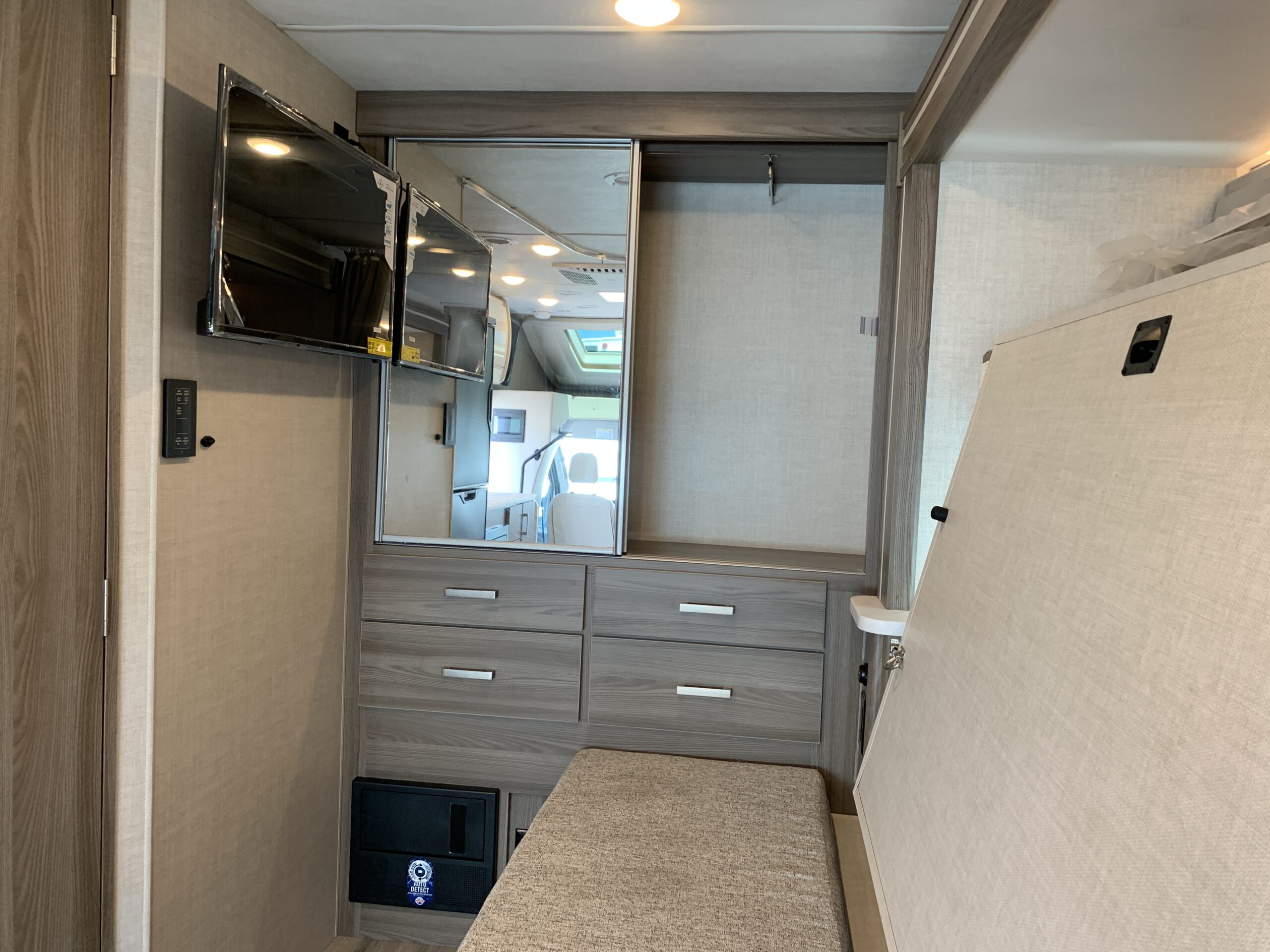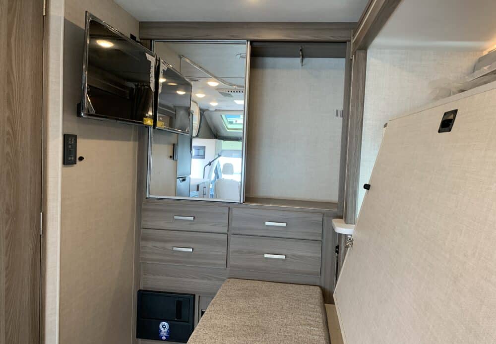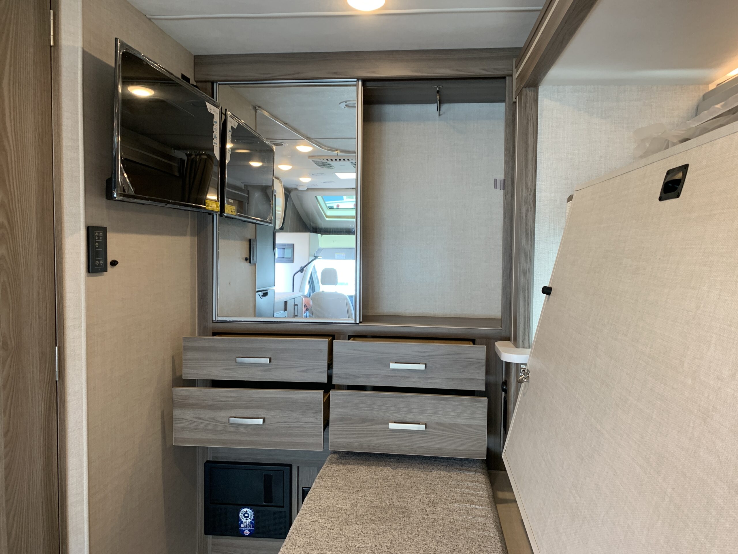 De plus, le Compass 23TW a un air climatisé qui tempérera l’ambiance désirée. Aussi, la cuisine a 2 brûleurs, un micro-ondes à convection et un réfrigérateur 12 volts. Enfin, une radio, vous permettront de relaxer.