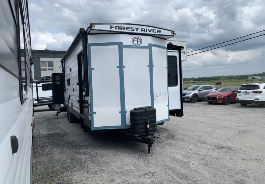 D’abord cette roulotte a un auvent de 18 pieds, une douche et une cuisine pour profiter de l’extérieur sans soucis. Puisque ses marches sont ajustables et très stables vous aurez un accès facile à l’intérieur. Les coffres ont un bel espace de rangement. Elle est munie d’un panneau solaire de 200 watts.