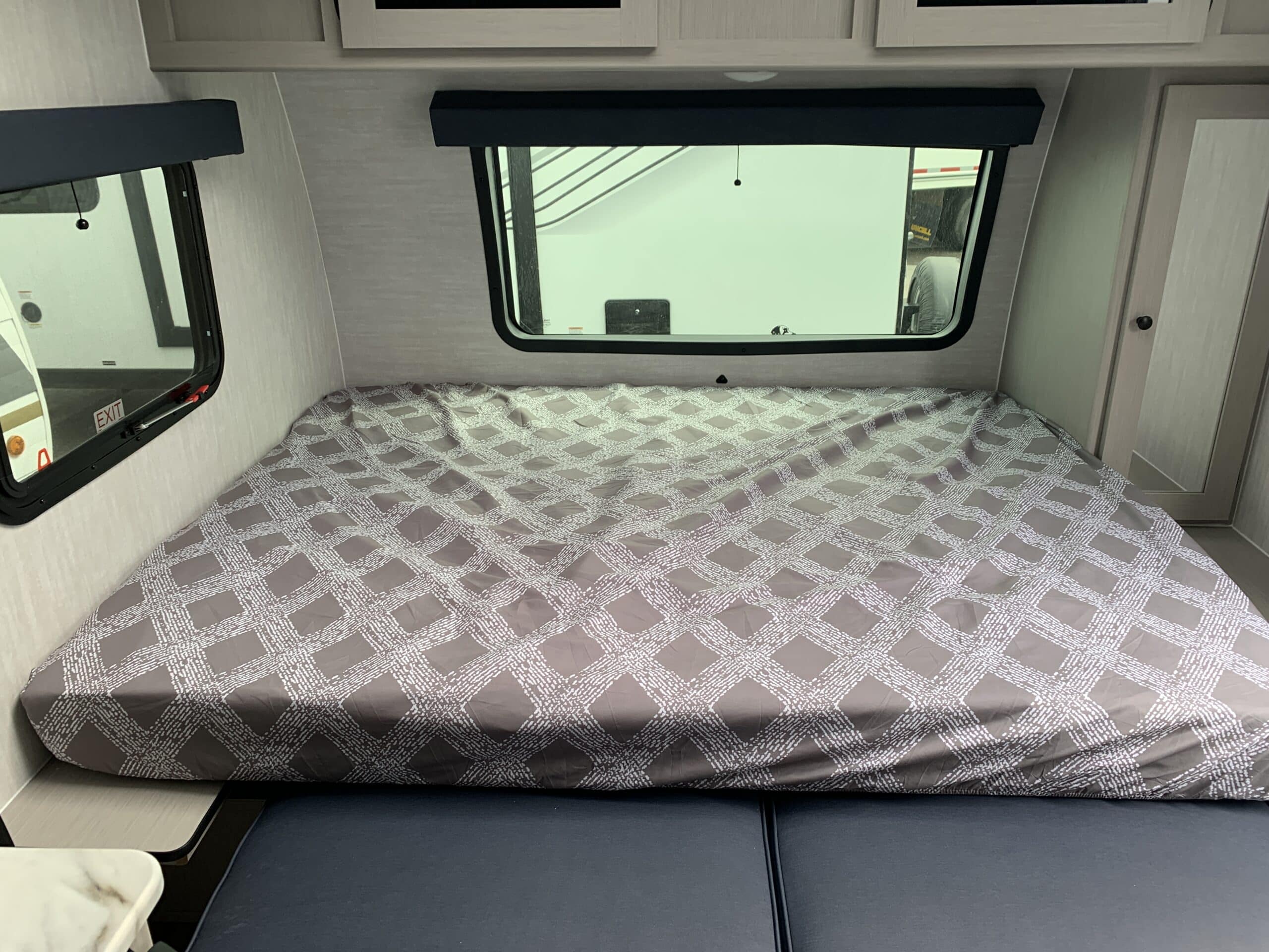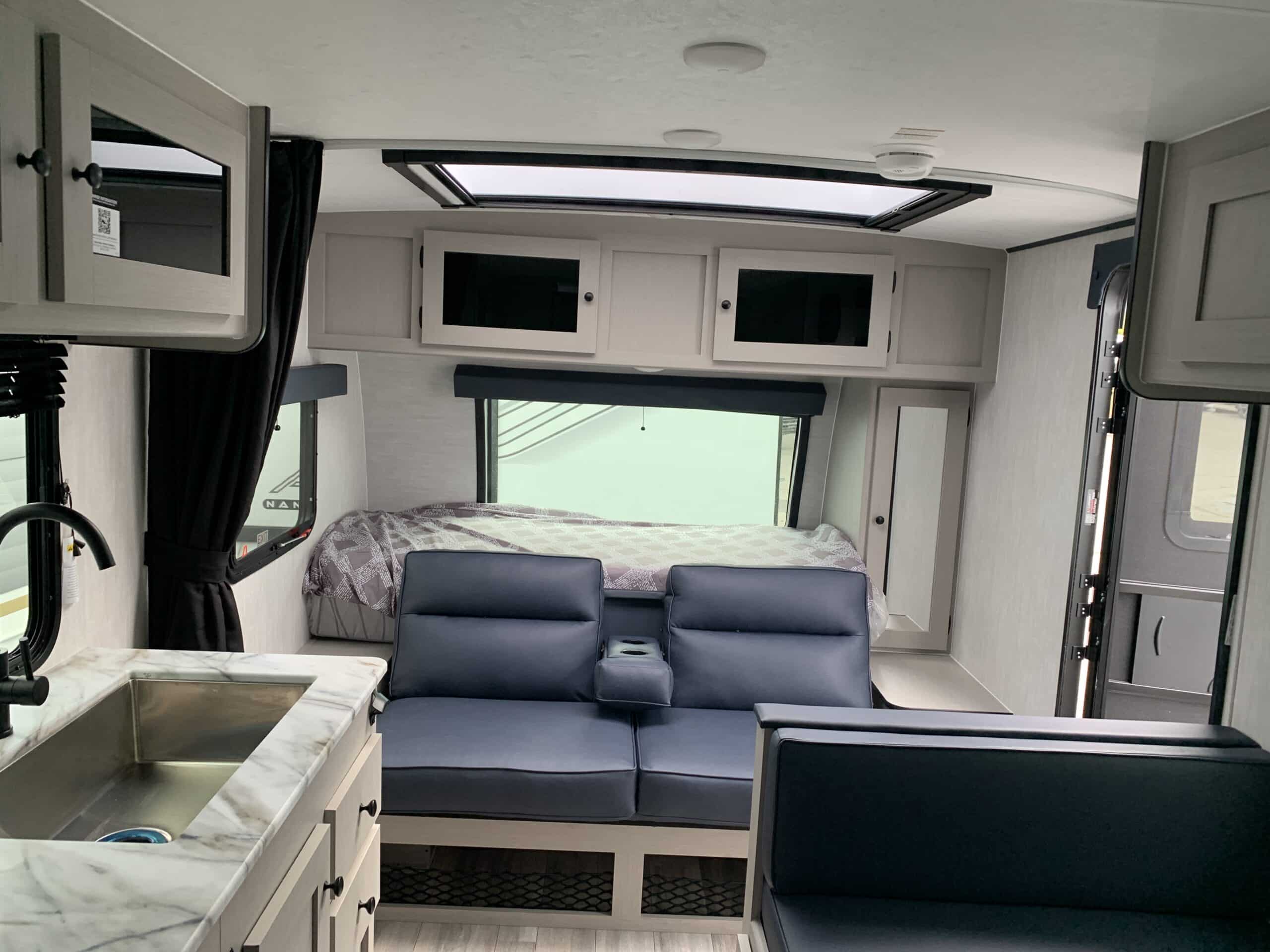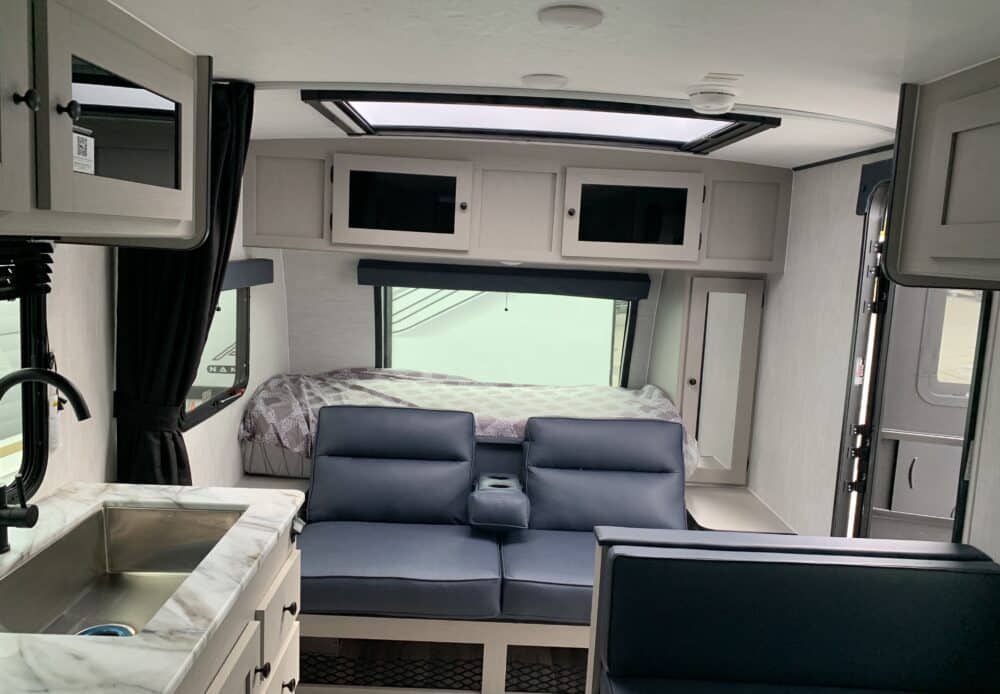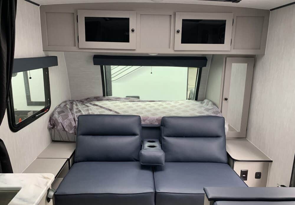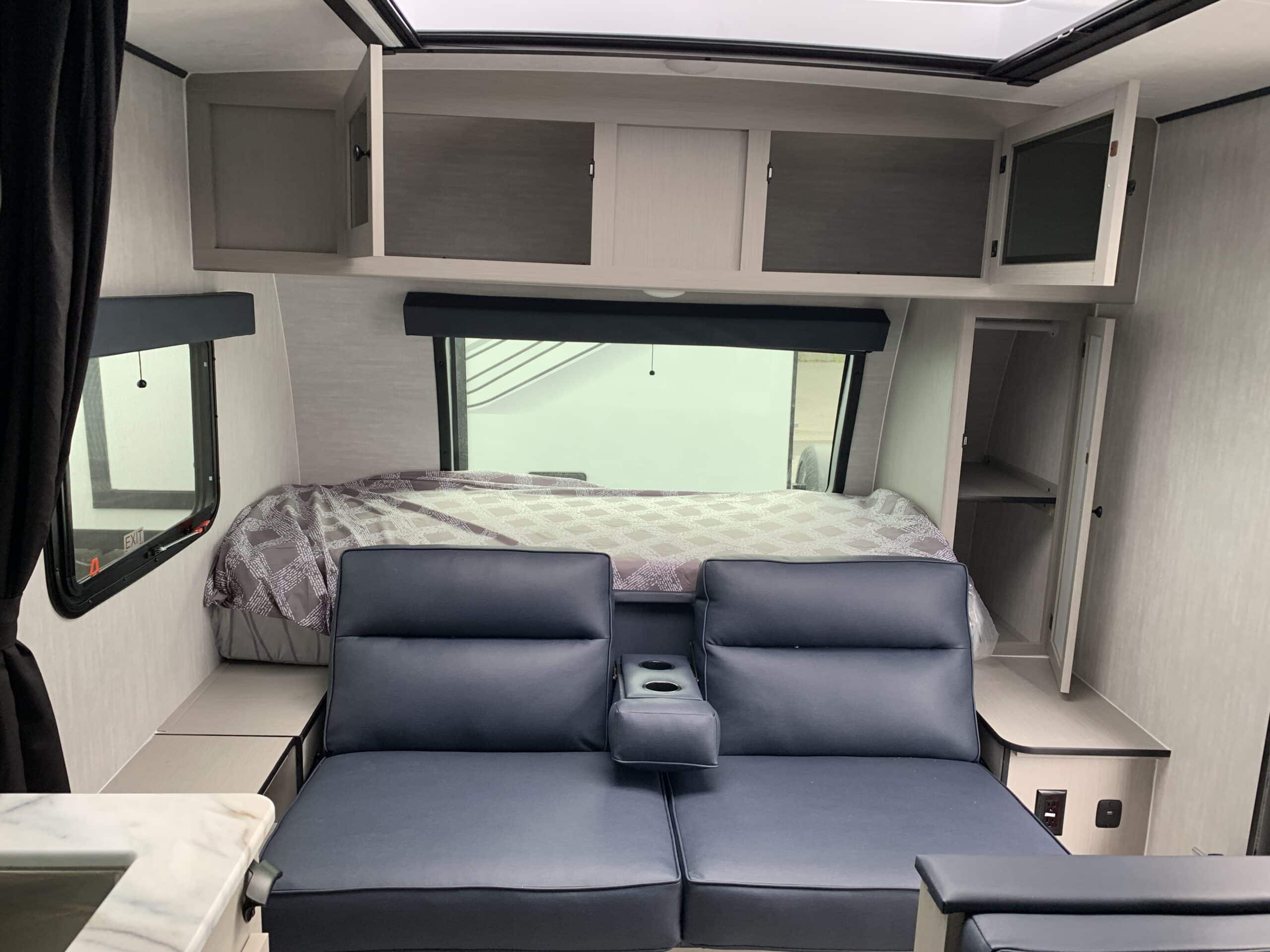 De plus, l’Apex 186BH a un air climatisé de 13500 btu qui tempérera l’ambiance désirée. Par ailleurs, la cuisinière a 2 brûleurs, un réfrigérateur 12 volts et un micro-ondes. De plus, une banquette se transforme en lit. Enfin, le système audio vous permettra d’écouter votre musique préférée.