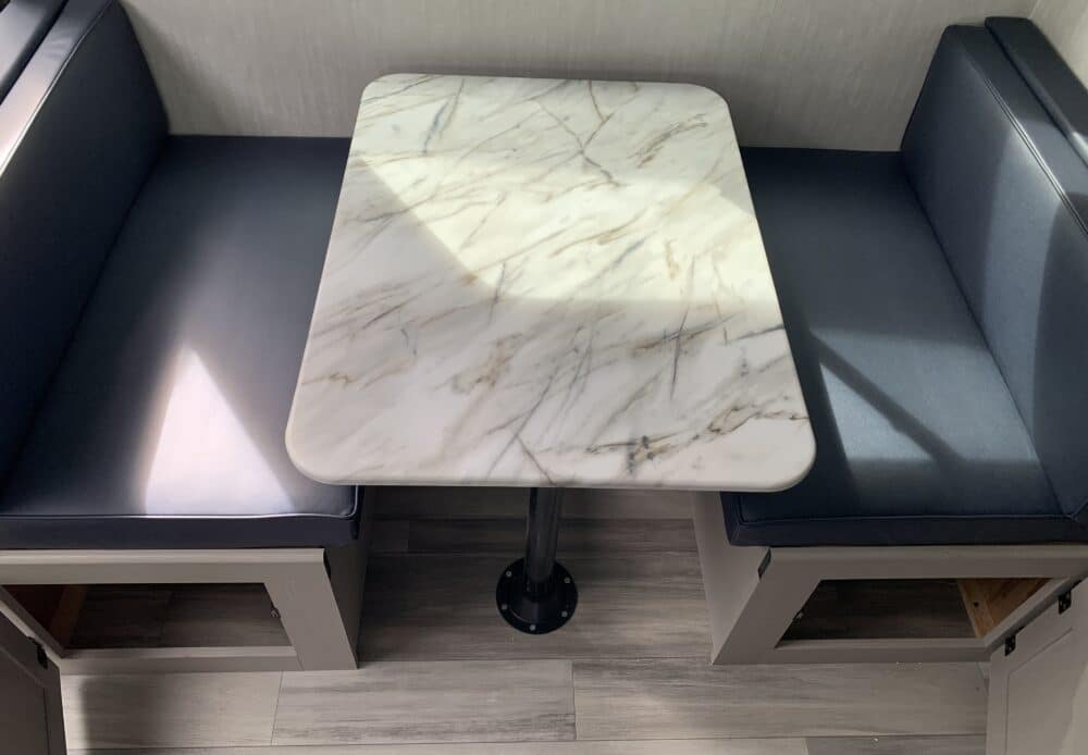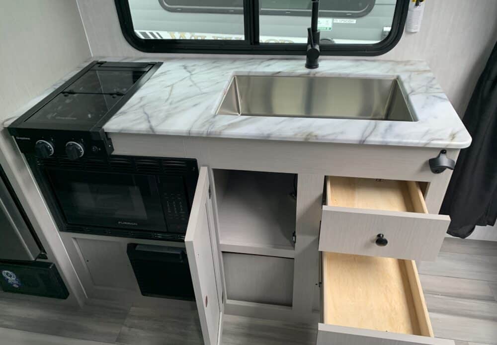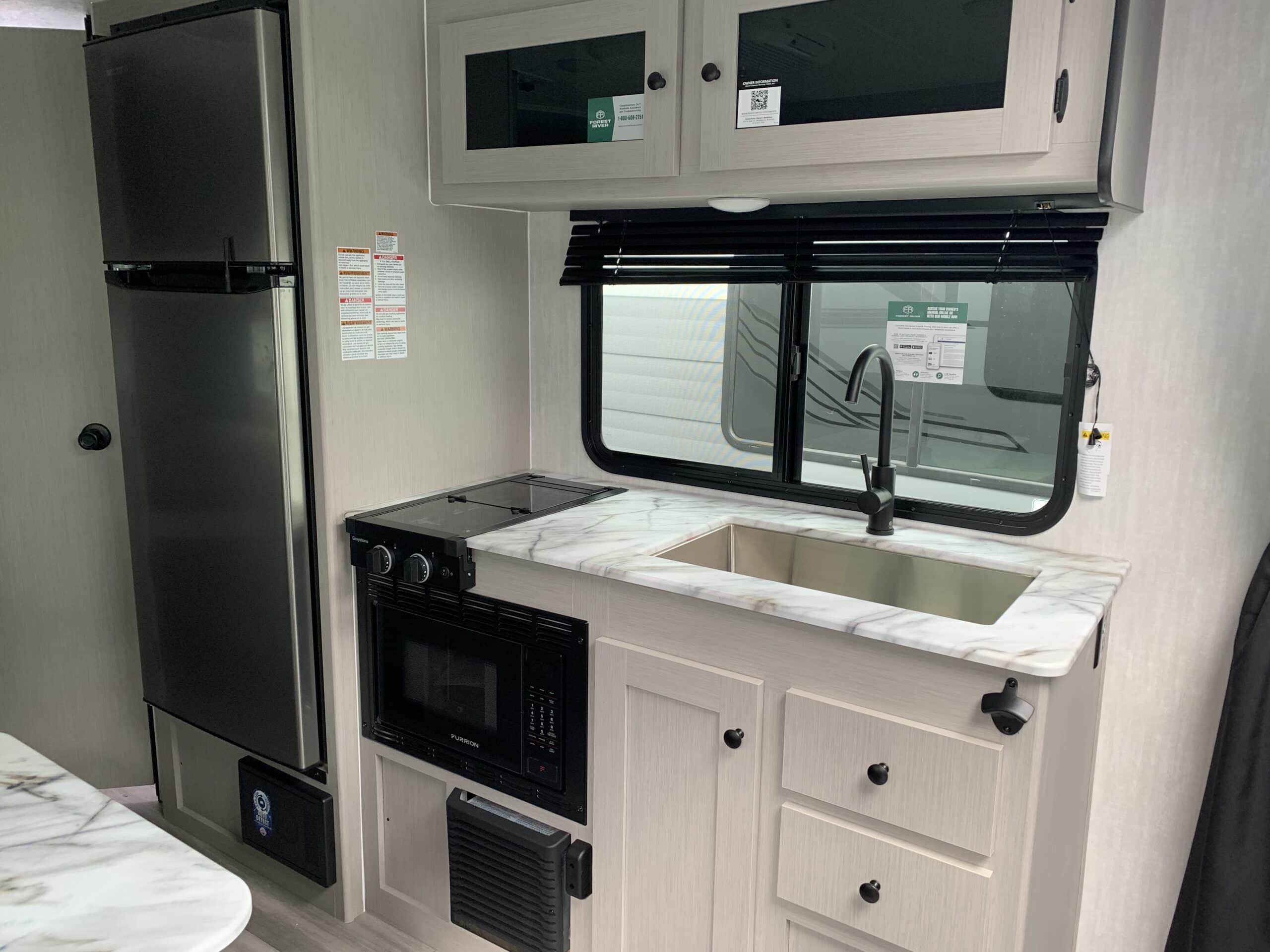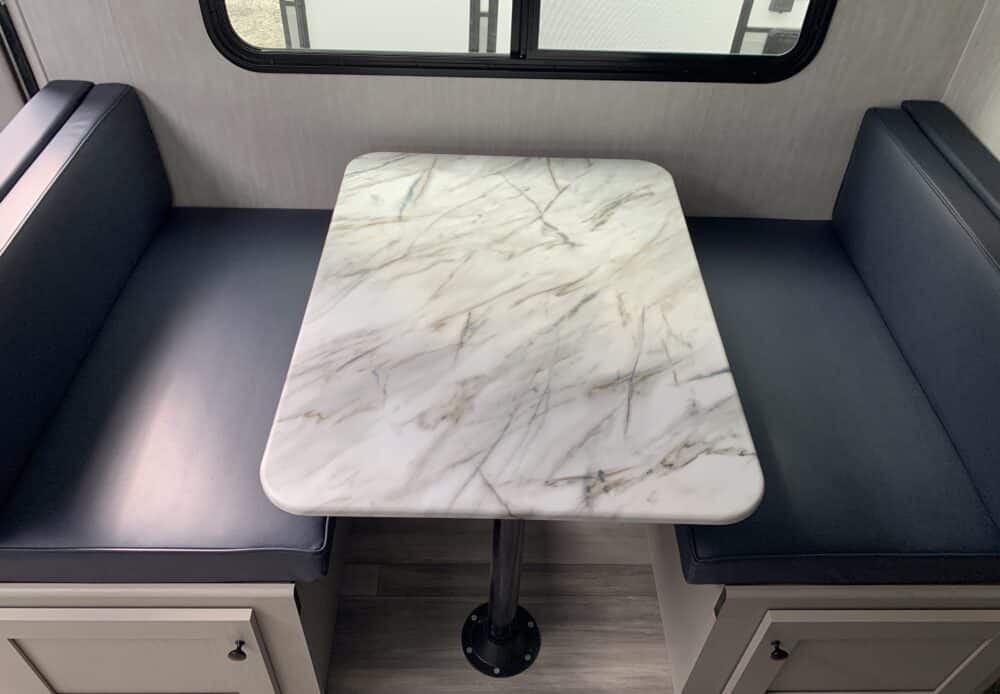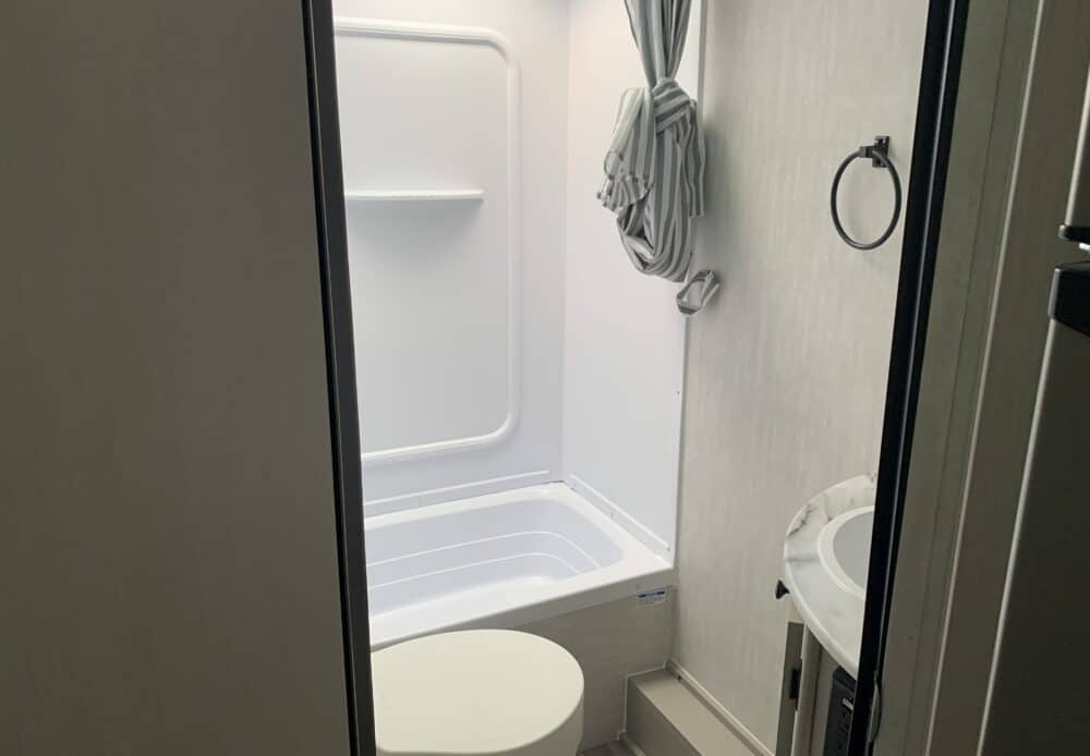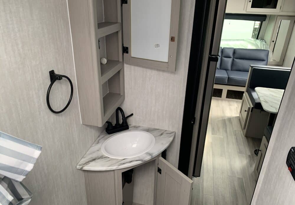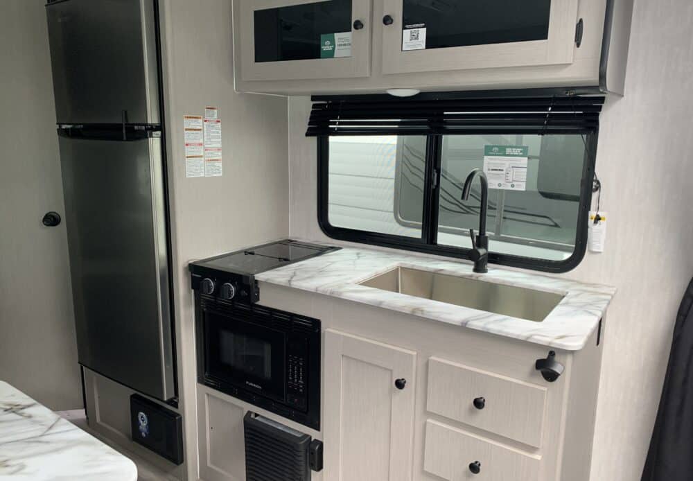 De plus, l’Apex 186BH a un air climatisé de 13500 btu qui tempérera l’ambiance désirée. Par ailleurs, la cuisinière a 2 brûleurs, un réfrigérateur 12 volts et un micro-ondes. De plus, une banquette se transforme en lit. Enfin, le système audio vous permettra d’écouter votre musique préférée.