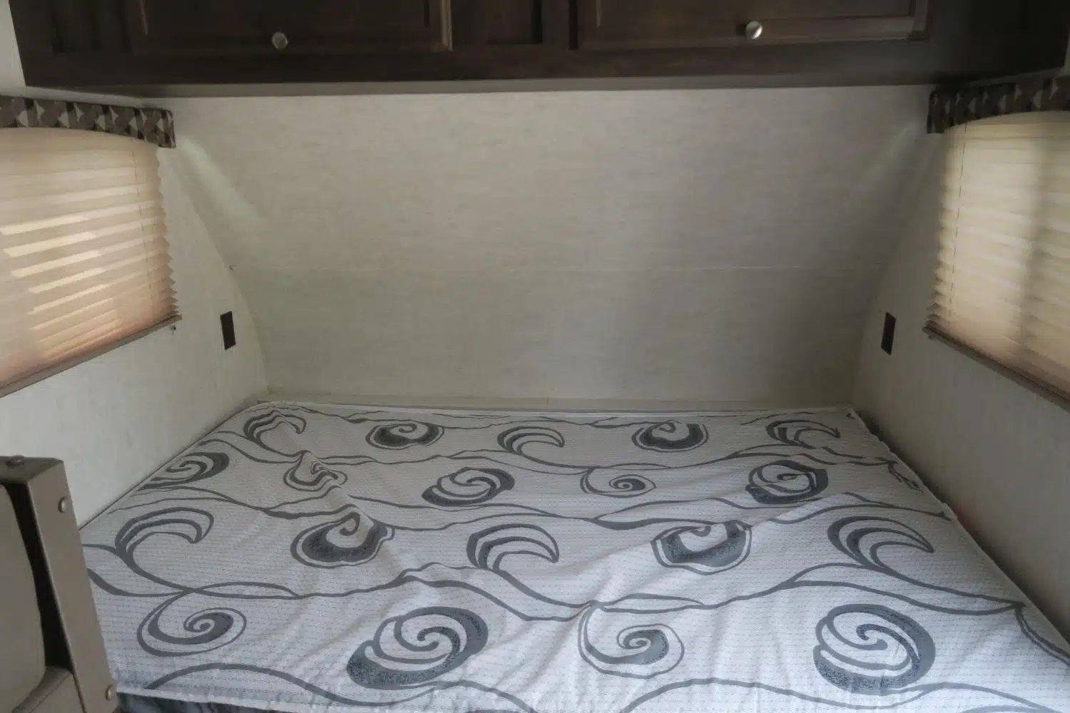 Espace nuit :Comprend un lit principal (souvent format queen) à l’avant et deux lits superposés (bunks) à l’arrière.