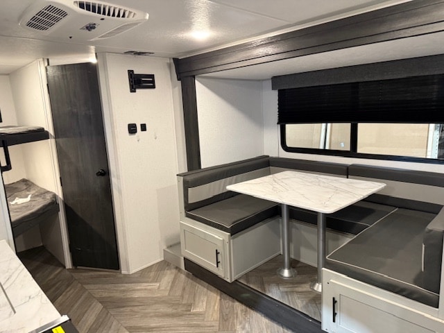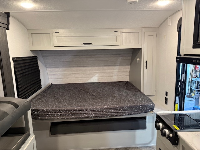 • Capacité de couchage : Ce modèle comprend un lit escamotable queen-size qui se transforme en canapé pendant la journée, des lits superposés doubles à l’arrière et une dinette en forme de U qui se convertit en lit supplémentaire.