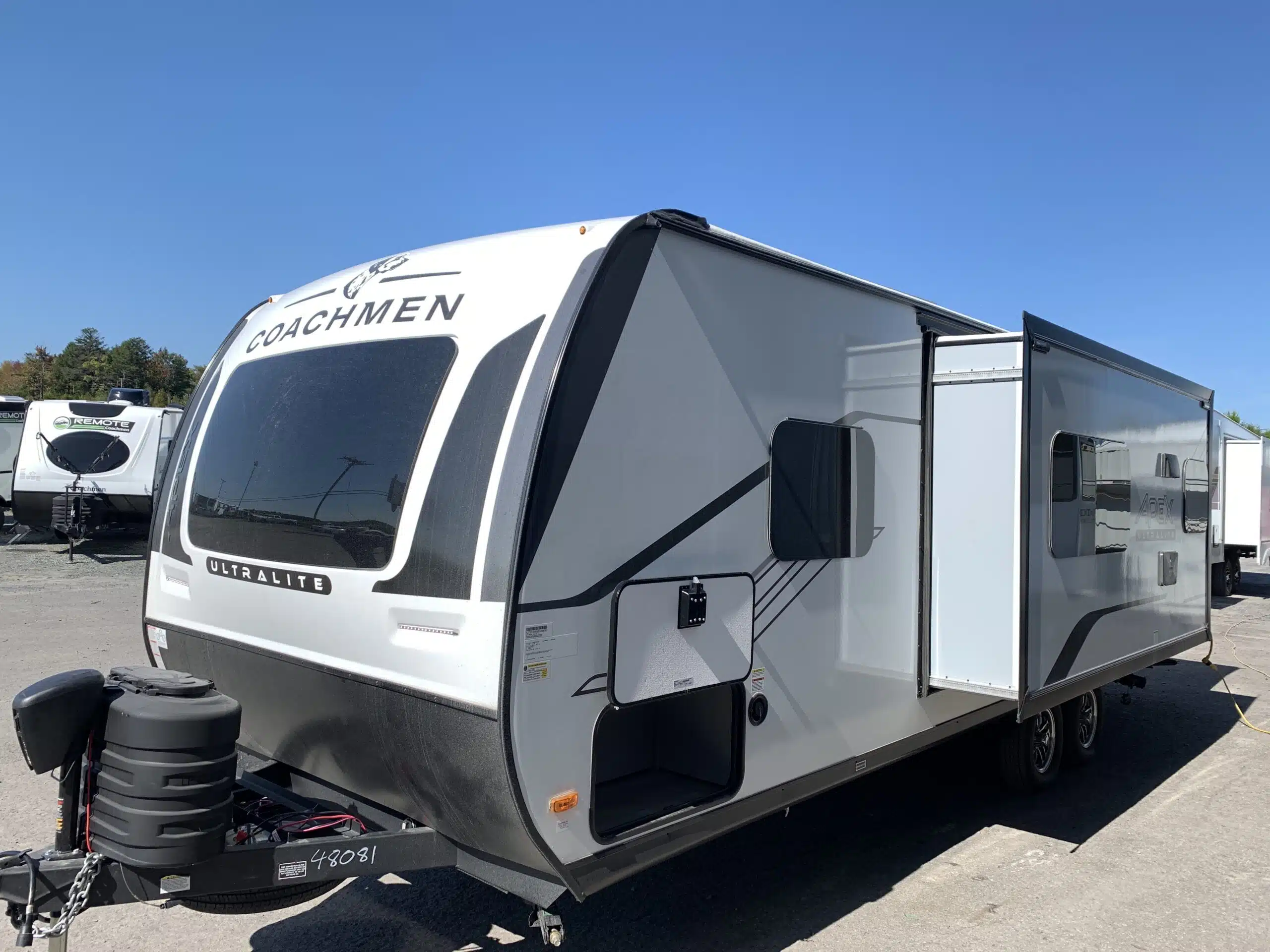 De plus, l’Apex 251RBK a un air climatisé de 14500 btu qui tempérera l’ambiance désirée. Par ailleurs, la cuisinière a un four et 3 brûleurs et air fryer, un réfrigérateur 12 Volt et un micro-ondes. Elle est muni d’une armoire pour le rangement. De plus, une banquette se transforme en lit et un divan inclinable. Enfin, le système audio vous permettra d’écouter votre musique préférée.