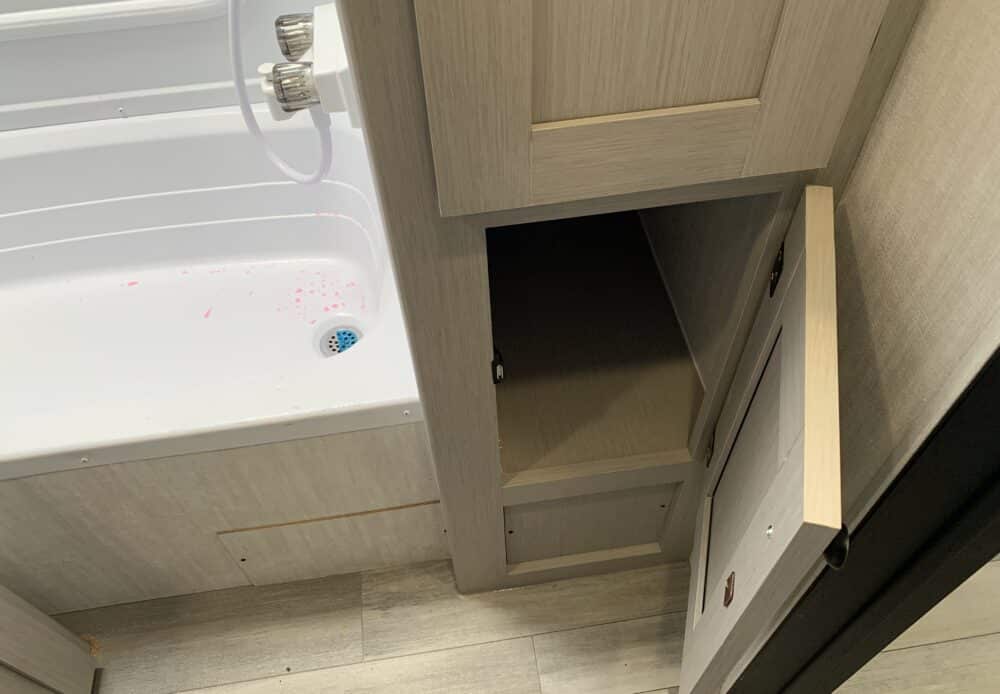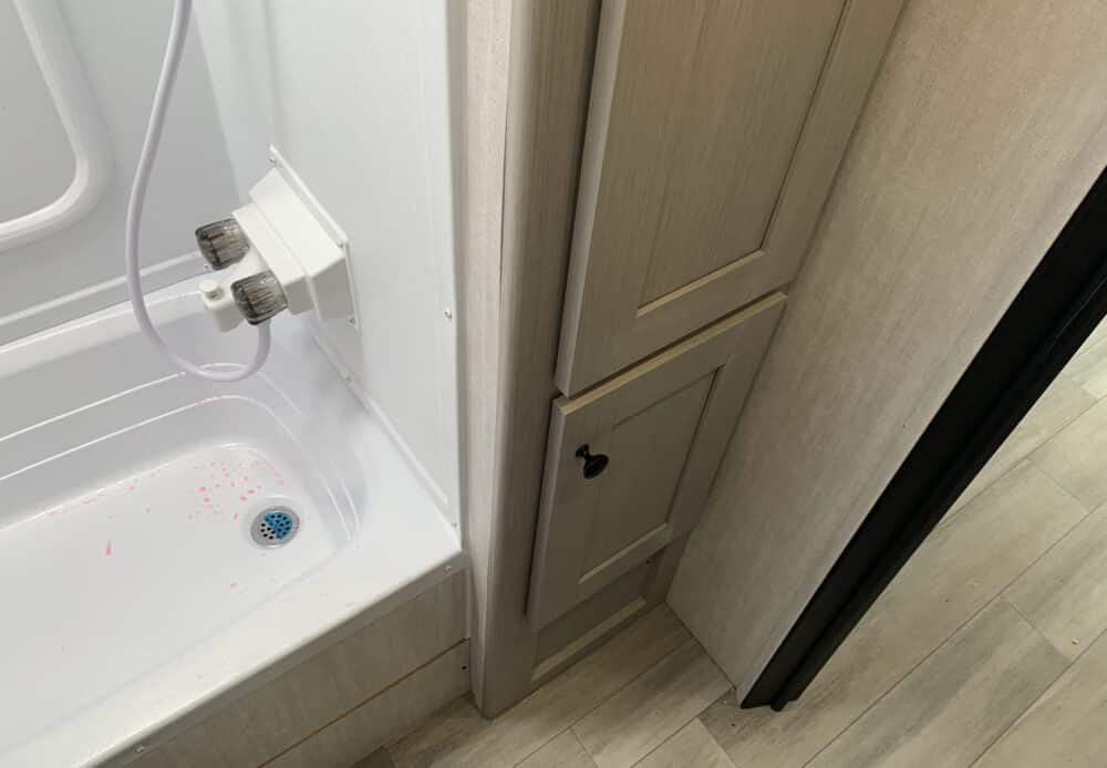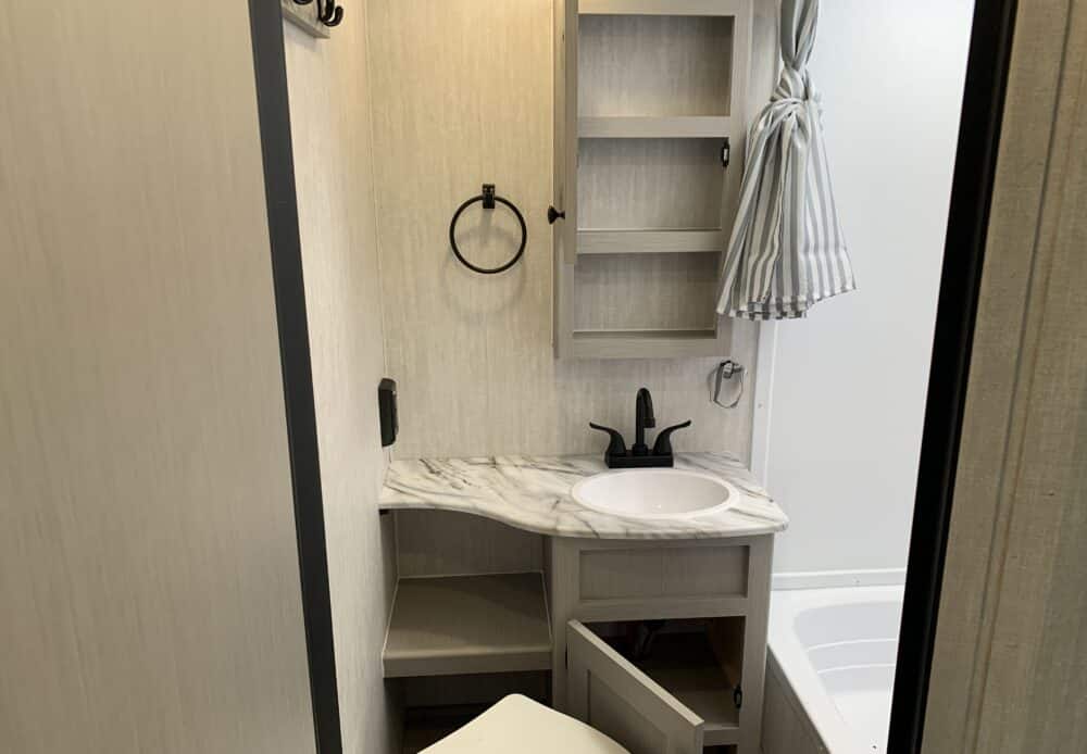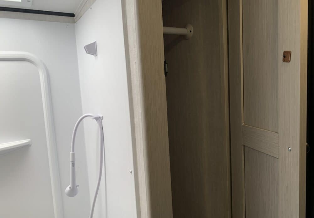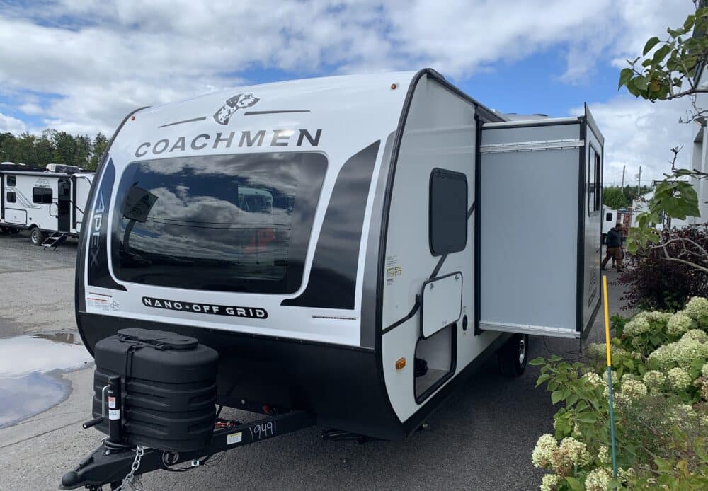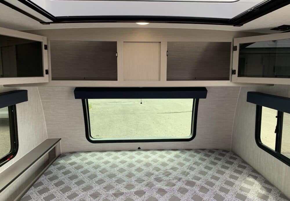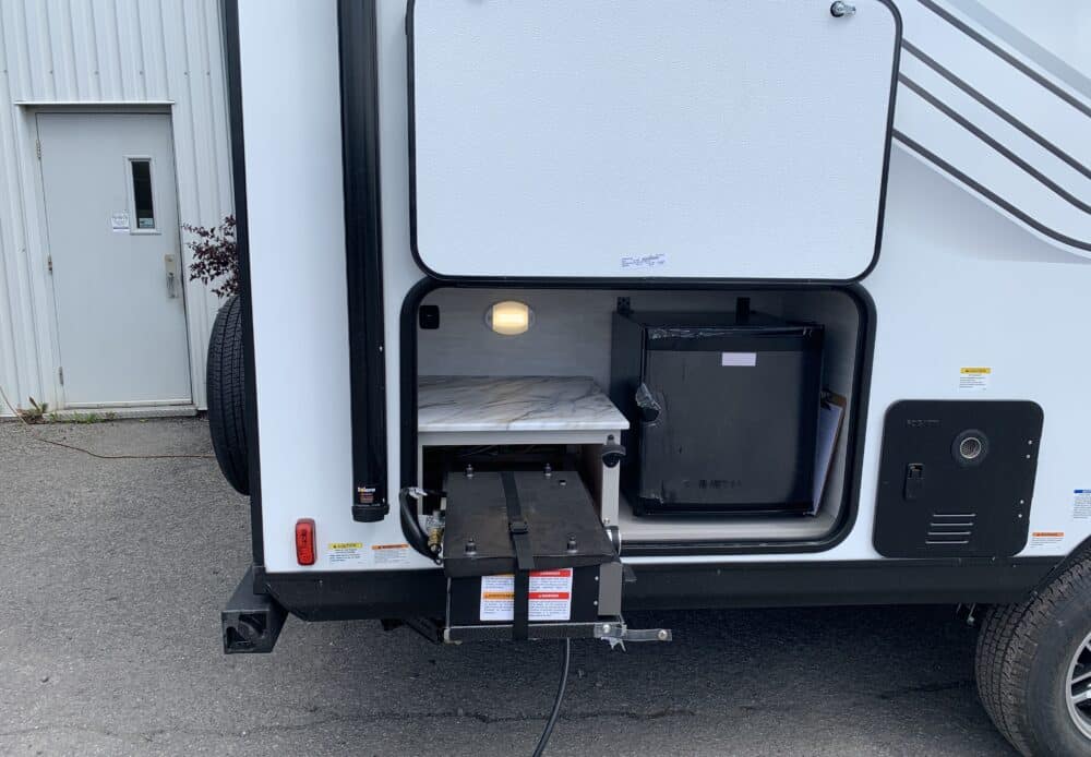D’abord, cette roulotte a un auvent de 16 pieds, une cuisine et une douche pour profiter de l’extérieur sans soucis. Puisque ses marches sont ajustables et très stables vous aurez un accès facile à l’intérieur. Les coffres ont un bel espace de rangement. Elle est munie d’un panneau solaire de 200 watts.