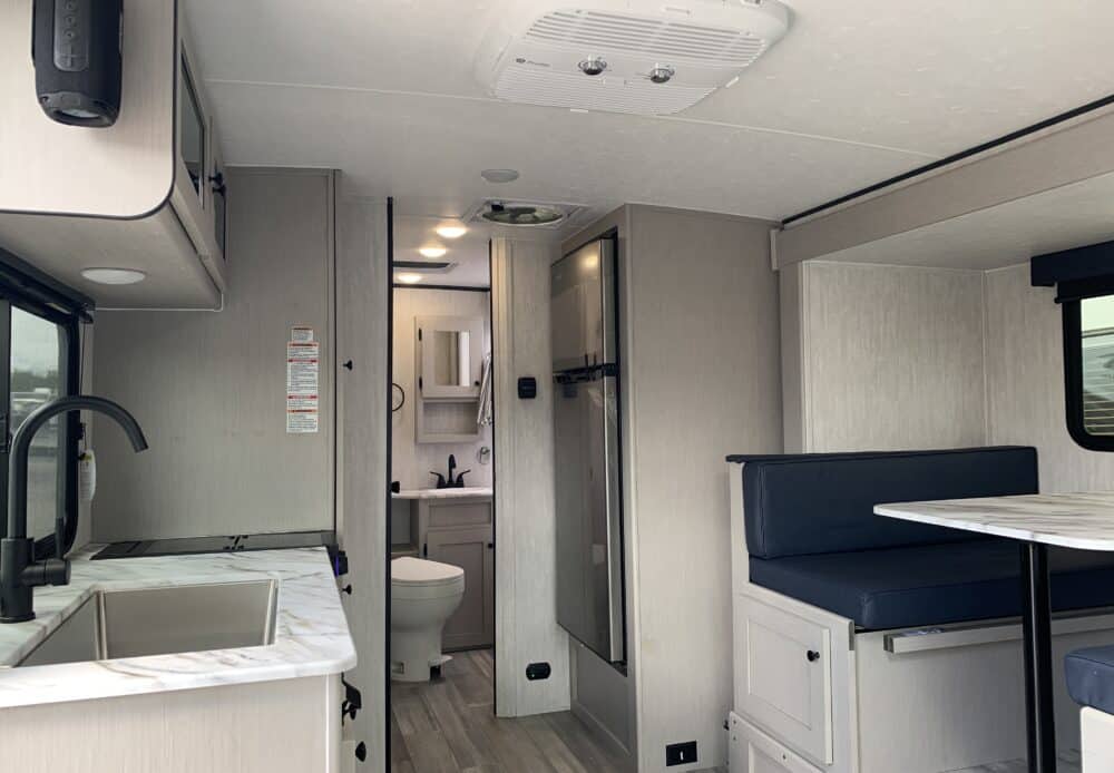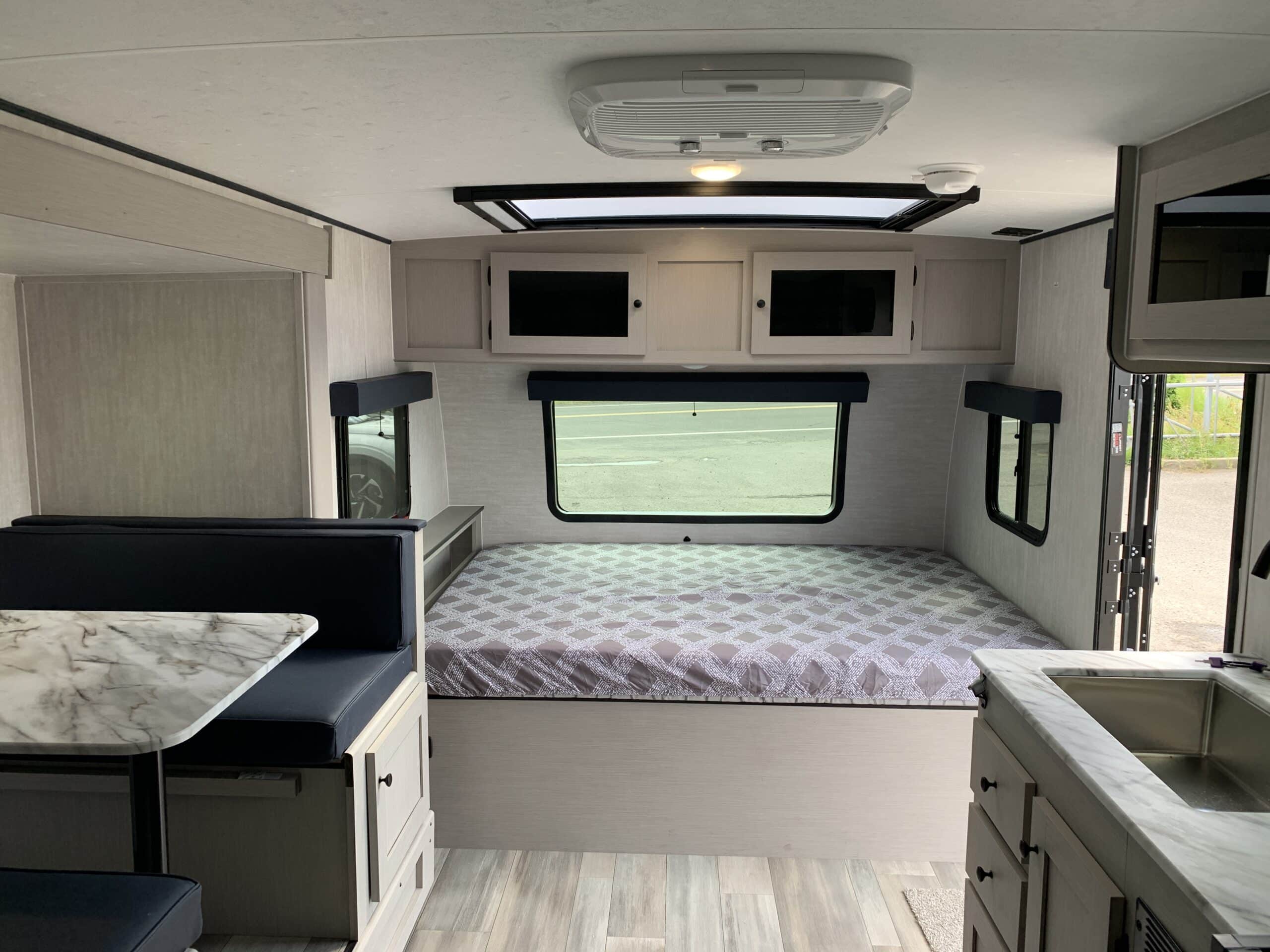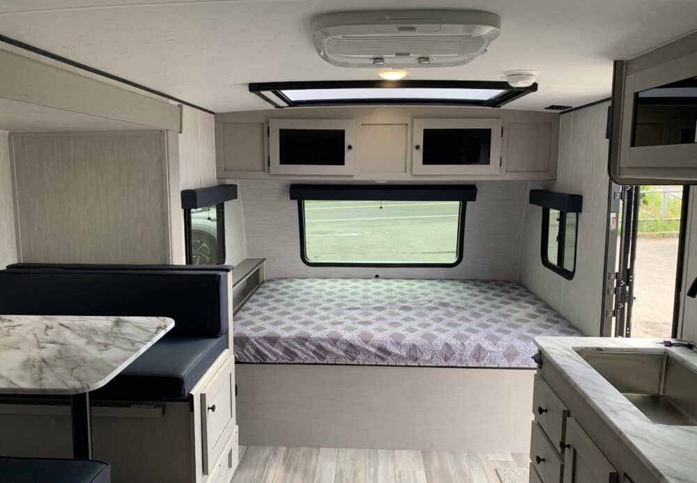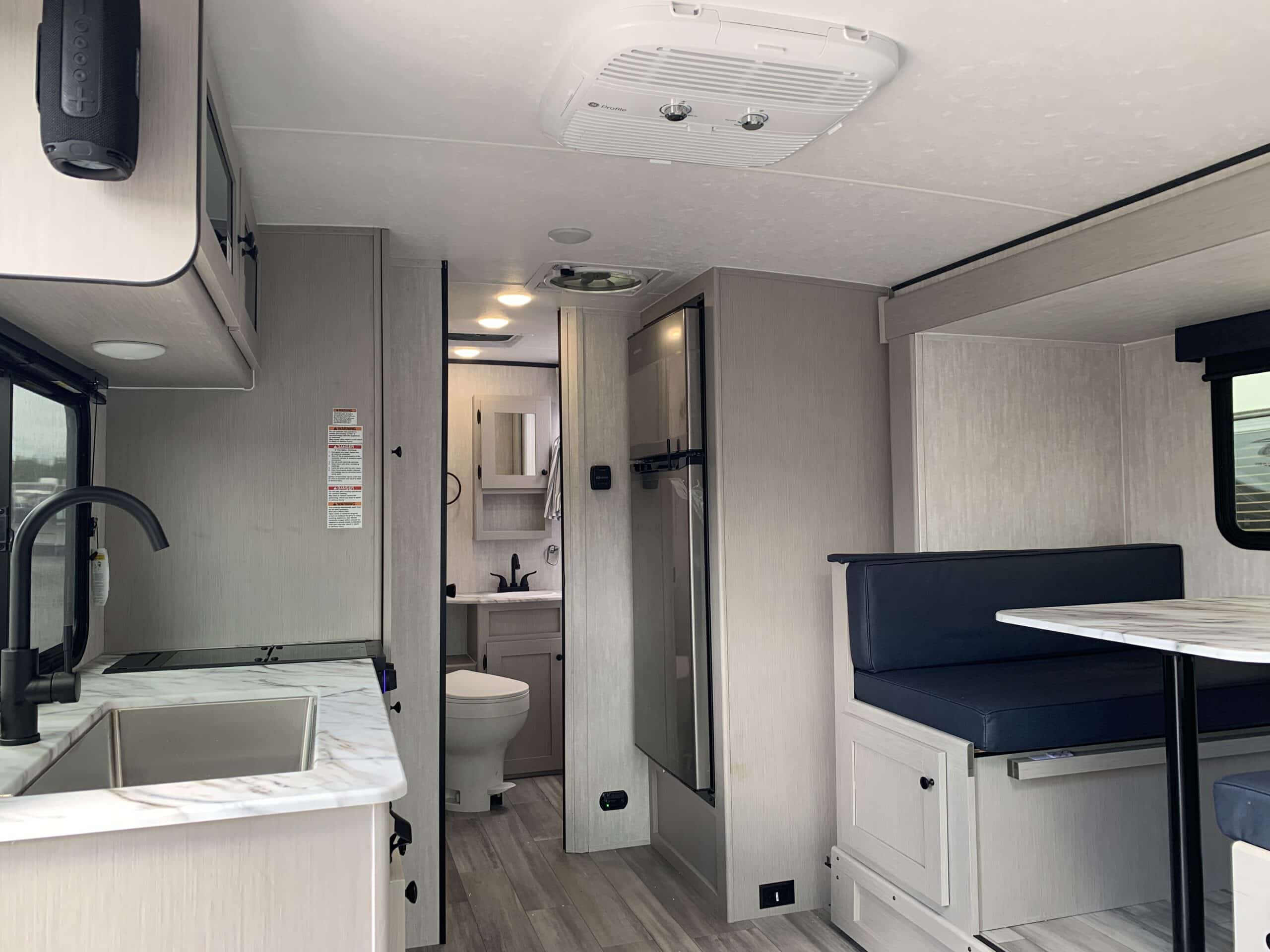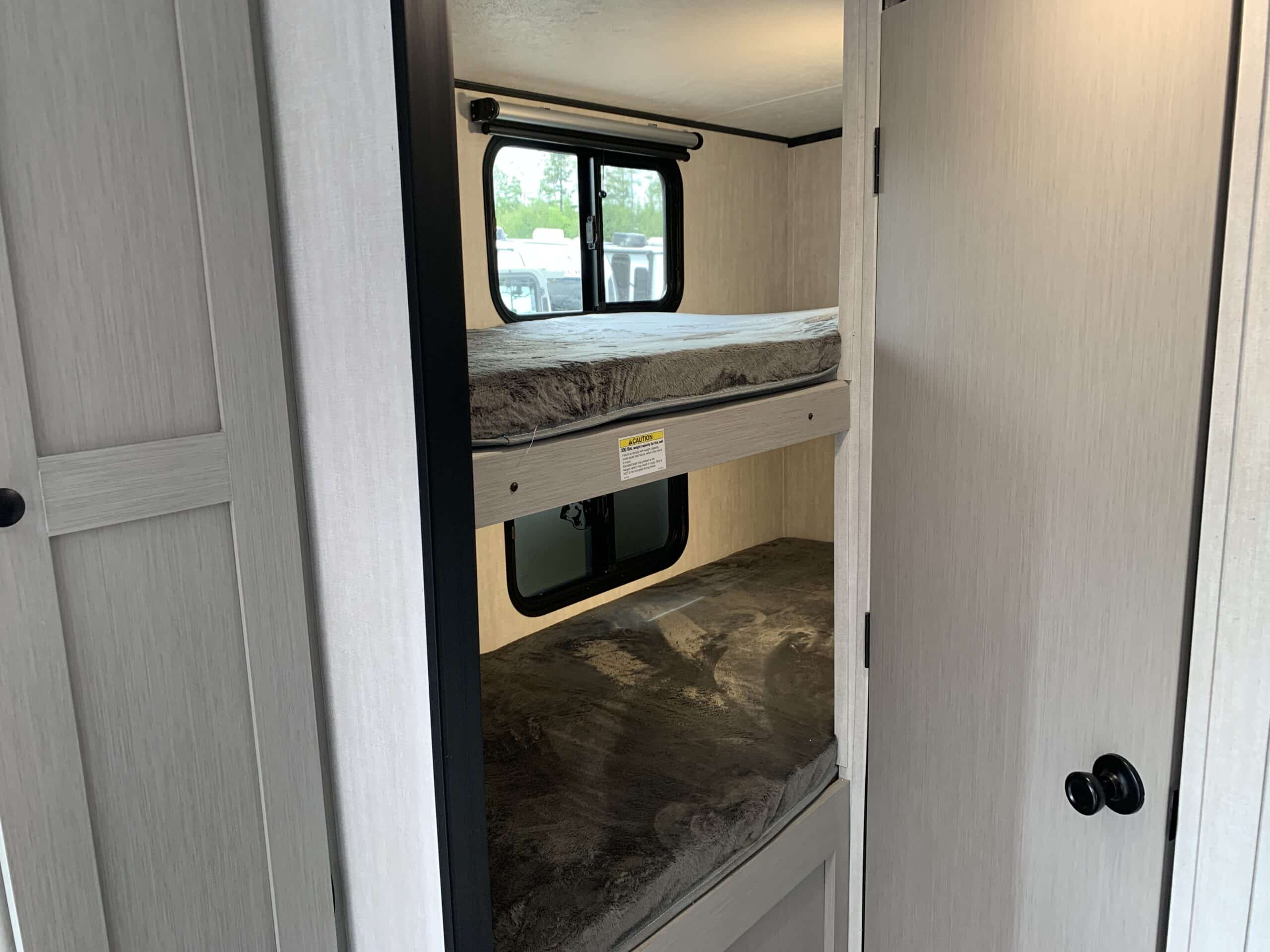 L’Apex 194BHS a un air climatisé de 13500 btu qui tempérera l’ambiance désirée. Par ailleurs, la cuisinière a 2 brûleurs, un réfrigérateur 12 volts et un micro-ondes. De plus, une banquette se transforme en lit. Enfin, le système audio vous permettra d’écouter votre musique préférée.