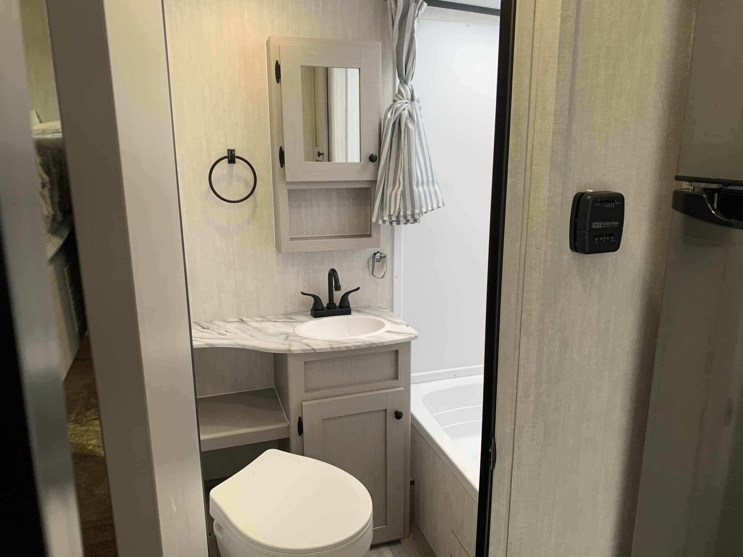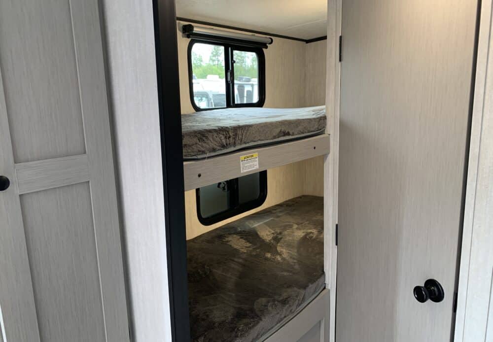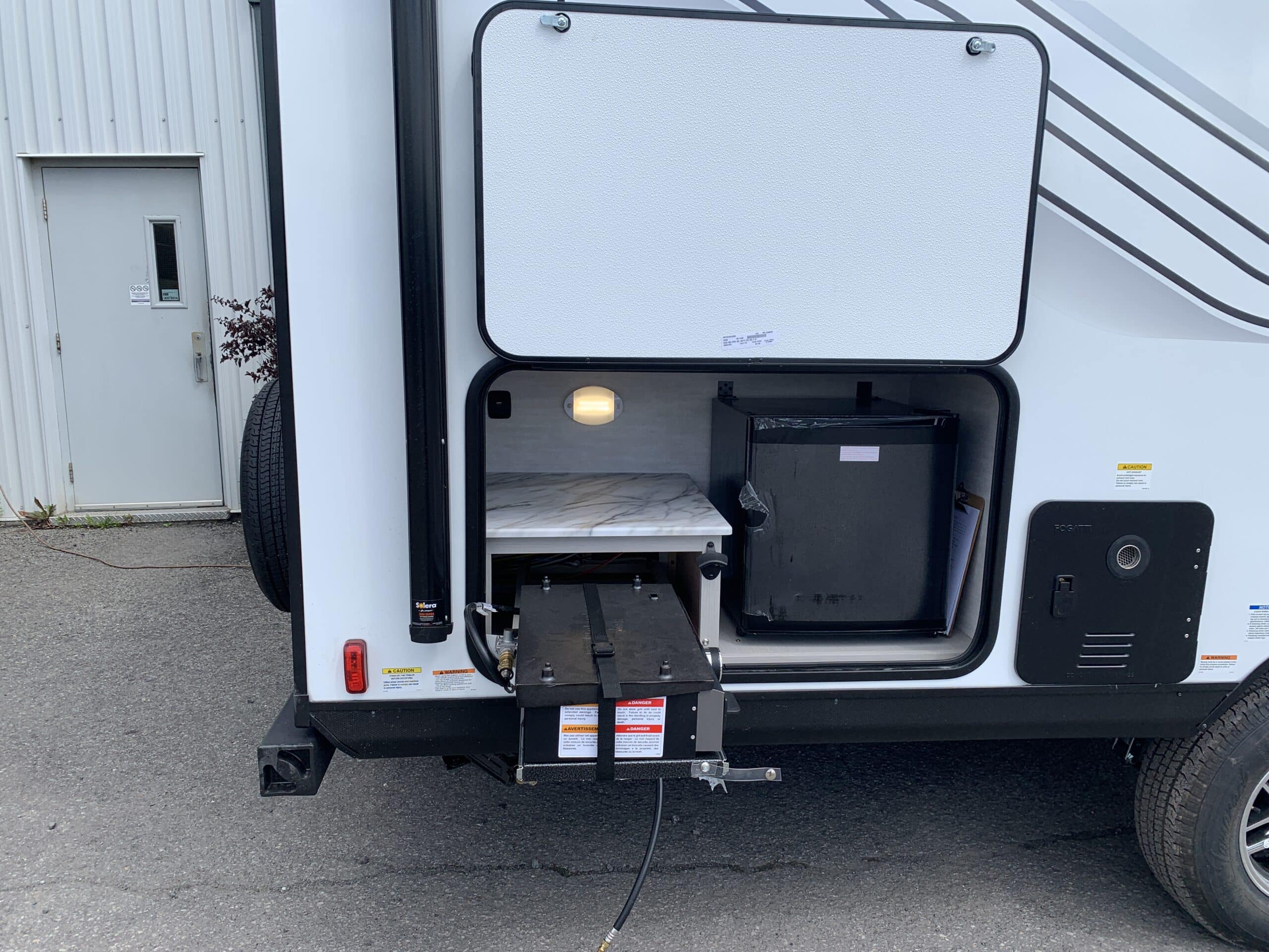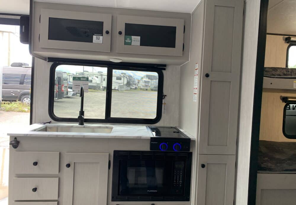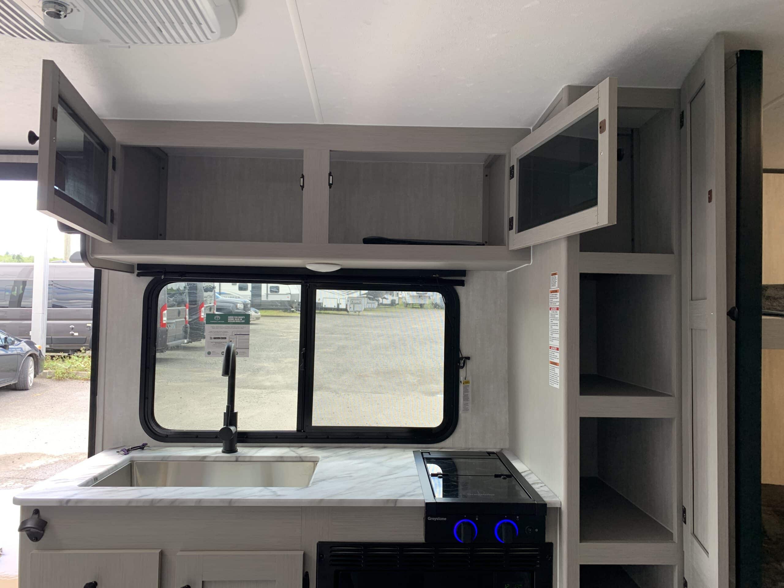 L’Apex 194BHS a un air climatisé de 13500 btu qui tempérera l’ambiance désirée. Par ailleurs, la cuisinière a 2 brûleurs, un réfrigérateur 12 volts et un micro-ondes. De plus, une banquette se transforme en lit. Enfin, le système audio vous permettra d’écouter votre musique préférée.