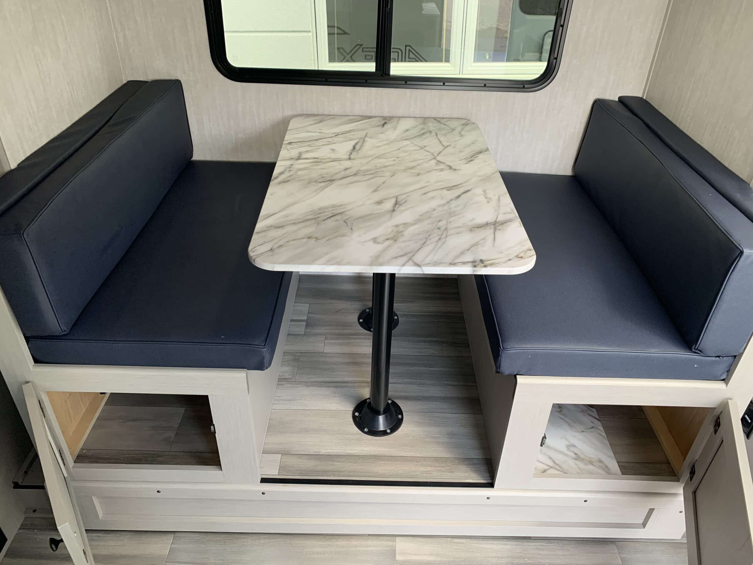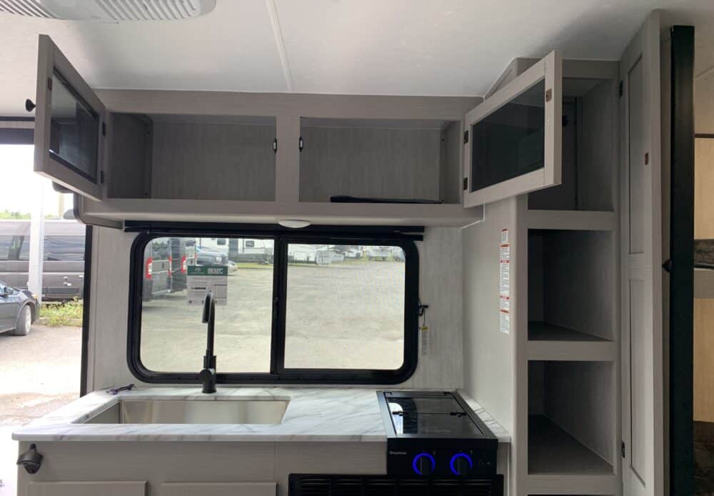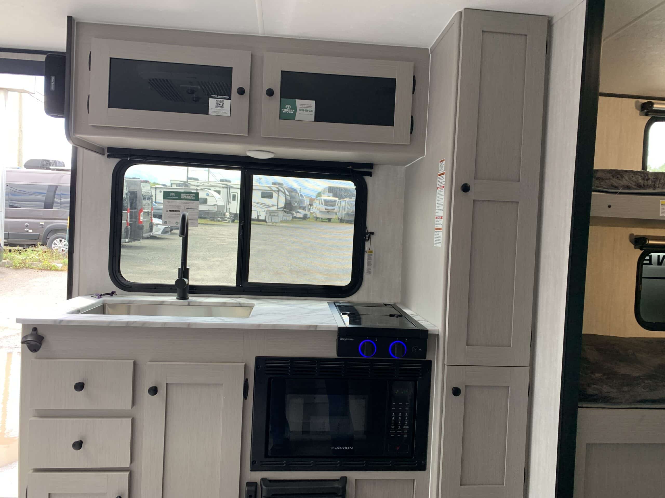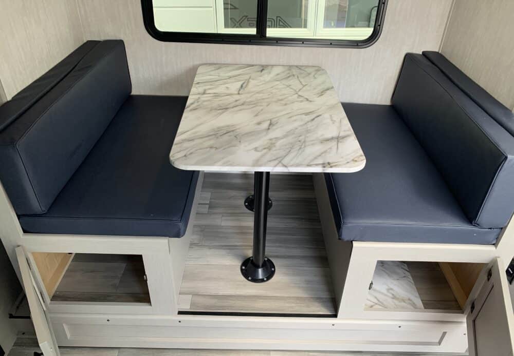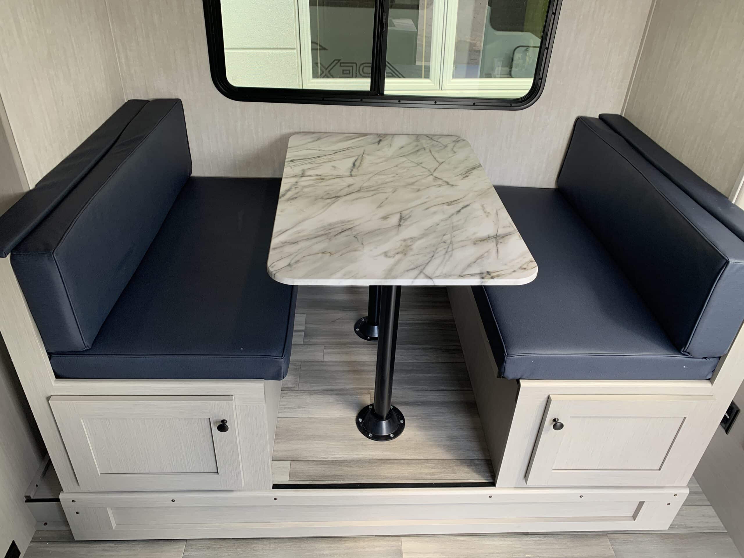 L’Apex 194BHS a un air climatisé de 13500 btu qui tempérera l’ambiance désirée. Par ailleurs, la cuisinière a 2 brûleurs, un réfrigérateur 12 volts et un micro-ondes. De plus, une banquette se transforme en lit. Enfin, le système audio vous permettra d’écouter votre musique préférée.