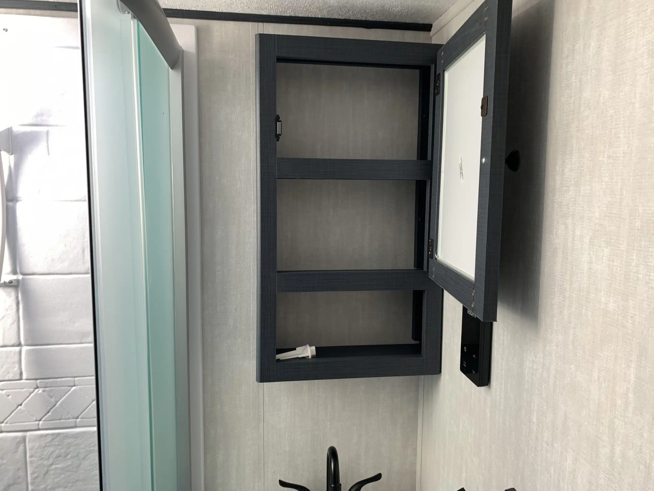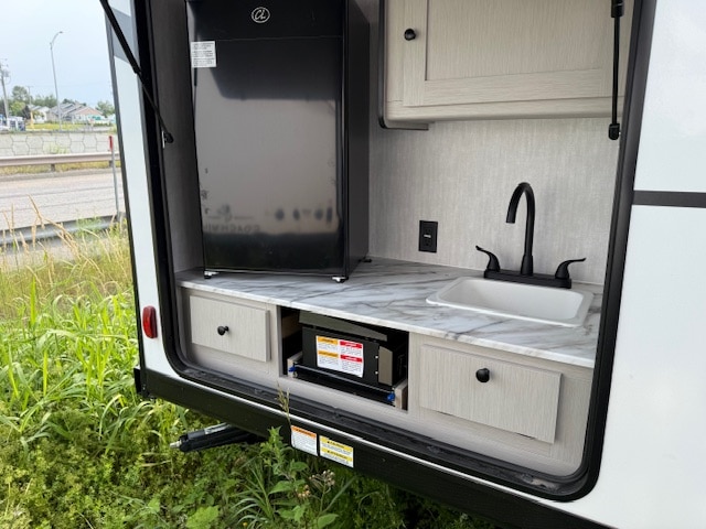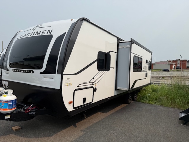 De plus, l’Apex 251RBK a un air climatisé de 14500 btu qui tempérera l’ambiance désirée. Par ailleurs, la cuisinière a un four et 3 brûleurs et air fryer, un réfrigérateur 12 Volt et un micro-ondes. Elle est muni d’une armoire pour le rangement. De plus, une banquette se transforme en lit et un divan inclinable. Enfin, le système audio vous permettra d’écouter votre musique préférée.