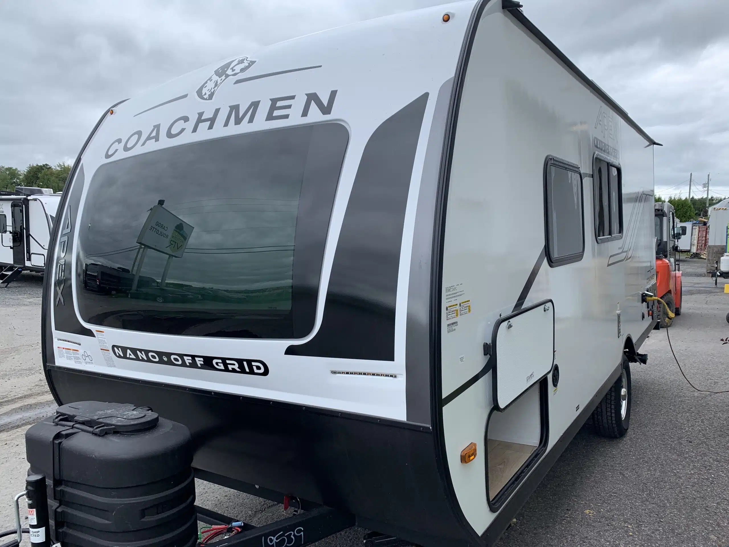 L’Apex Nano 187RB a un air climatisé de 13500 btu qui tempérera l’ambiance désirée. Par ailleurs, la cuisinière a 2 brûleurs, un réfrigérateur 12 volts et un micro-ondes. De plus, une banquette se transforme en lit. Enfin, le système audio vous permettra d’écouter votre musique préférée.