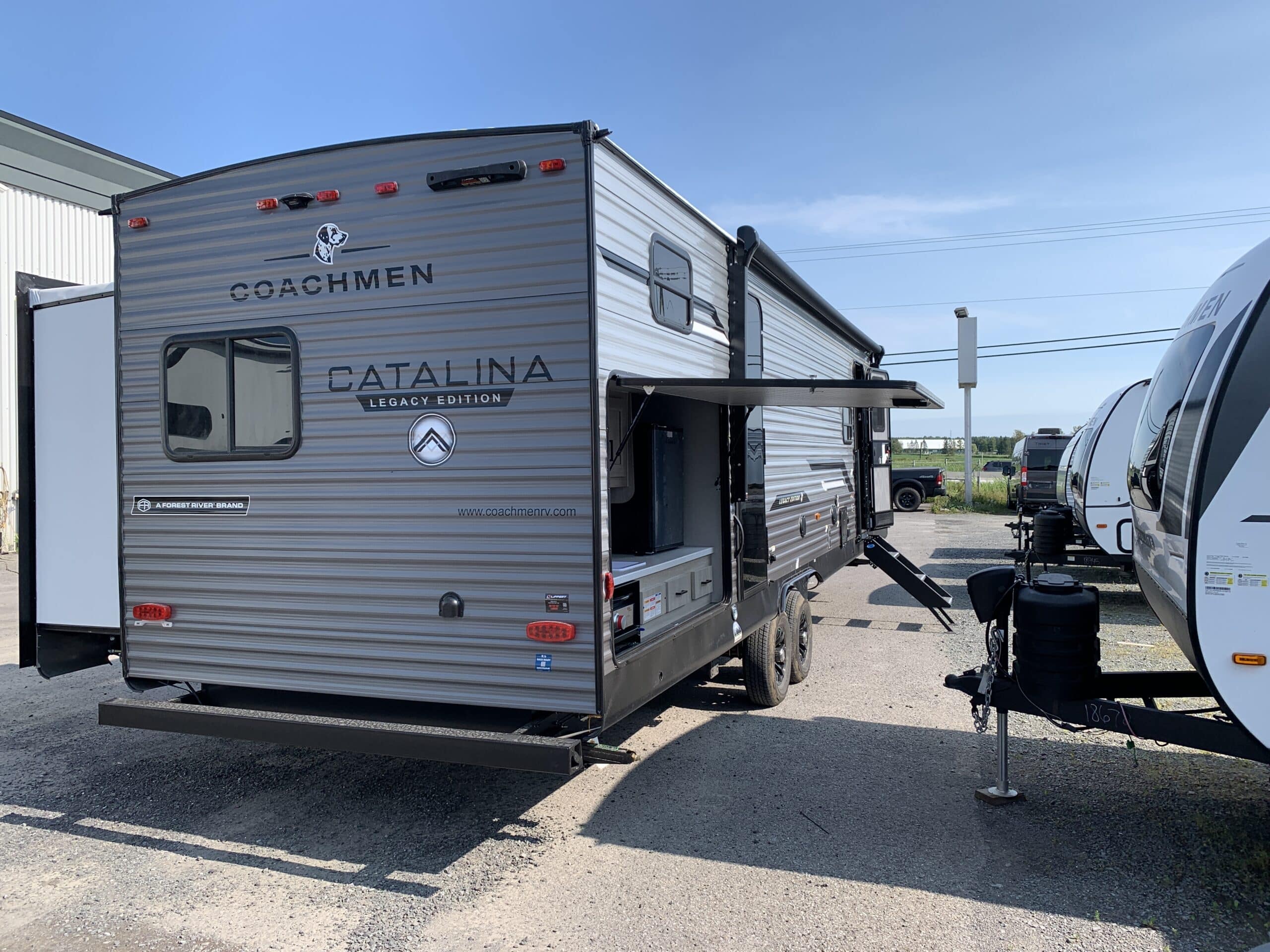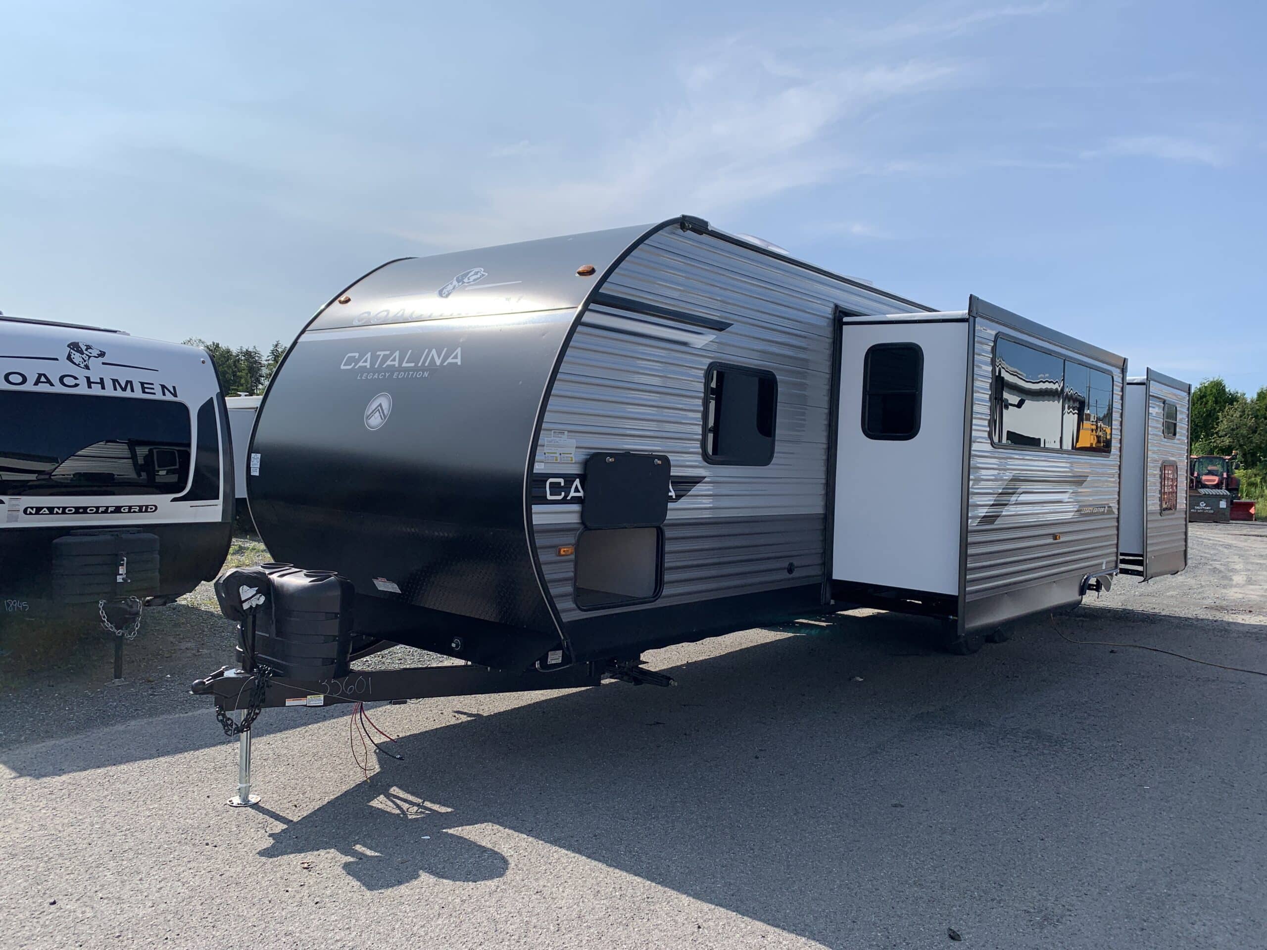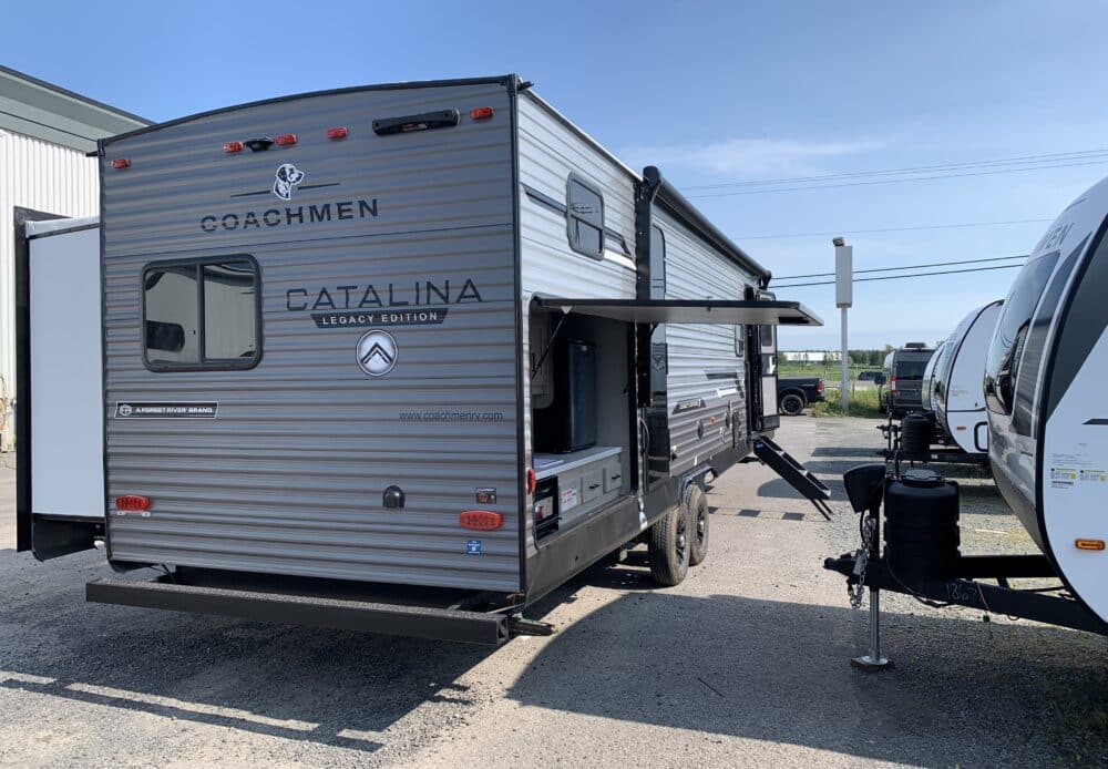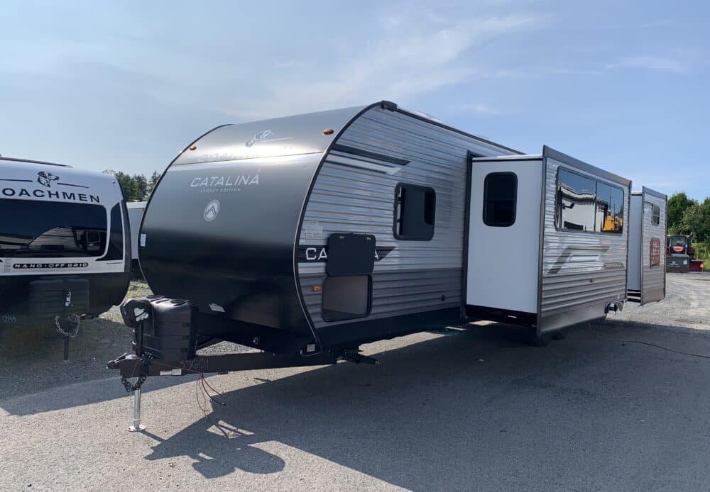 2026 Catalina 323BHDSCK, roulotte pour famille de 36.8 pieds à 8270 lbs avec 2 essieux, extérieur en aluminium et 2 extensions.