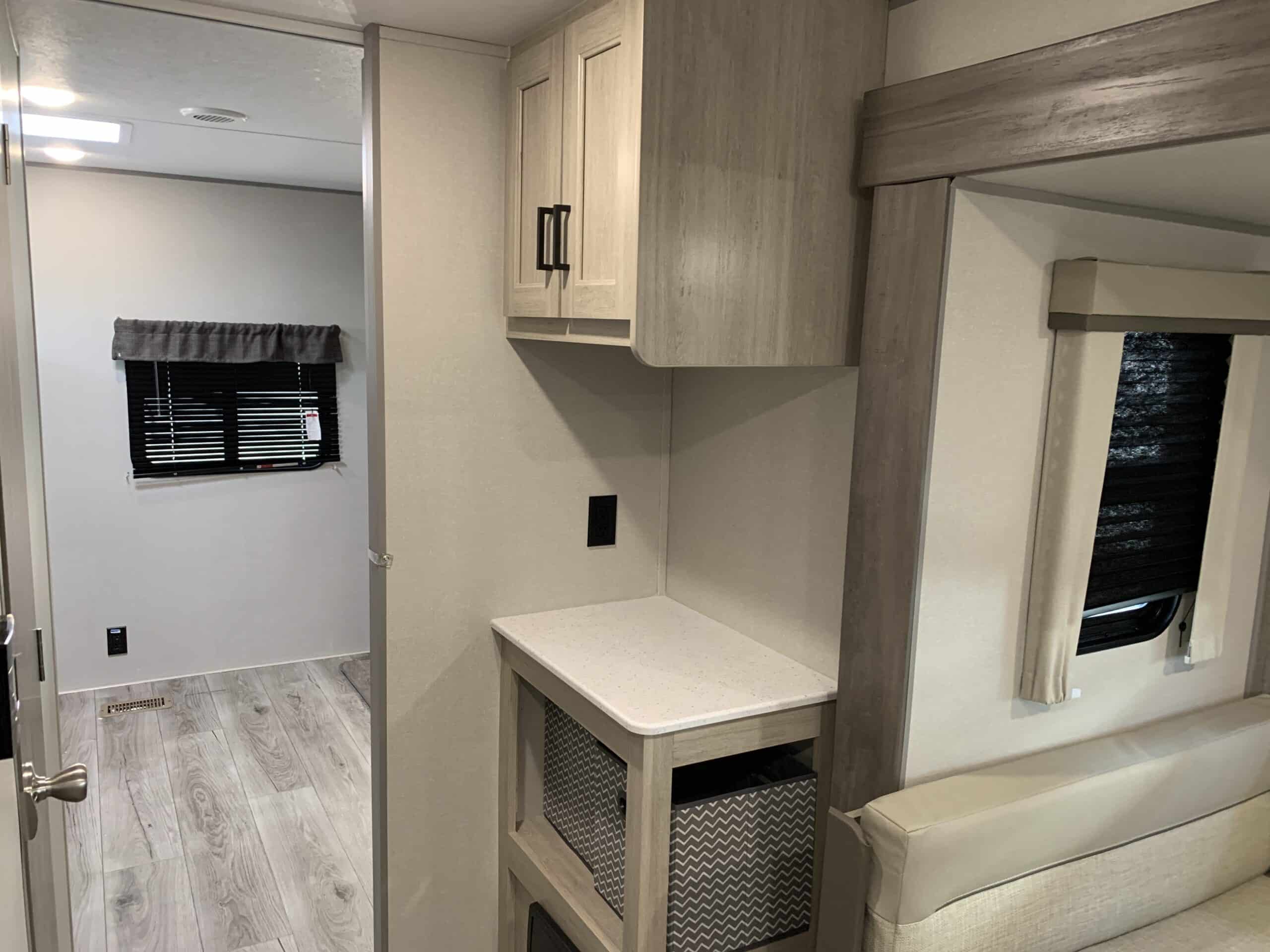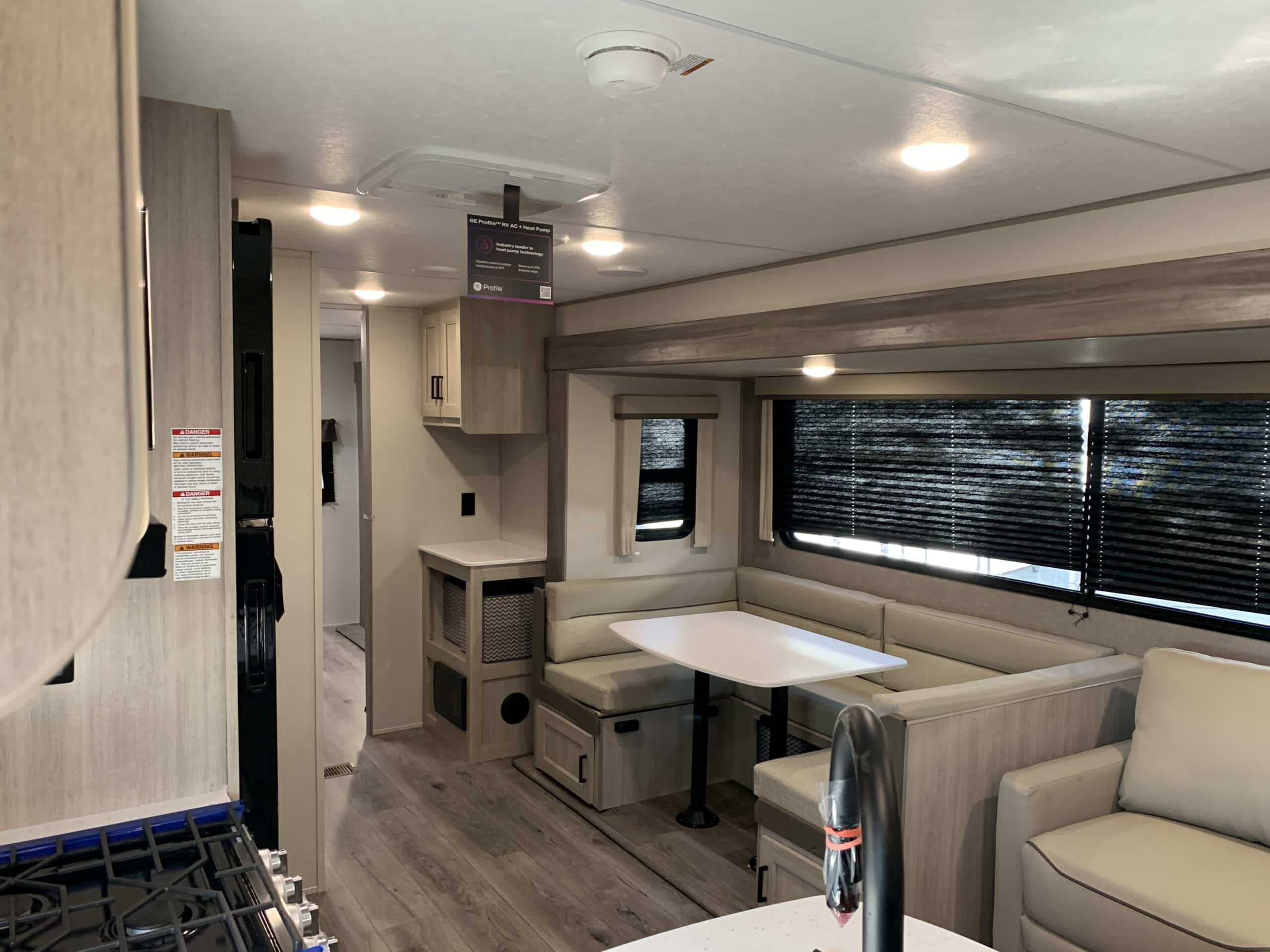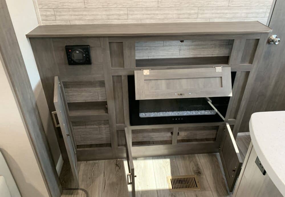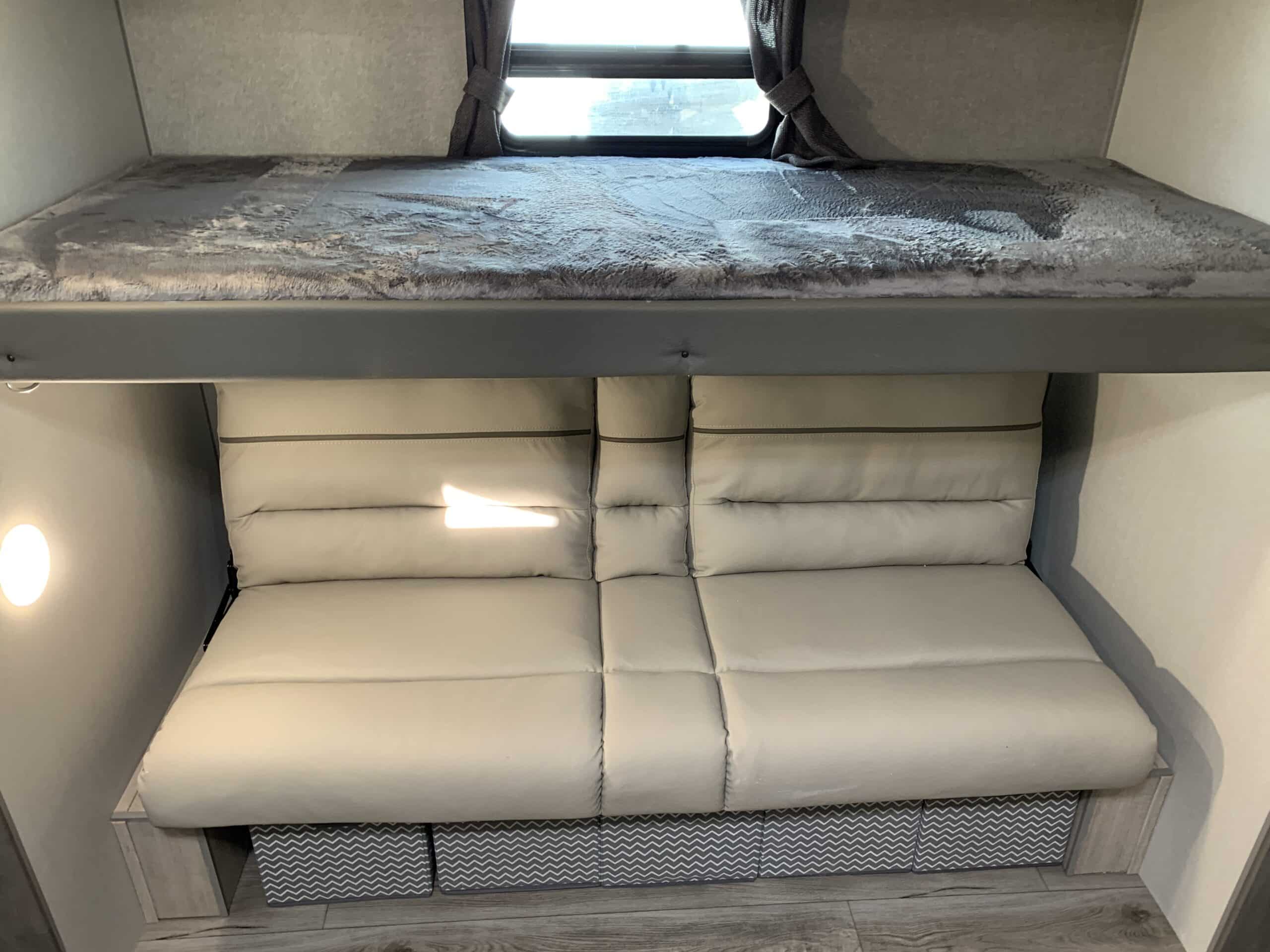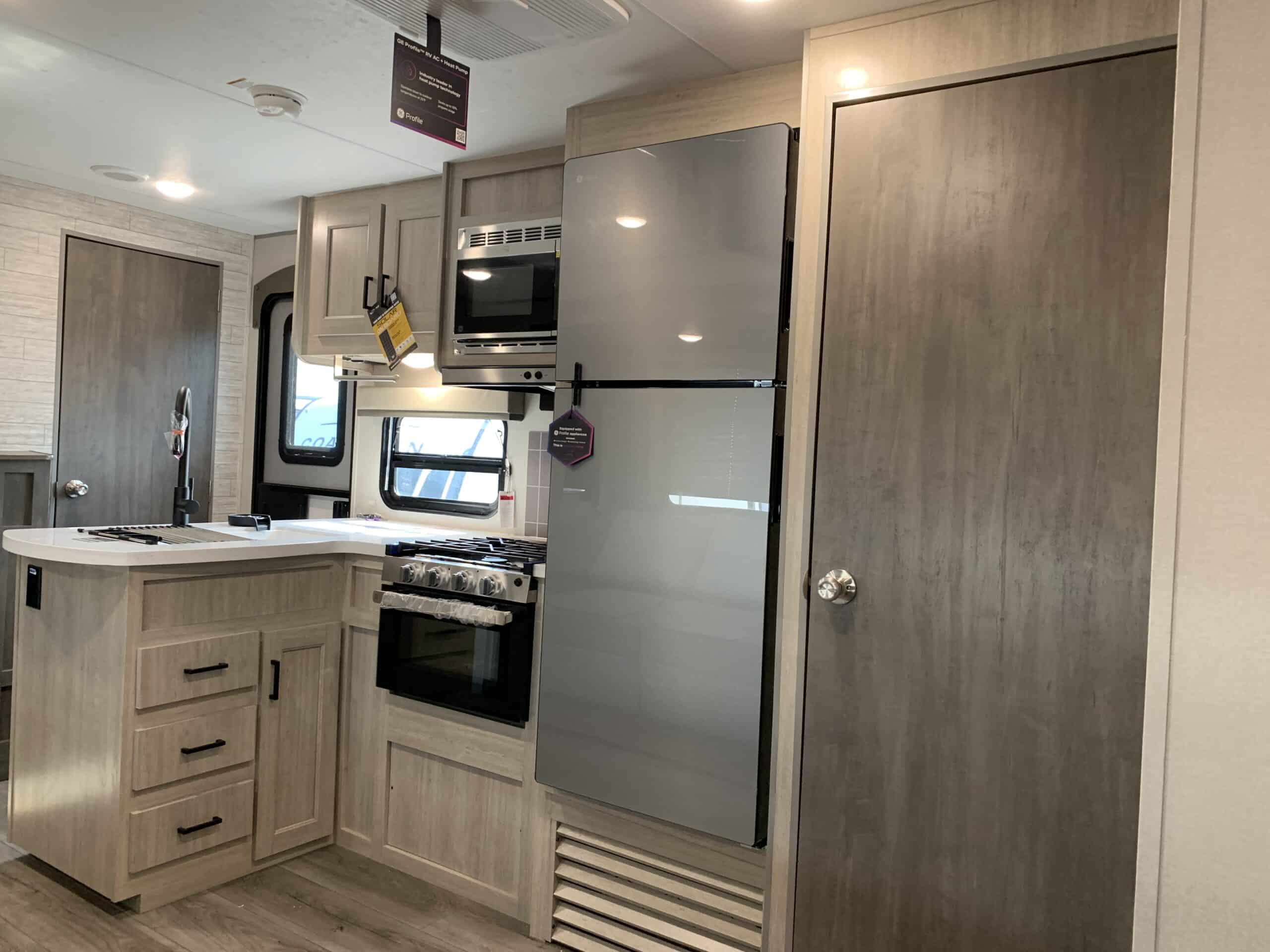 De plus, la Catalina 323BHDSCK a 1 air climatisé et un foyer qui tempéreront l’ambiance désirée. Par ailleurs, la cuisinière a un four et 3 brûleurs, un réfrigérateur et un micro-ondes. De plus, il y a une banquette, un sofa lit et un garde-manger qui peut recevoir laveuse/sécheuse. Enfin, le système audio vous permettra d’écouter votre musique préférée.