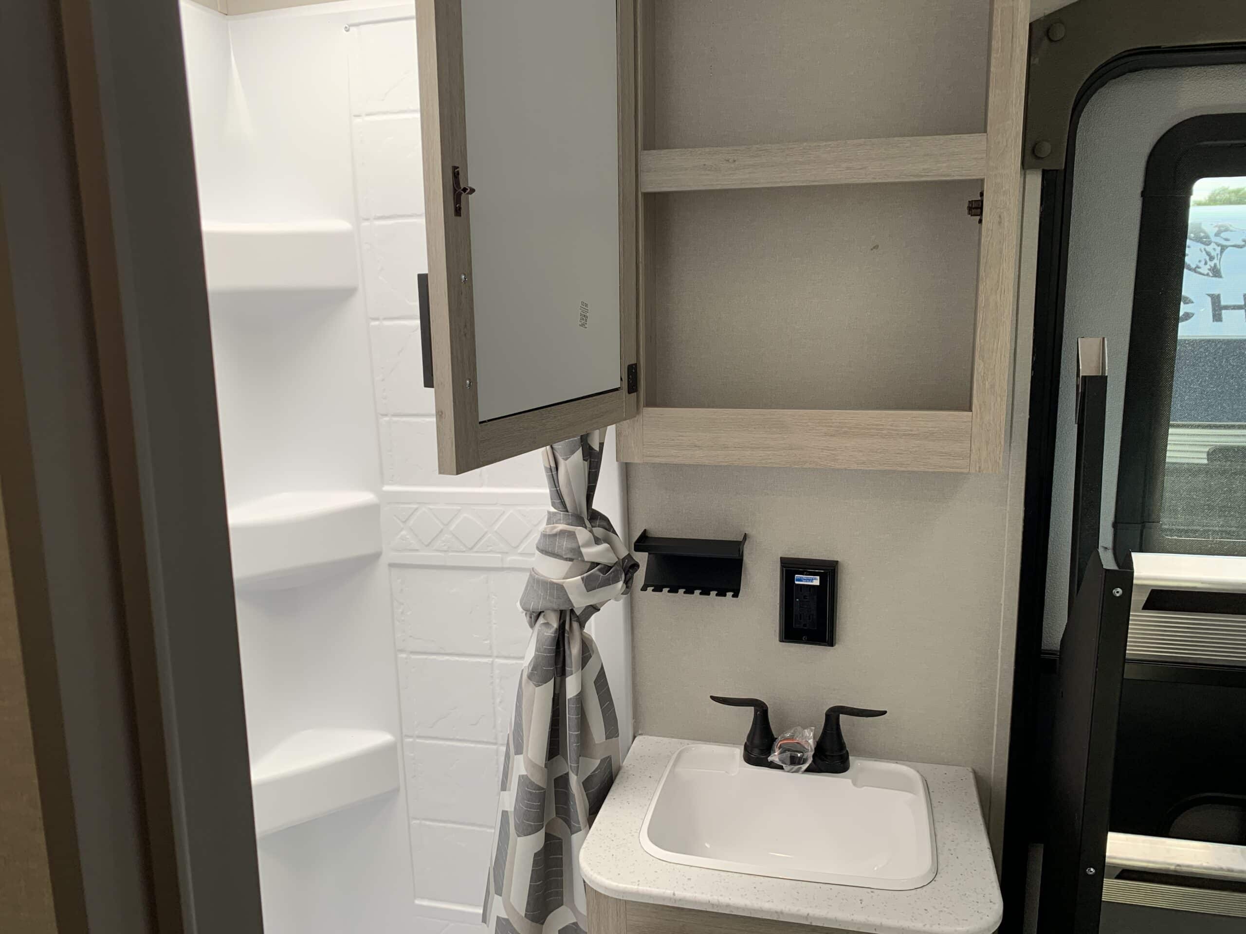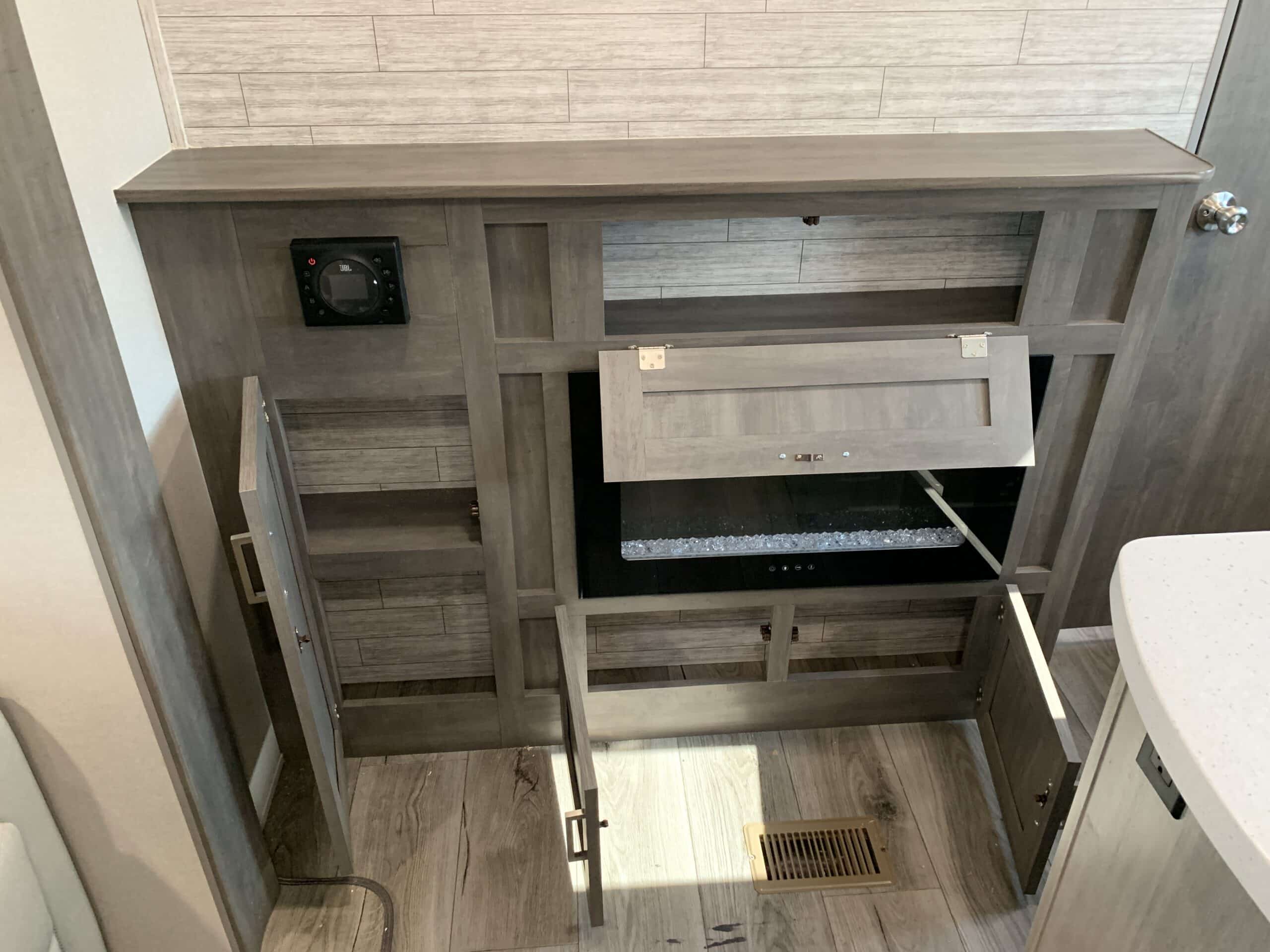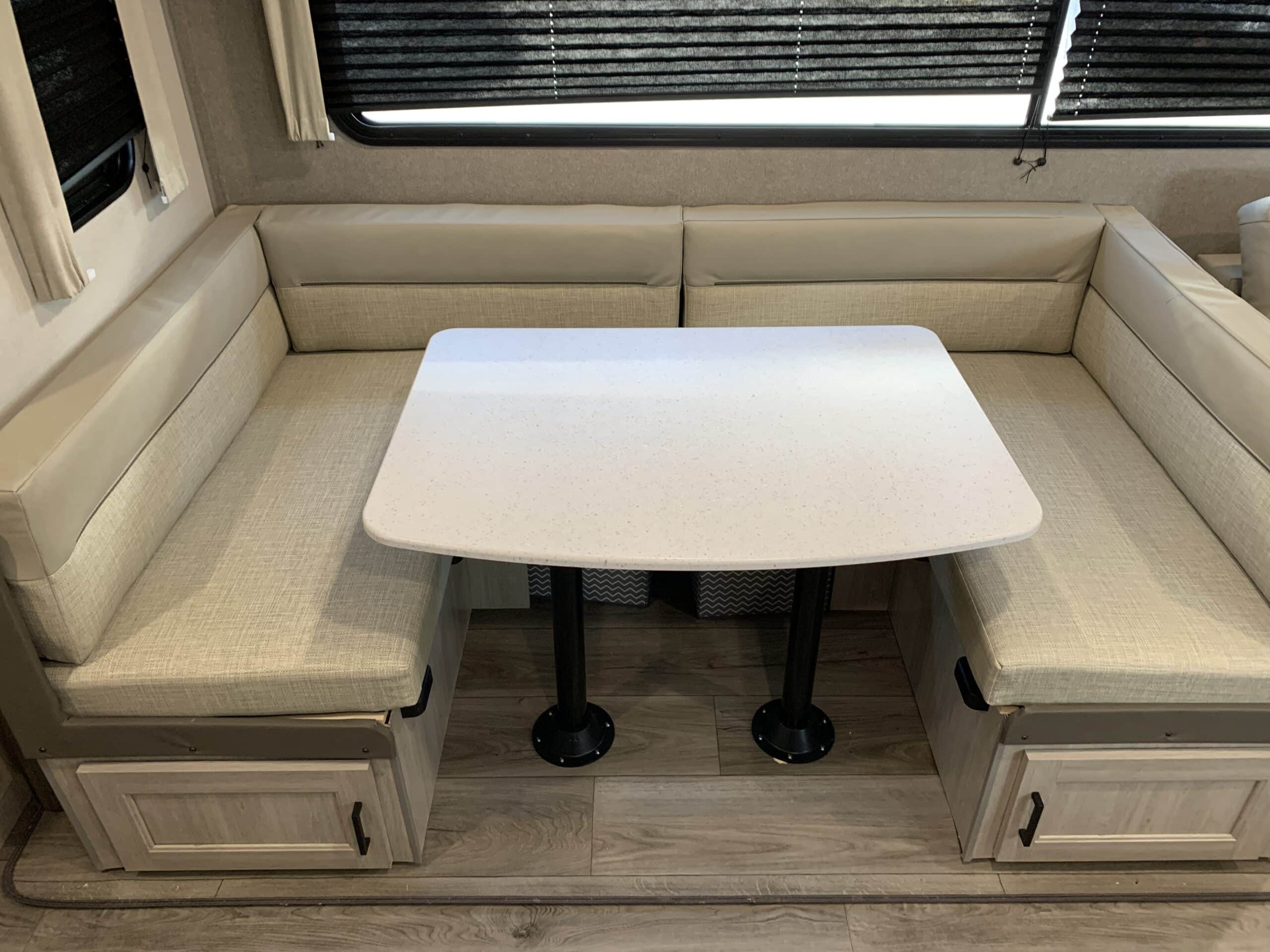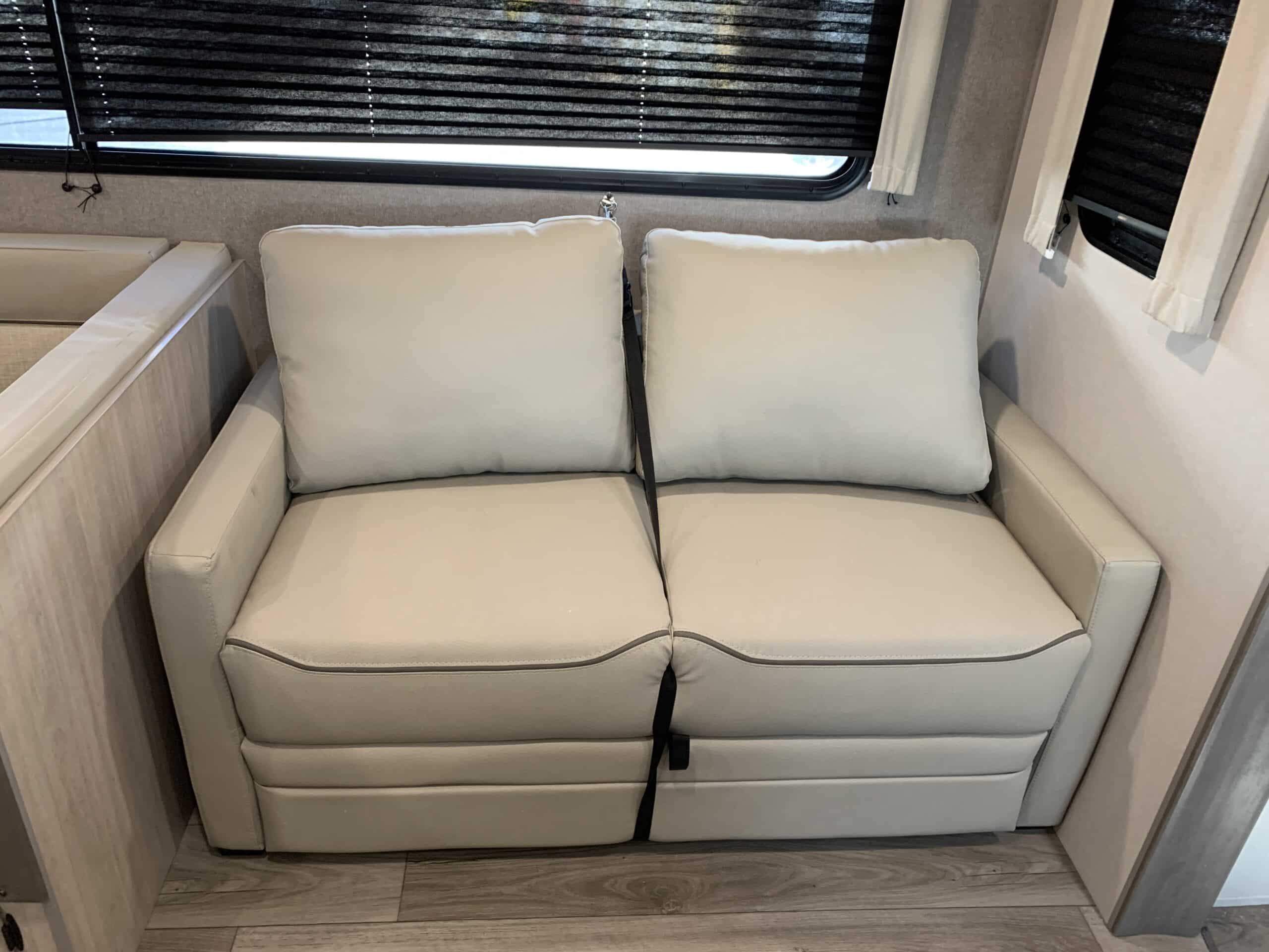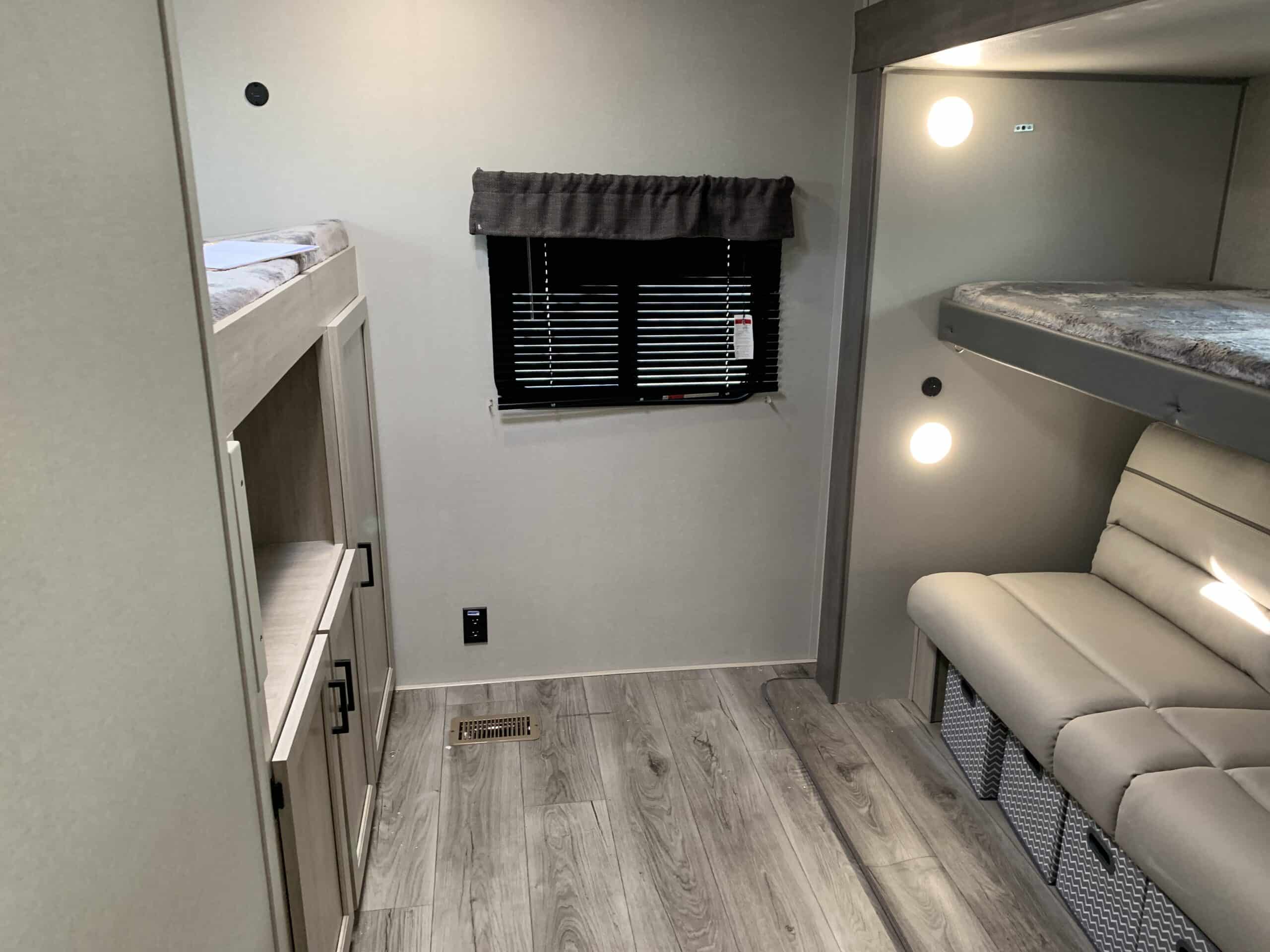 De plus, la Catalina 323BHDSCK a 1 air climatisé et un foyer qui tempéreront l’ambiance désirée. Par ailleurs, la cuisinière a un four et 3 brûleurs, un réfrigérateur et un micro-ondes. De plus, il y a une banquette, un sofa lit et un garde-manger qui peut recevoir laveuse/sécheuse. Enfin, le système audio vous permettra d’écouter votre musique préférée.