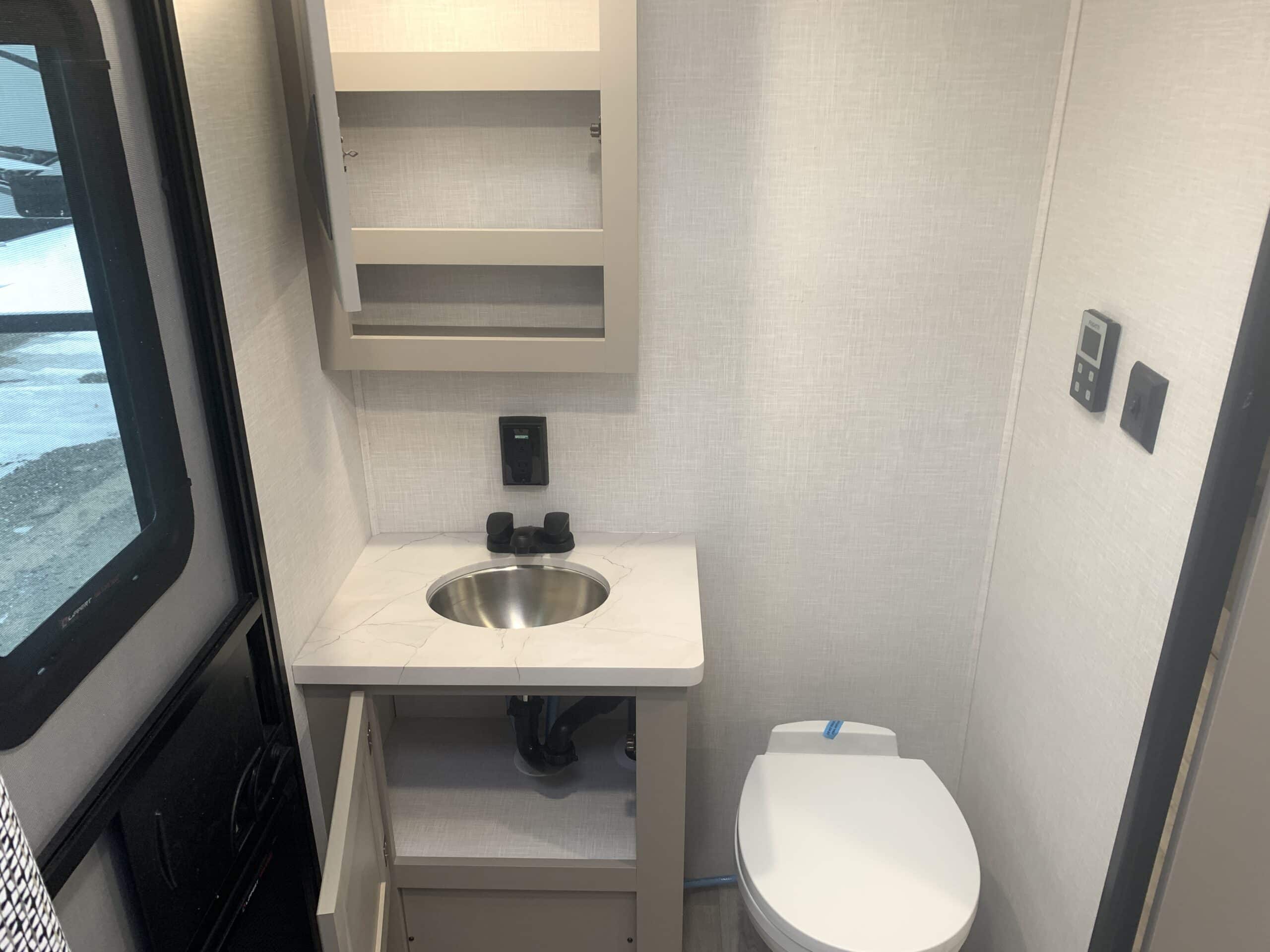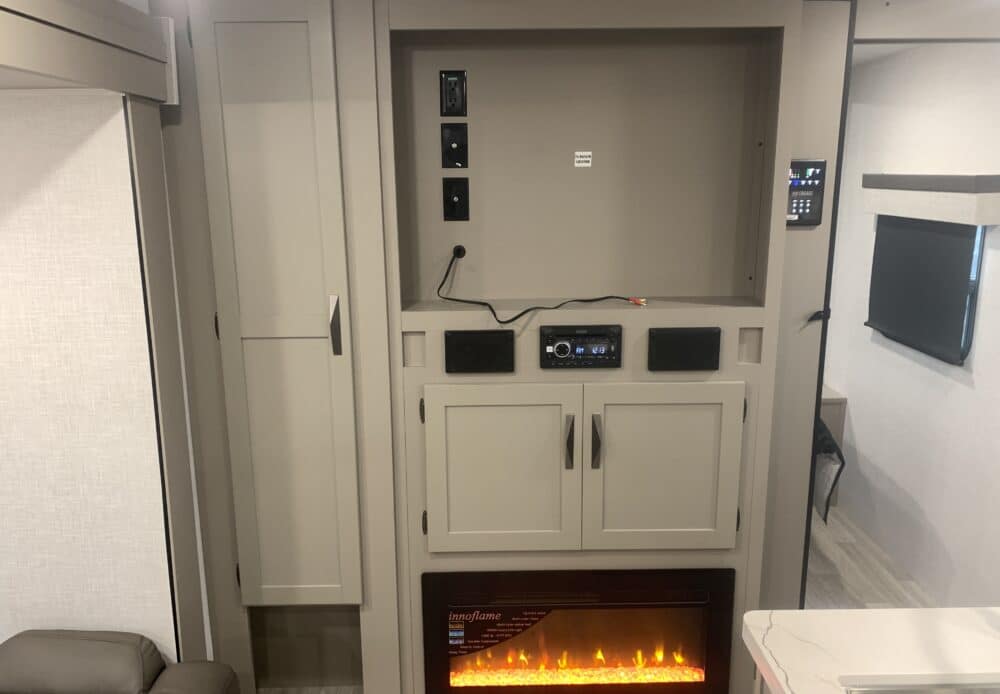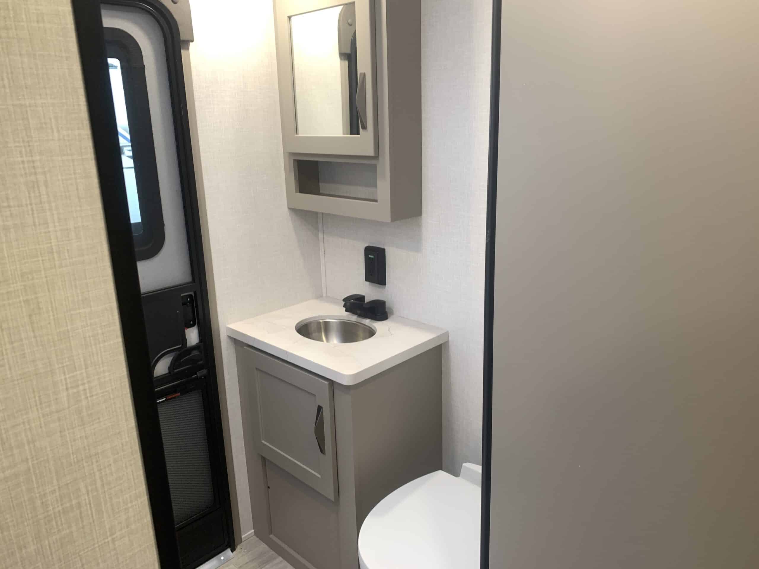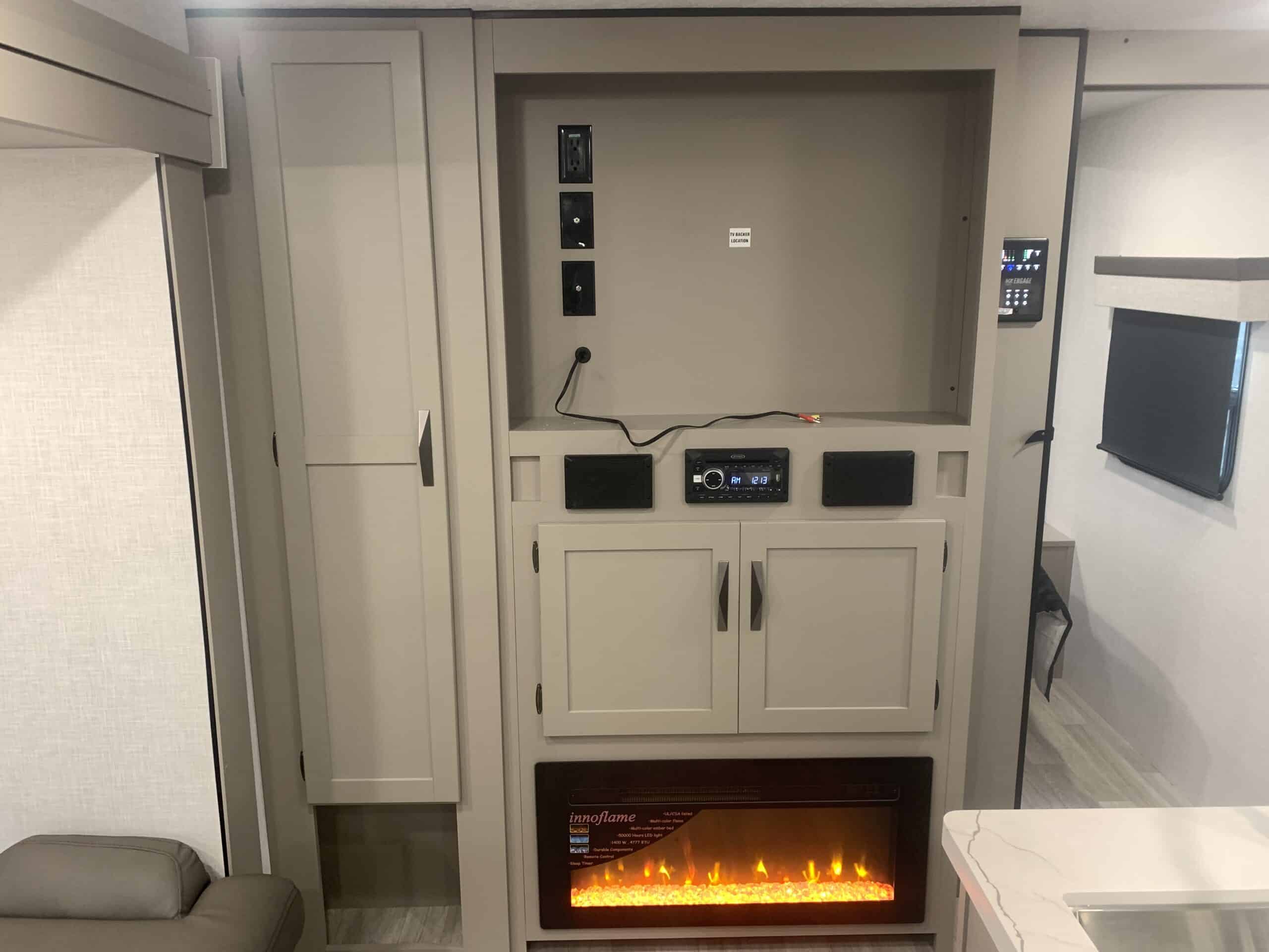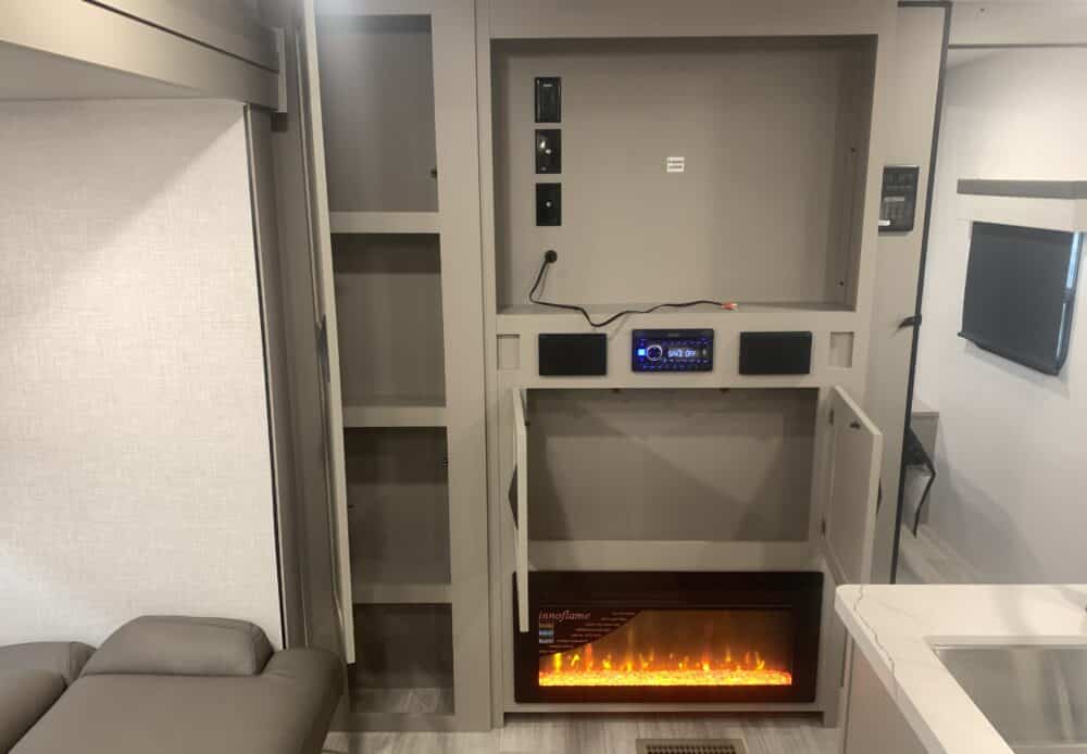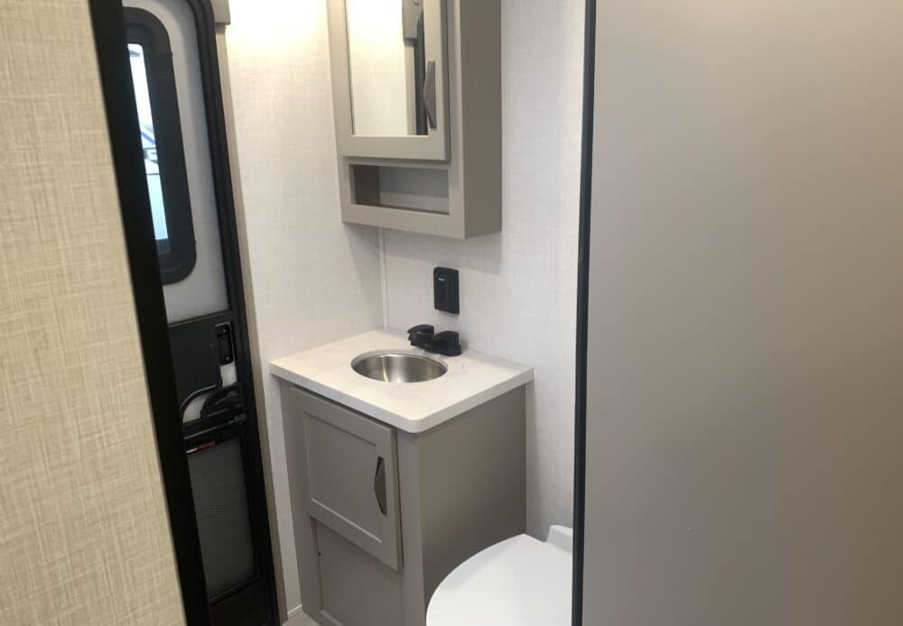 De plus, la Connect 312BHKSE a un air climatisé de 13500 btu. qui tempérera  l’ambiance désirée. Aussi, la cuisine a un poêle avec 3 brûleurs, un micro-ondes et un réfrigérateur 8p.c. gaz/électrique. Également une banquette, un sofa lit et un garde-manger. Enfin, le système audio vous permettra d’écouter votre musique préférée.