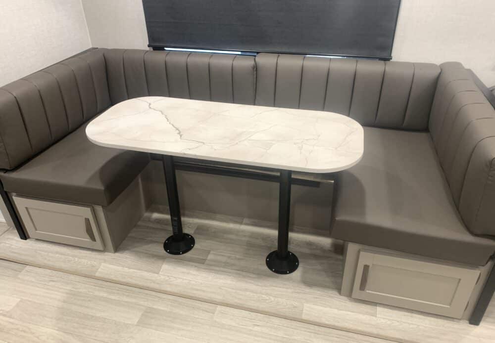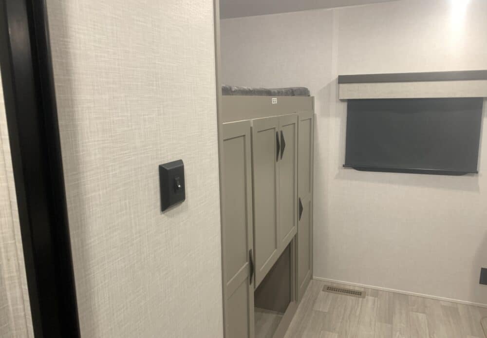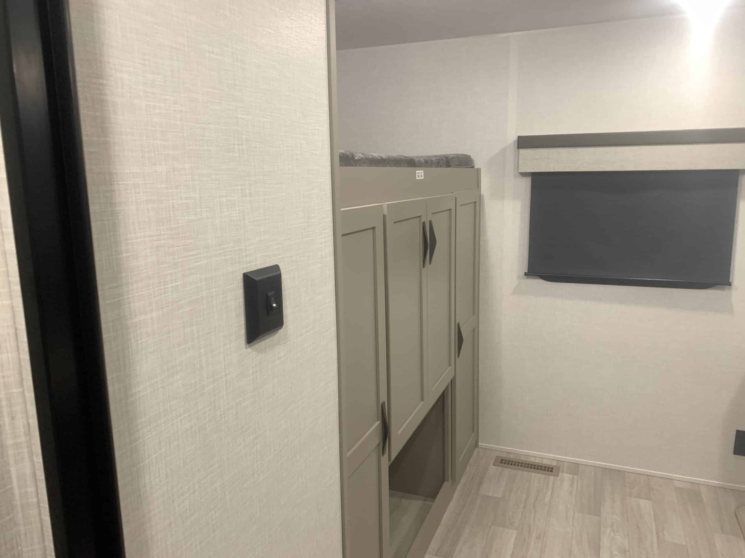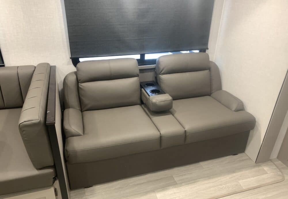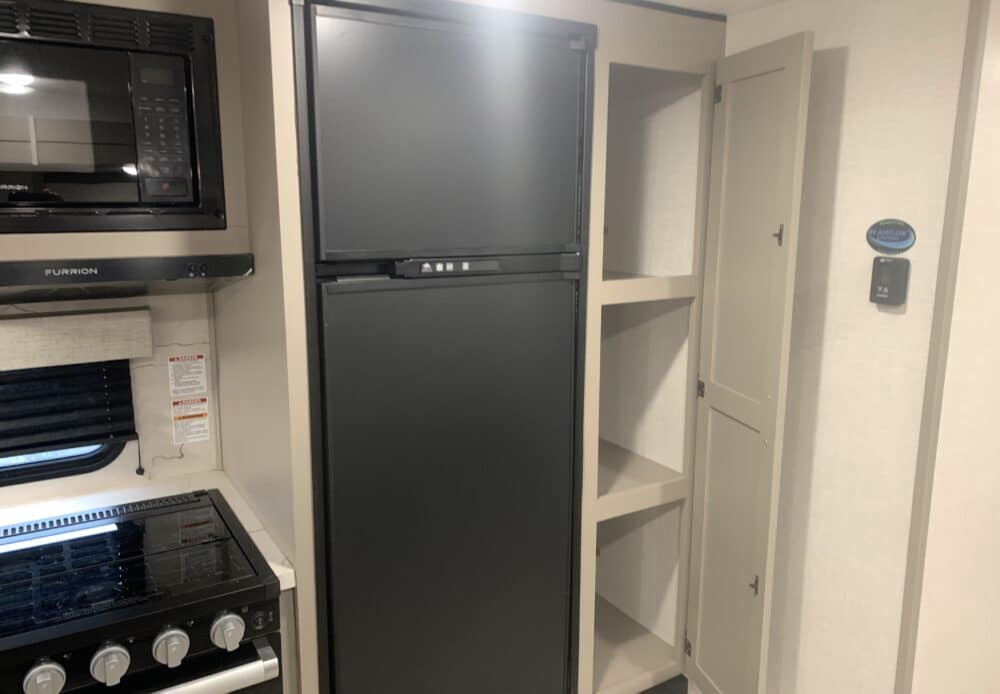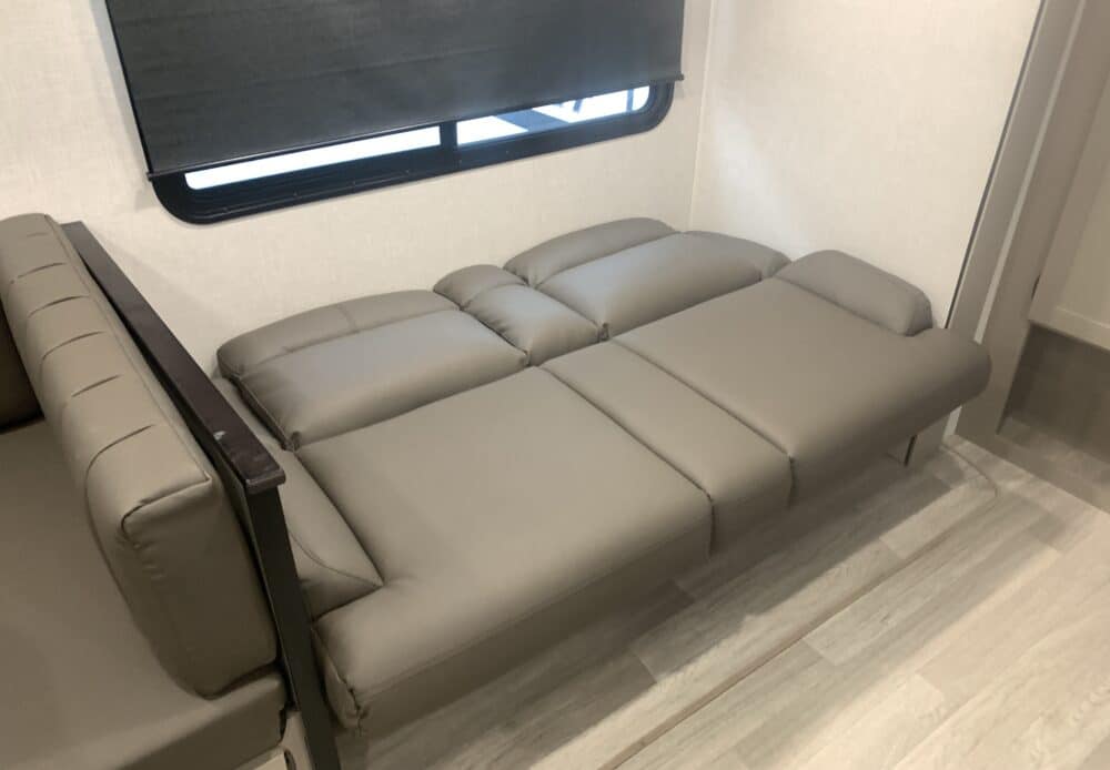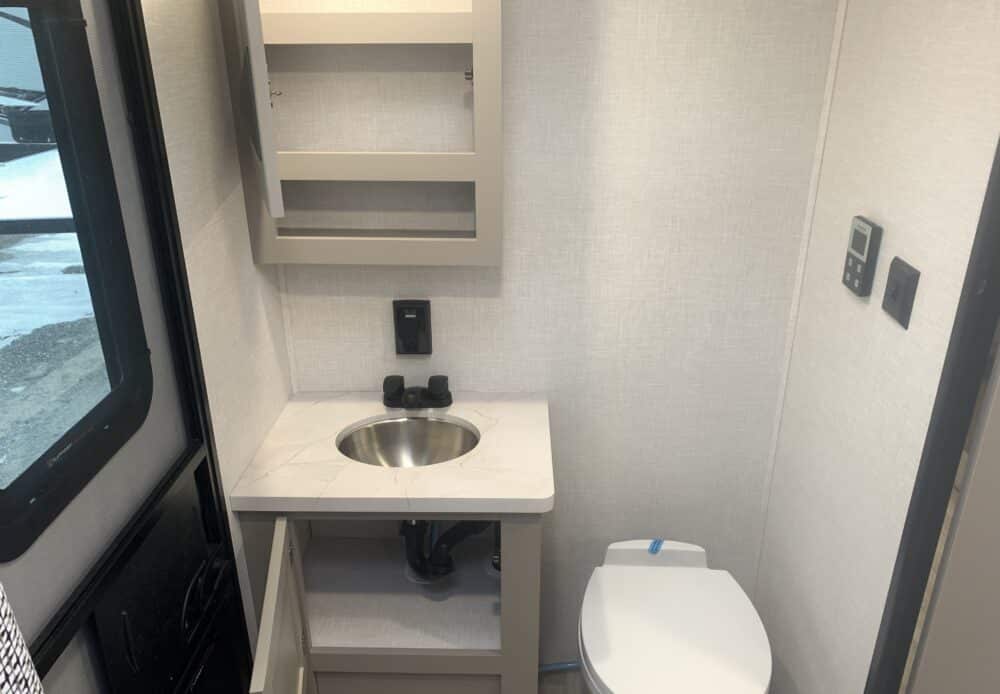 De plus, la Connect 312BHKSE a un air climatisé de 13500 btu. qui tempérera  l’ambiance désirée. Aussi, la cuisine a un poêle avec 3 brûleurs, un micro-ondes et un réfrigérateur 8p.c. gaz/électrique. Également une banquette, un sofa lit et un garde-manger. Enfin, le système audio vous permettra d’écouter votre musique préférée.