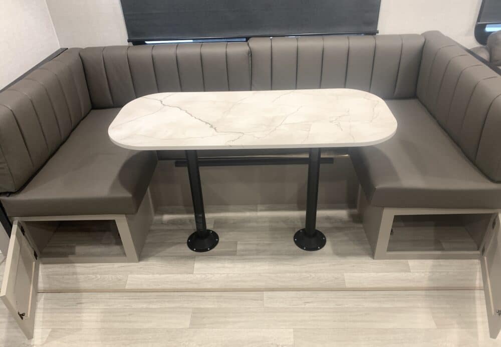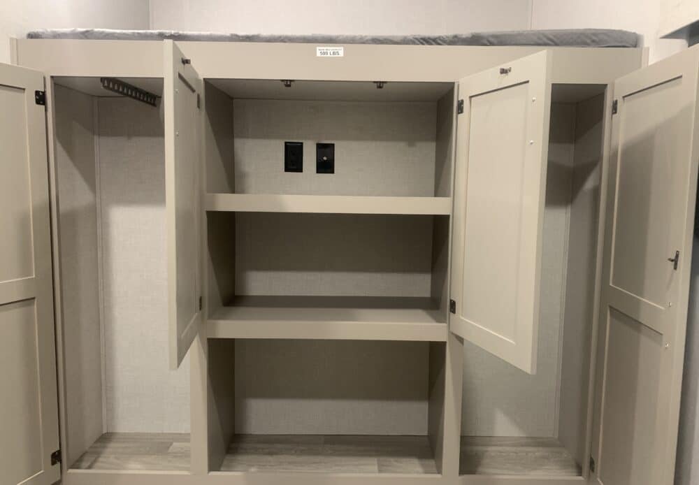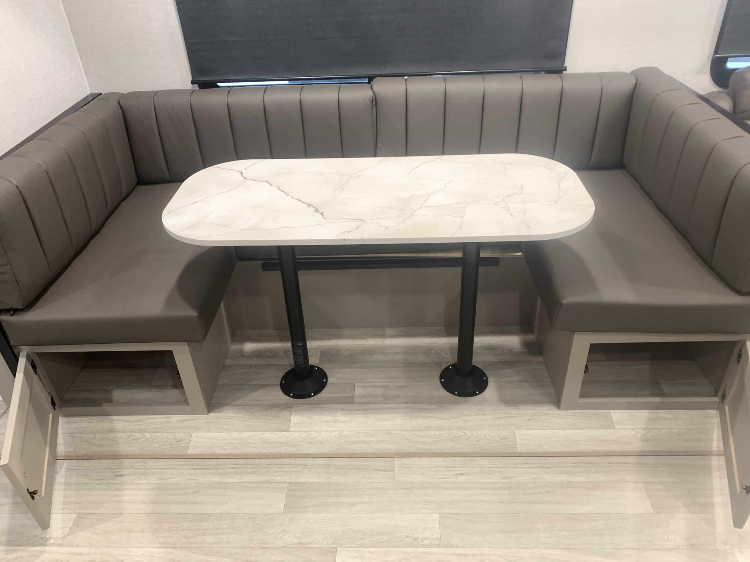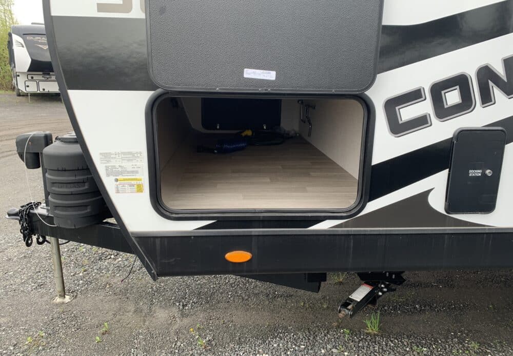D’abord, cette roulotte a une auvent de 19 pieds, une cuisine et une douche pour profiterez de l’extérieur sans soucis. Puisque ses marches sont ajustable et très stable vous aurez un accès facile à l’intérieur. Les coffres ont également un bel espace de rangement.