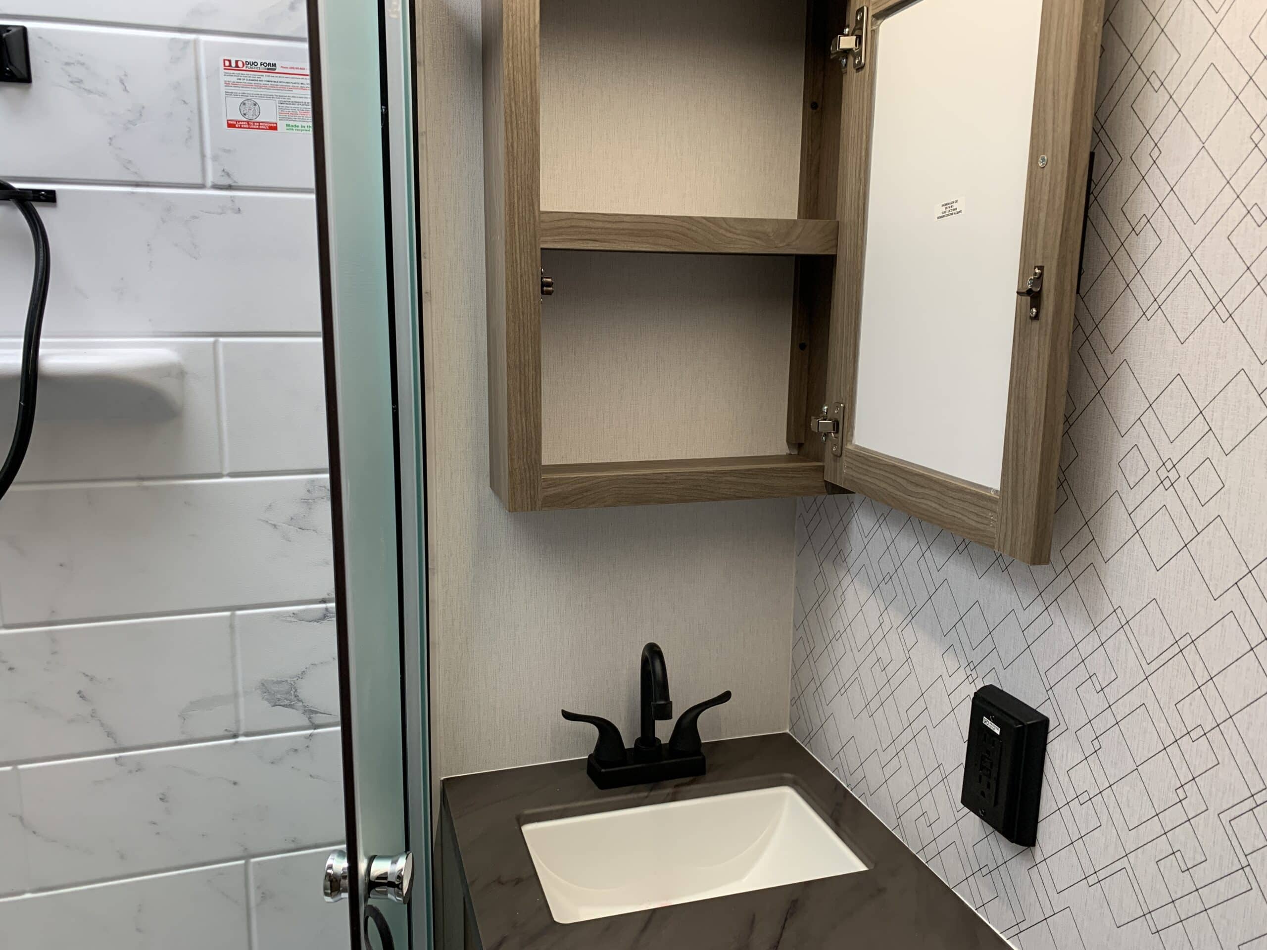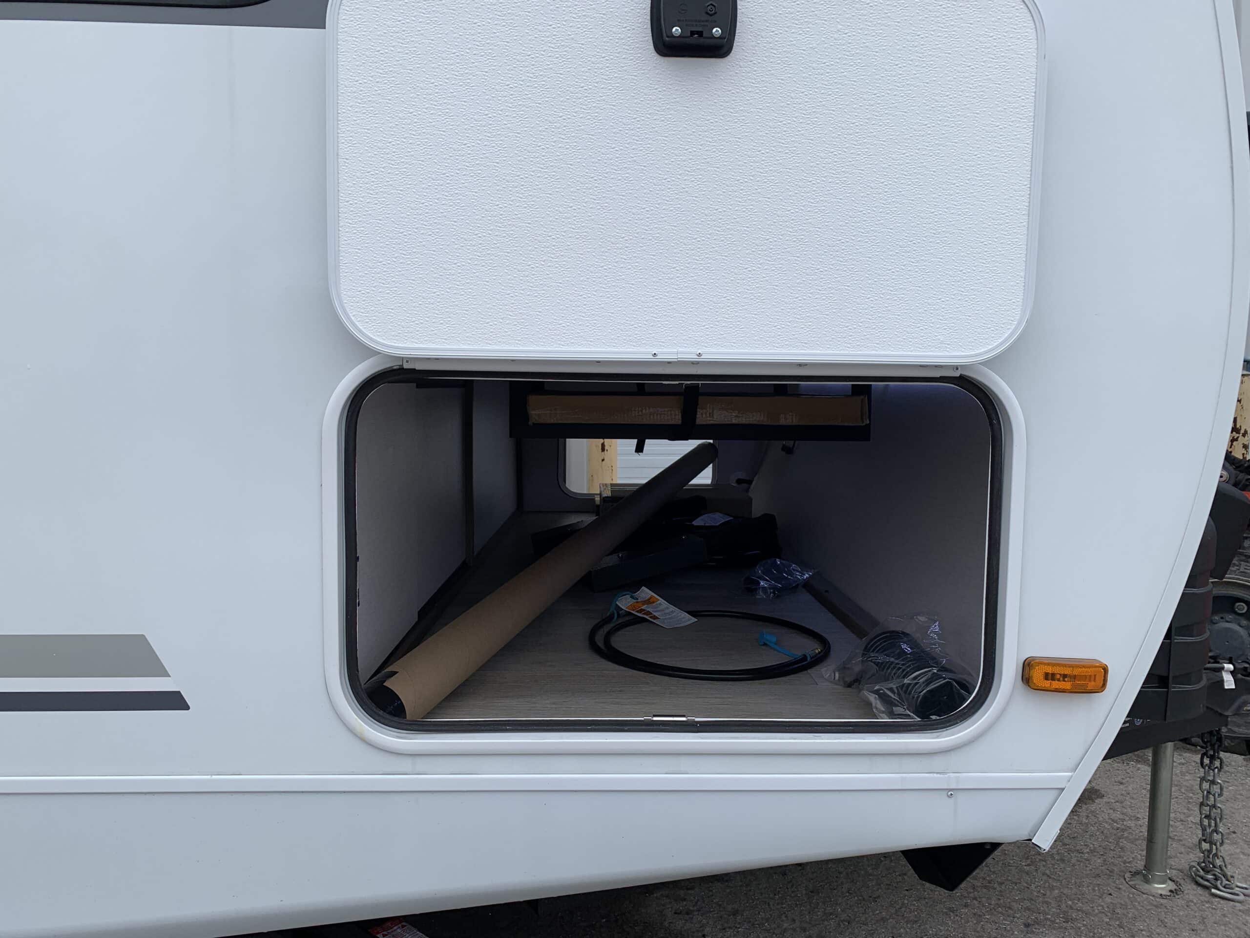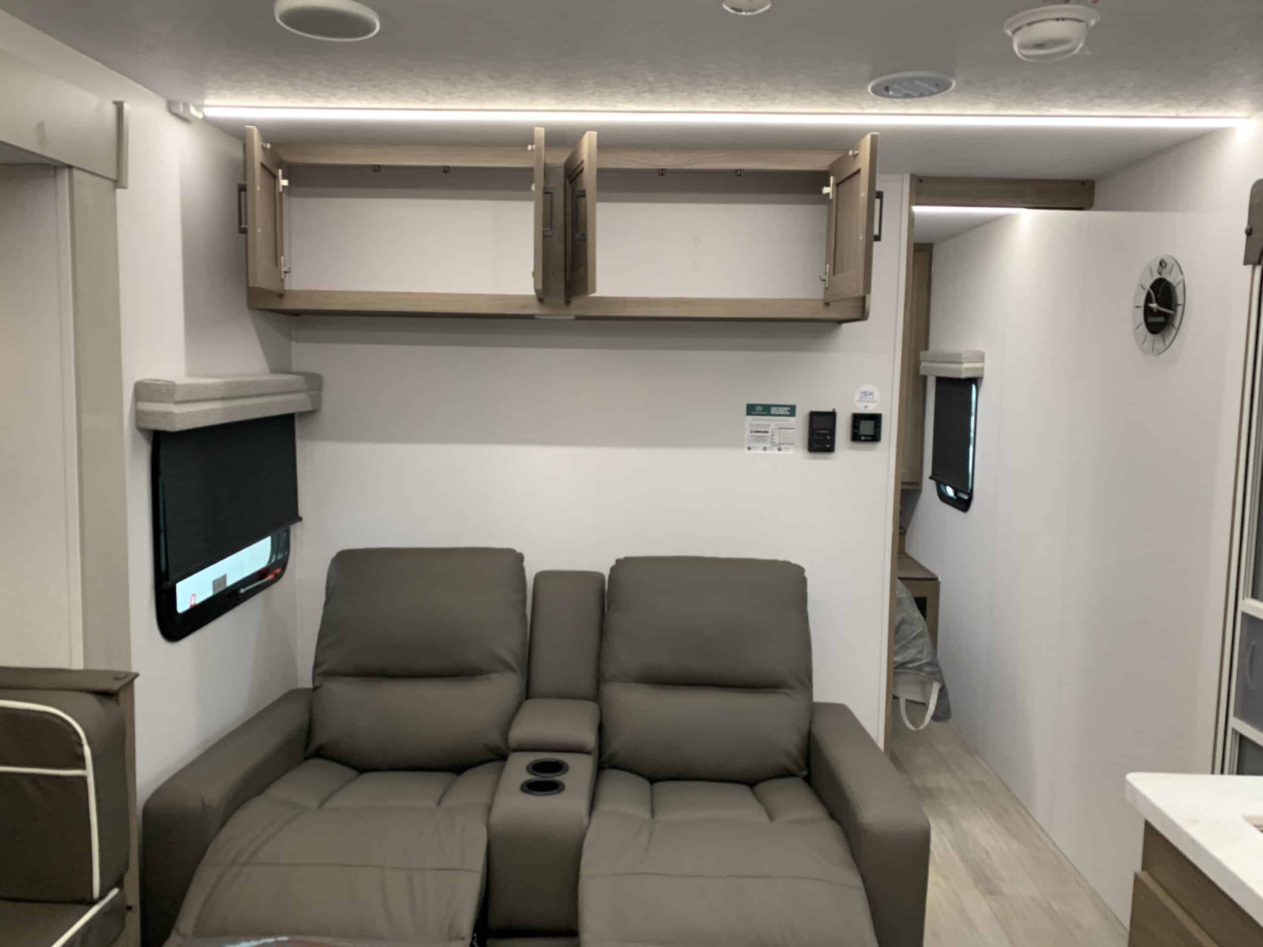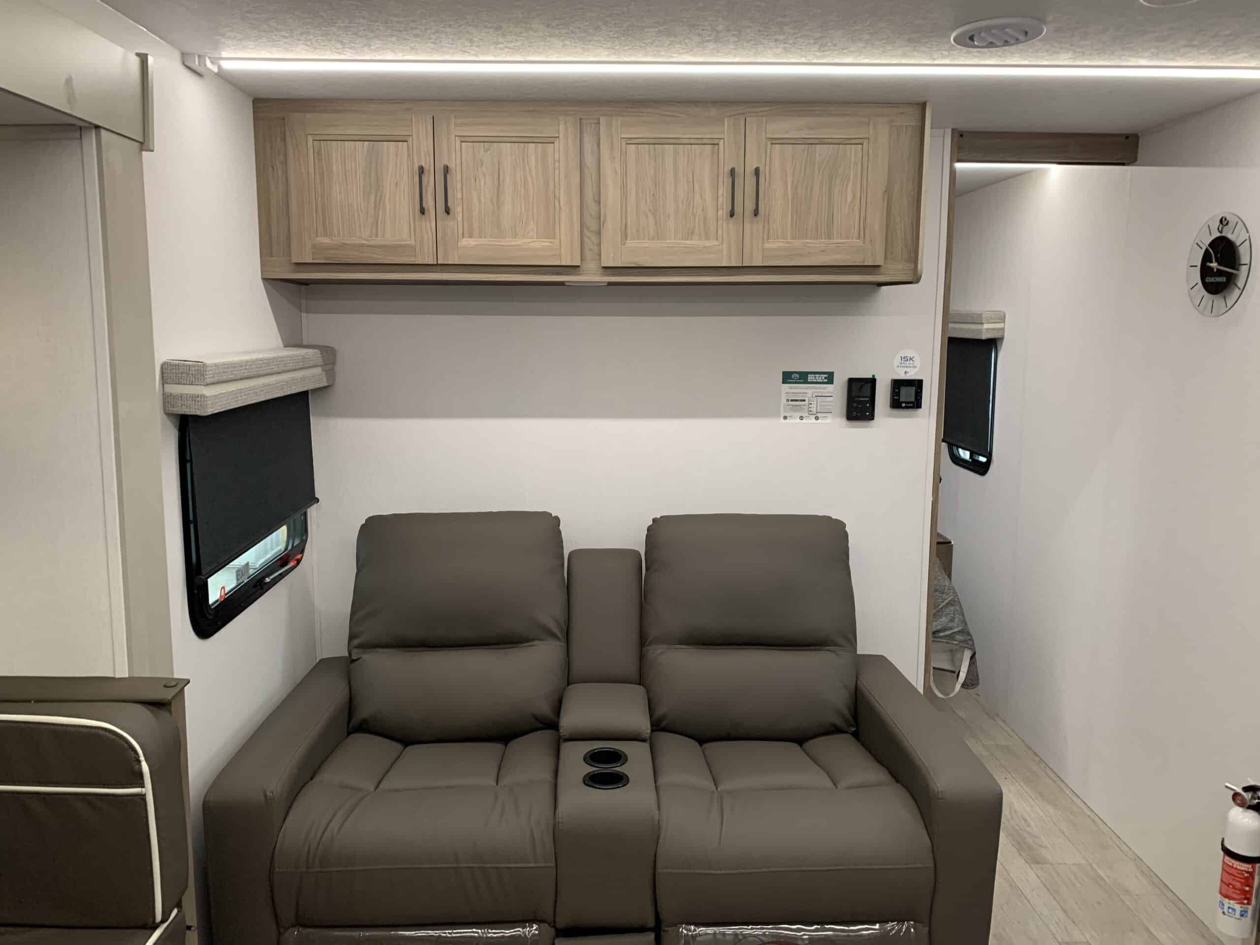 Son aménagement met l’accent sur un espace de vie central ouvert et une grande salle de bain arrière, ce qui la distingue de plusieurs modèles similaires.